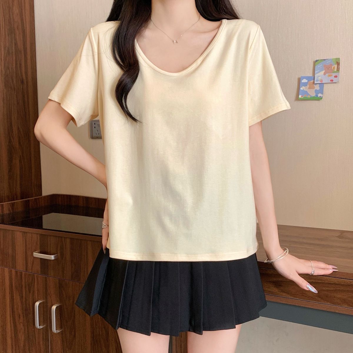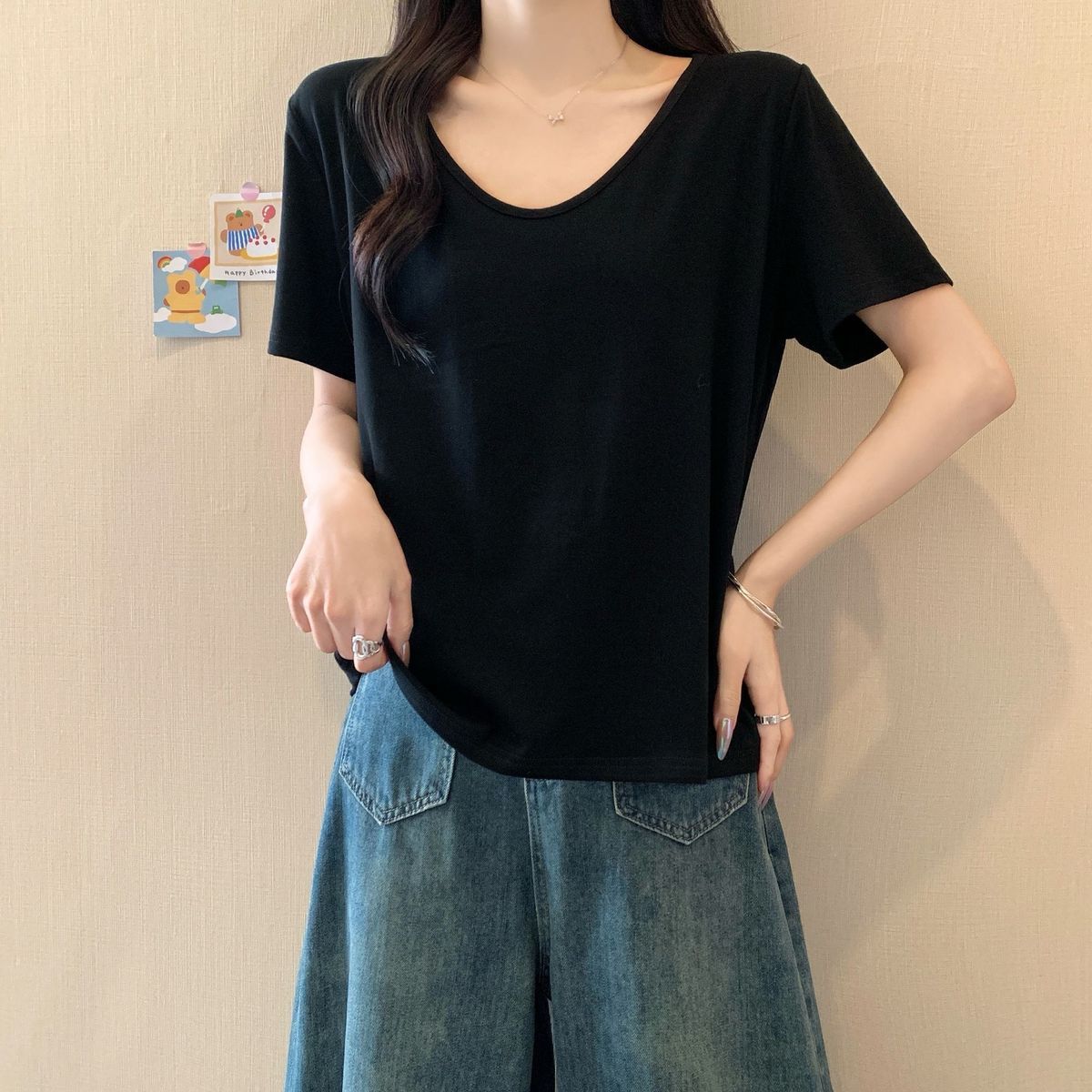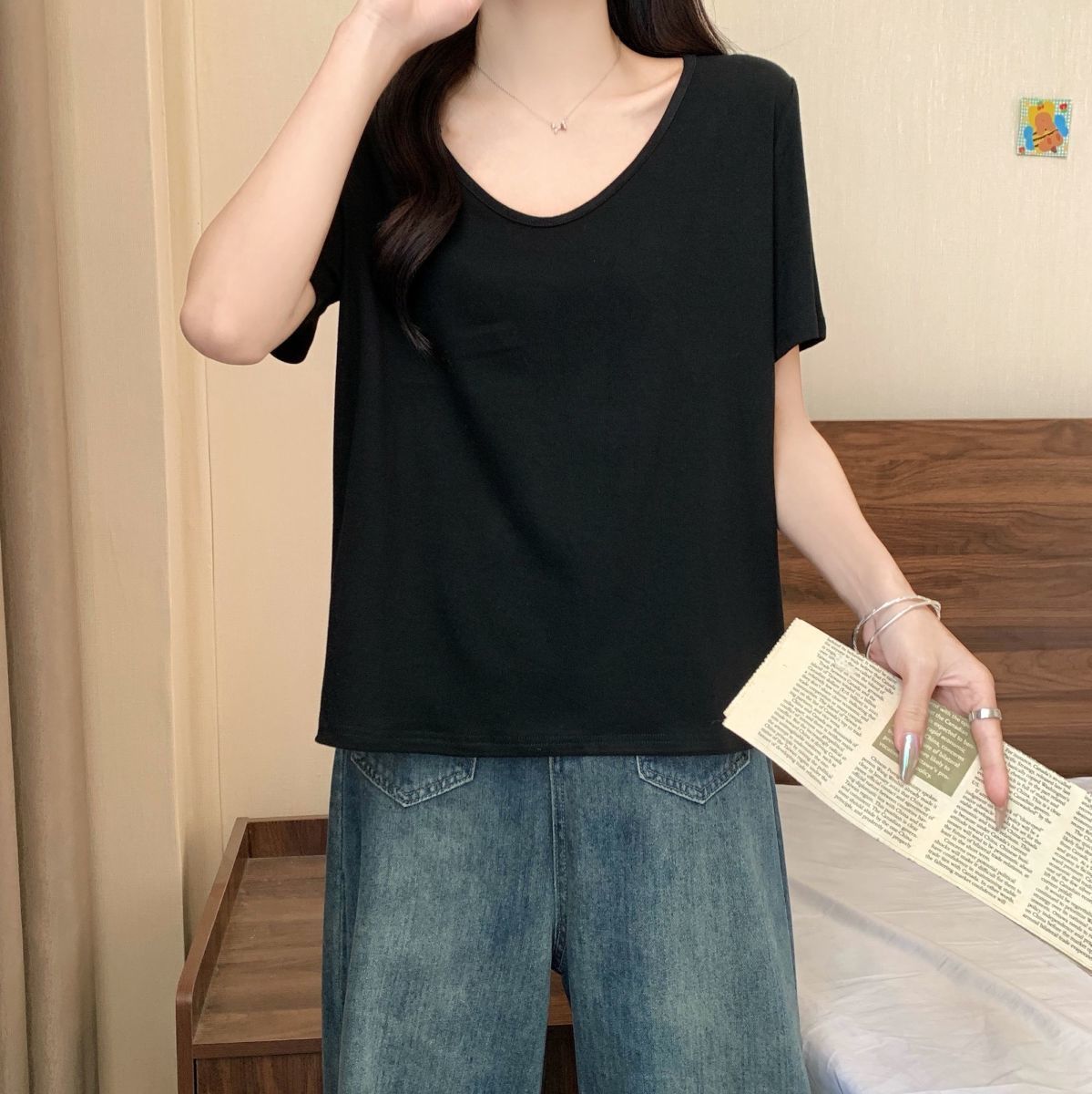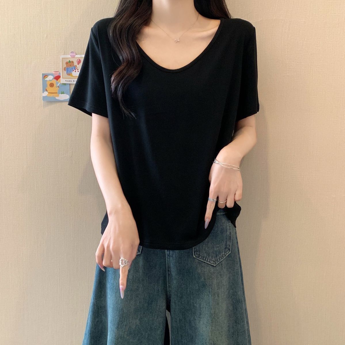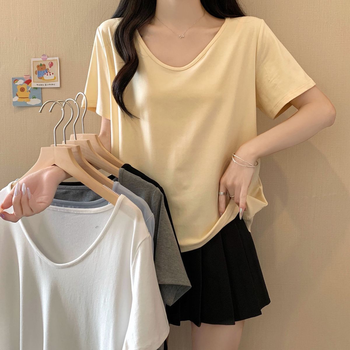 플러스 사이즈 통통녀 게으른 스타일 슬리밍 조커 짧은 소매 티셔츠 여성용 여름 코튼 패션 세련된 티셔츠 탑 100.00kg
