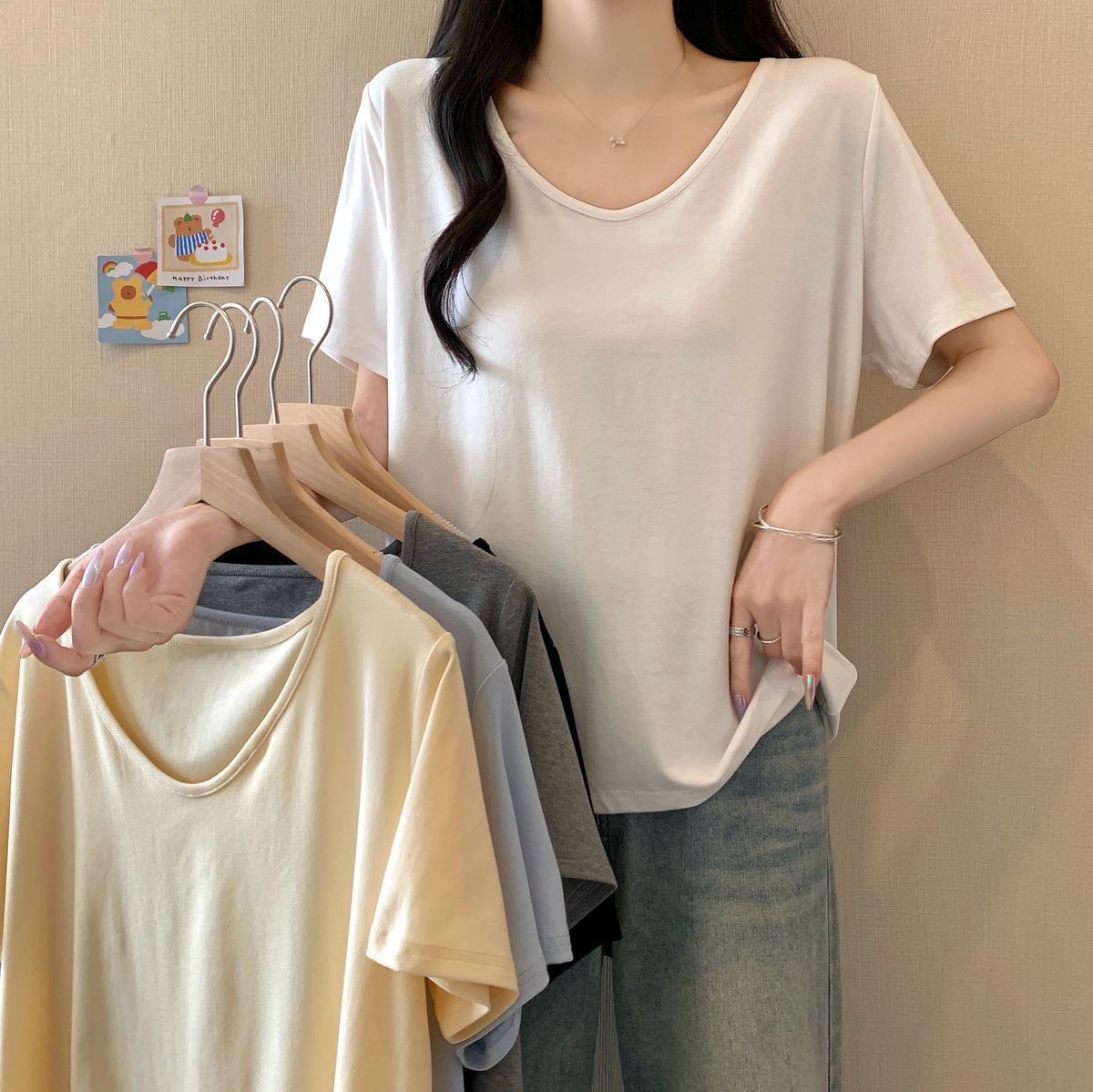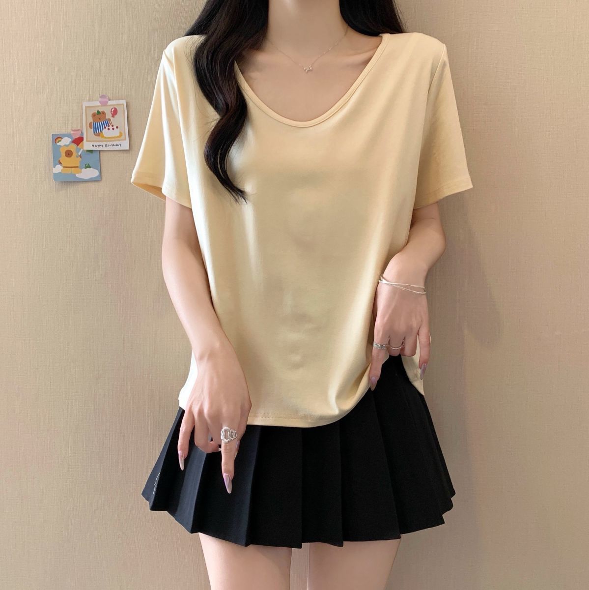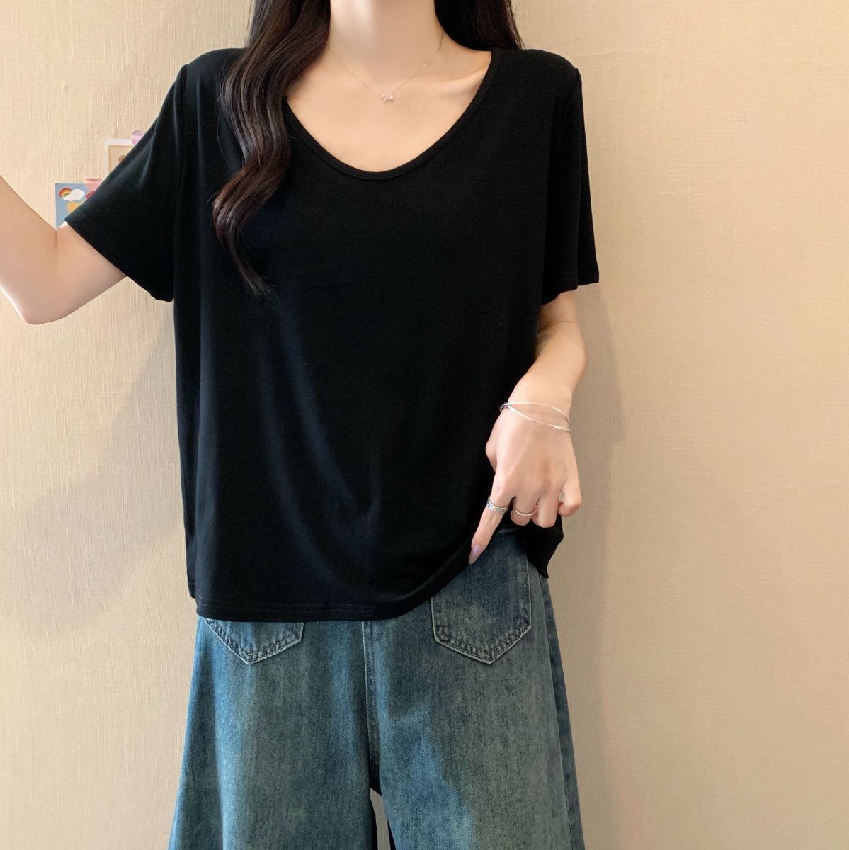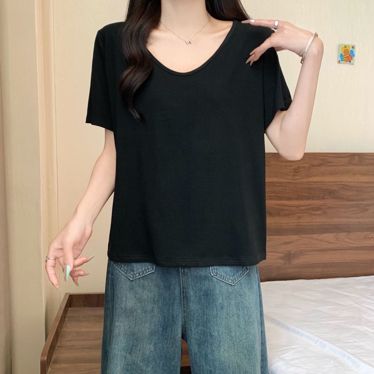 플러스 사이즈 통통녀 게으른 스타일 슬리밍 조커 짧은 소매 티셔츠 여성용 여름 코튼 패션 세련된 티셔츠 탑 100.00kg