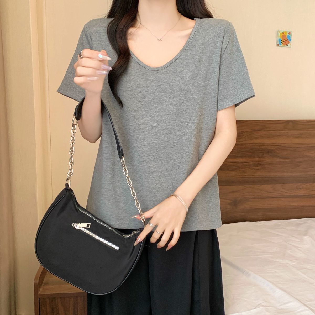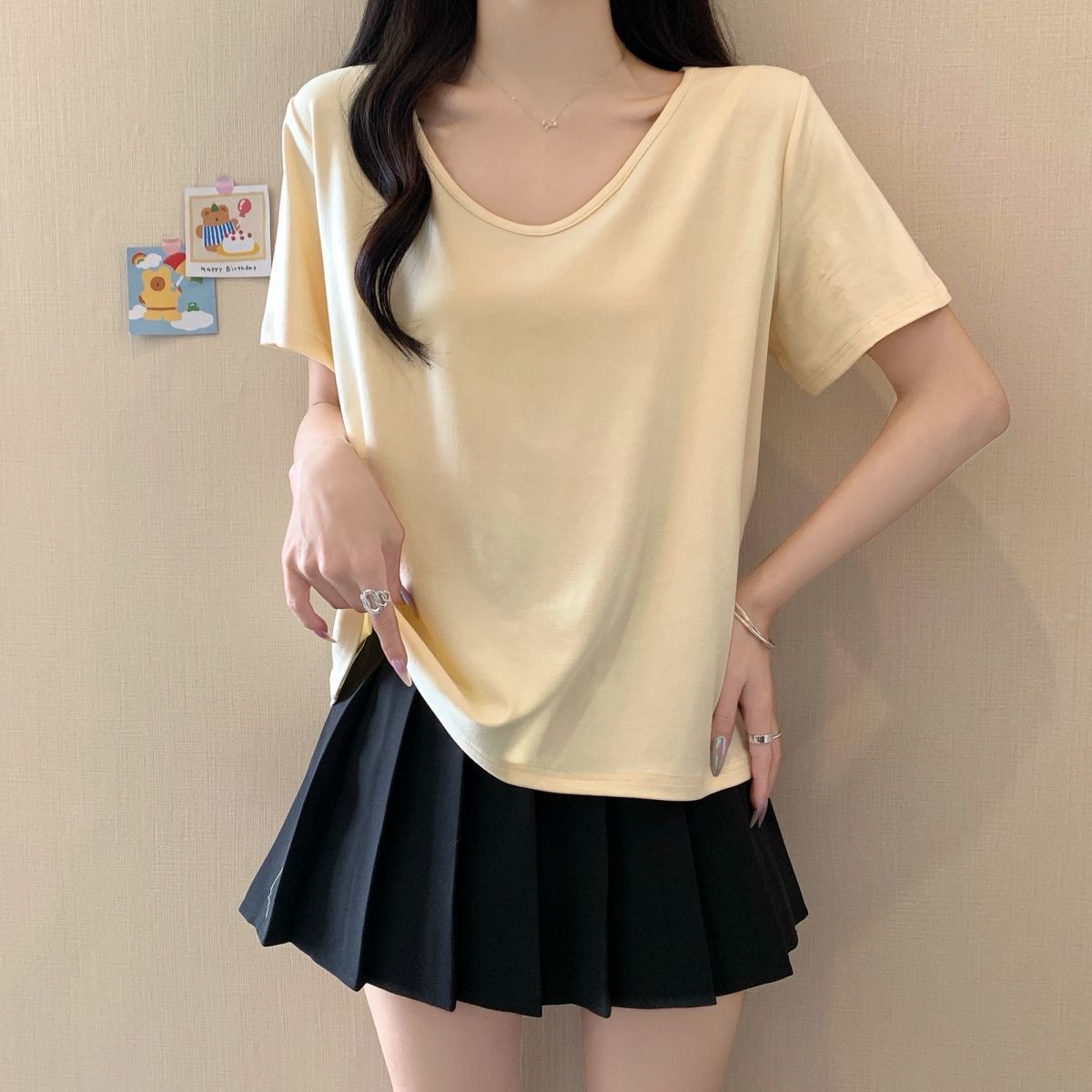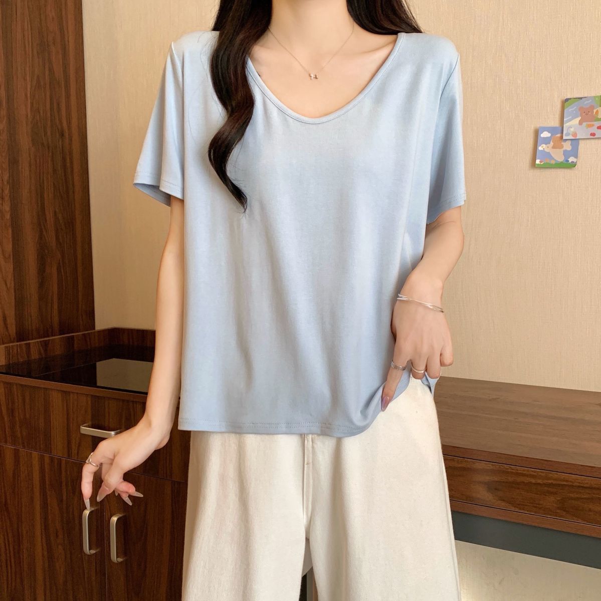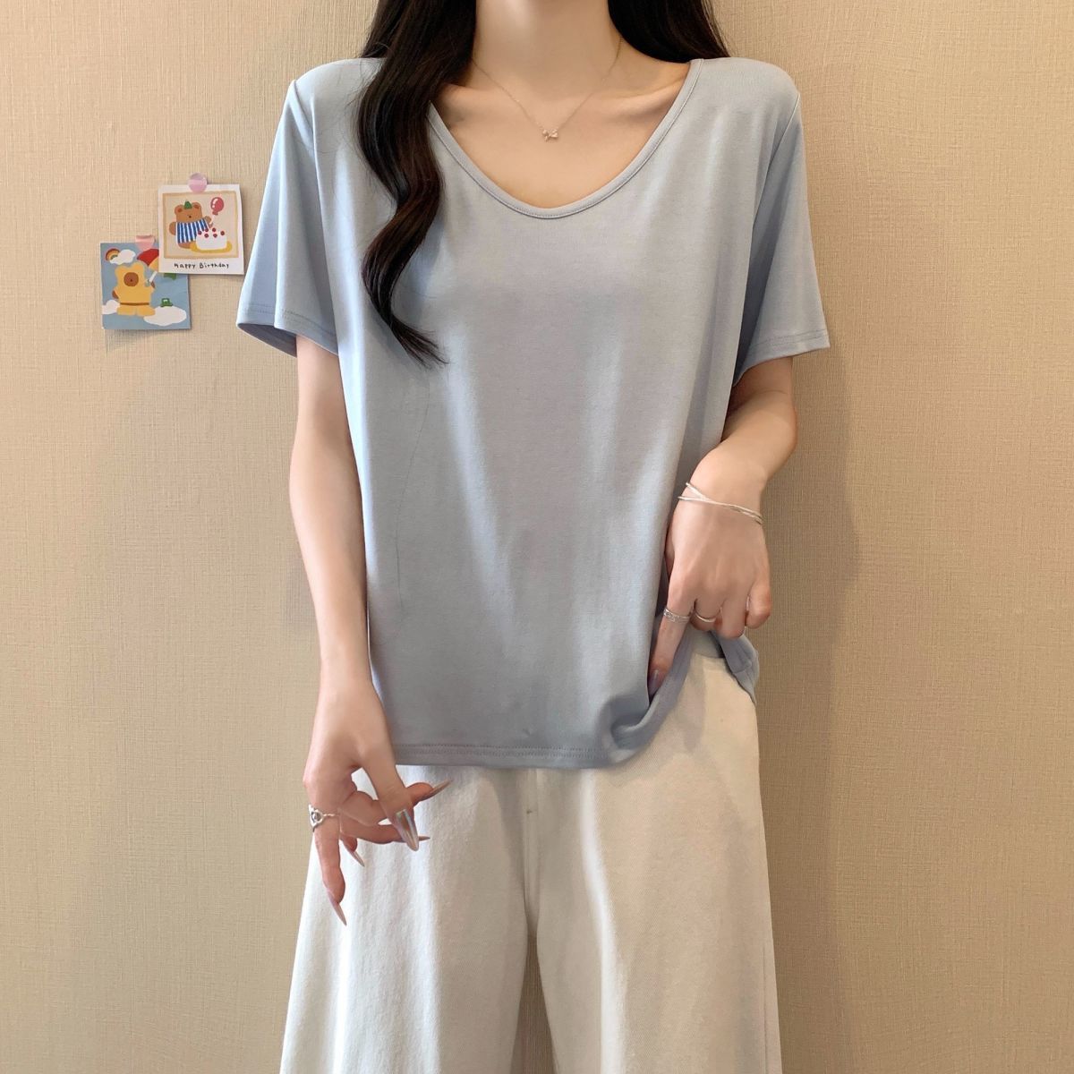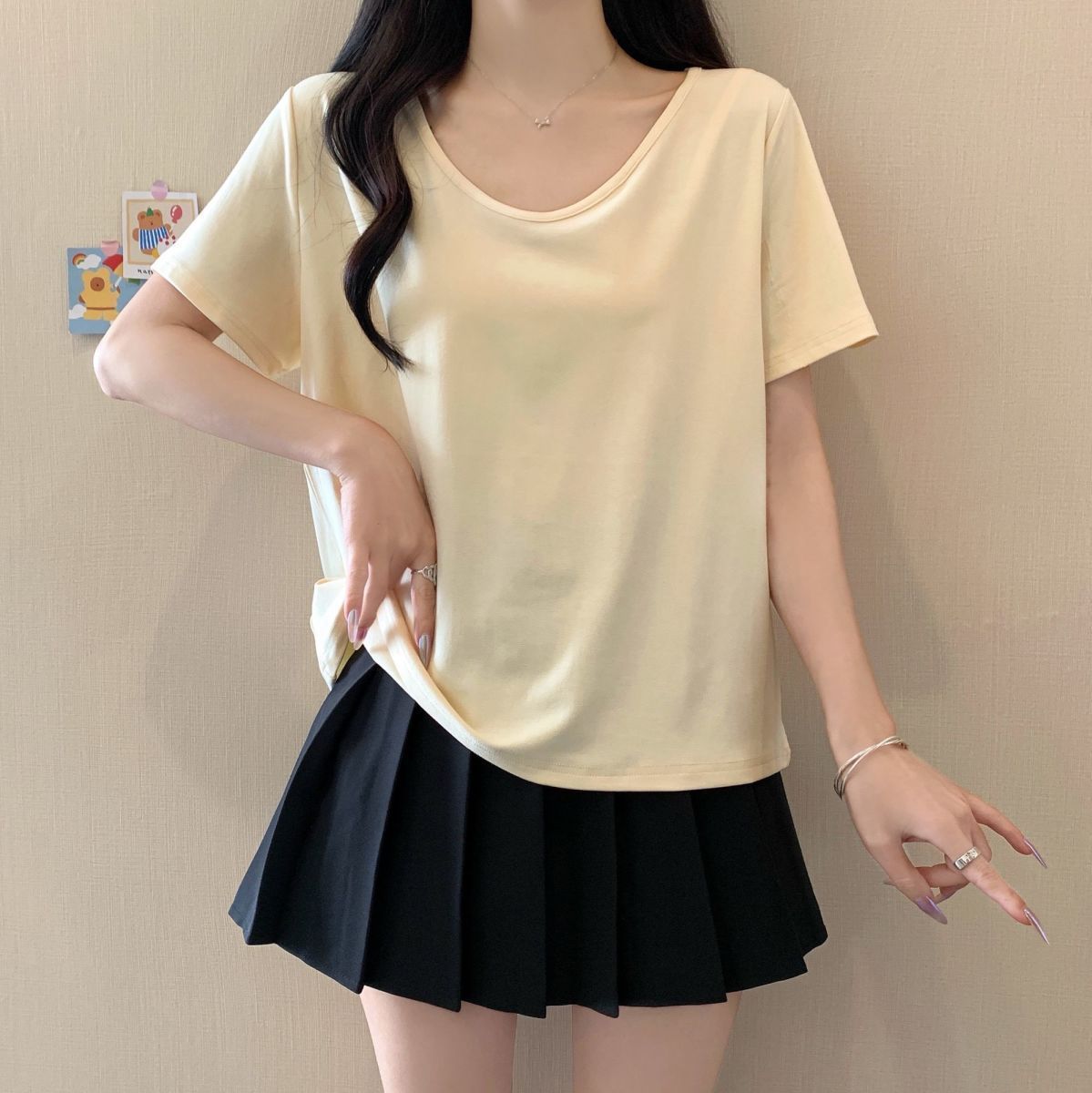 플러스 사이즈 통통녀 게으른 스타일 슬리밍 조커 짧은 소매 티셔츠 여성용 여름 코튼 패션 세련된 티셔츠 탑 100.00kg
