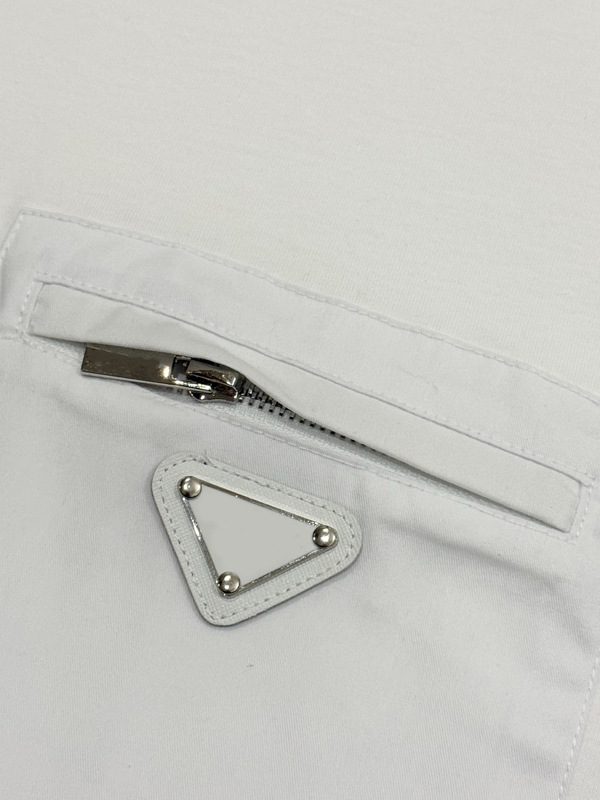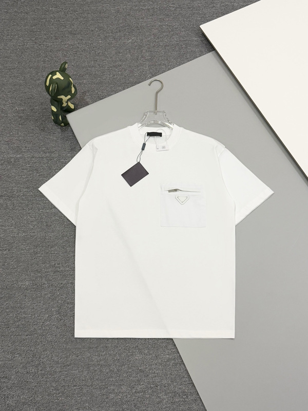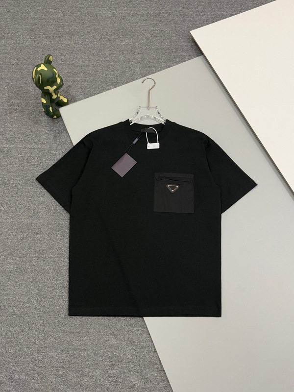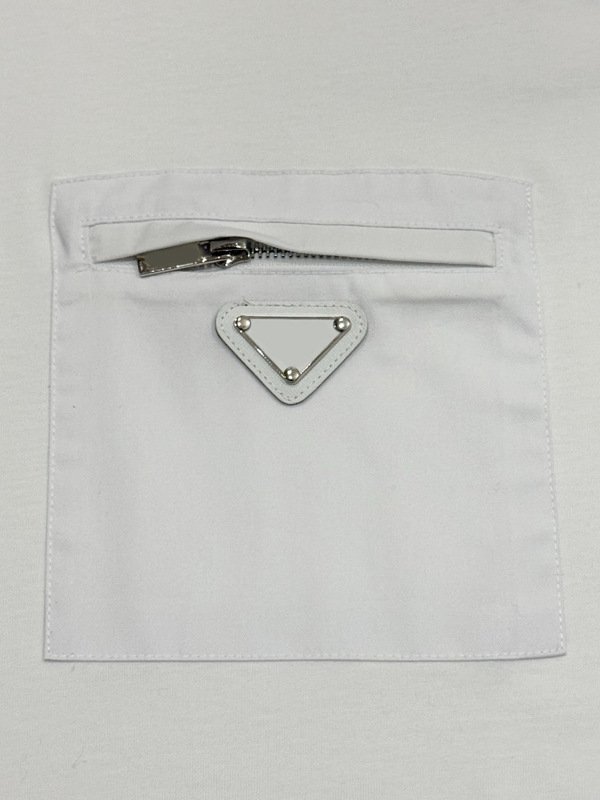 2025 봄과 여름 새로운 유럽 역 남자 트라이앵글 라벨 나일론 포켓 크루 넥 반팔 티셔츠 통기성 반팔 셔츠스토어 가기