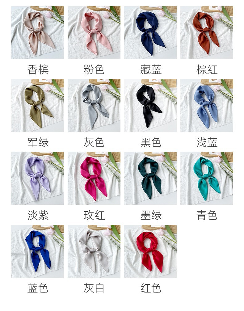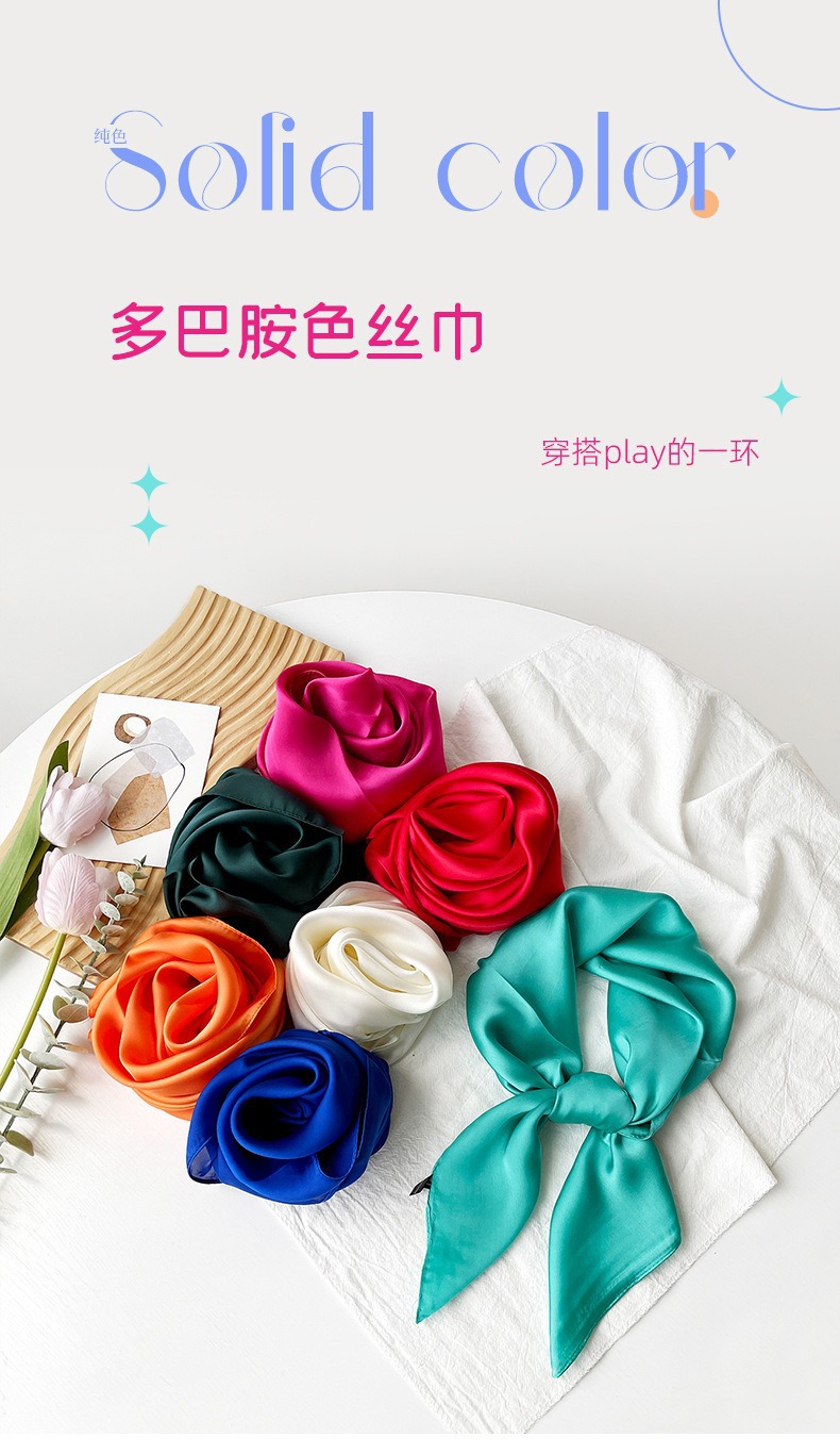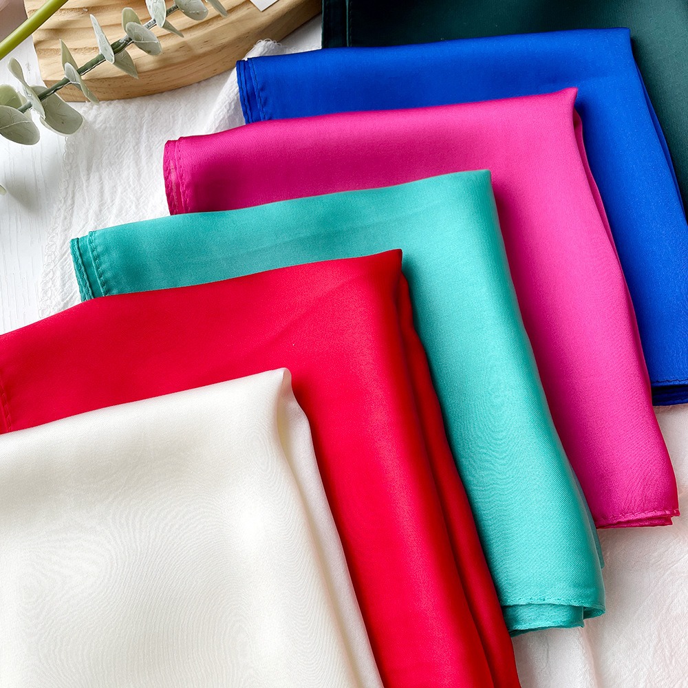 국경 간 핫 셀러 새틴 솔리드 컬러 스퀘어 스카프 숙녀 70 대외 무역 헤드 스카프 실크 스카프 패션 흑백 목도리