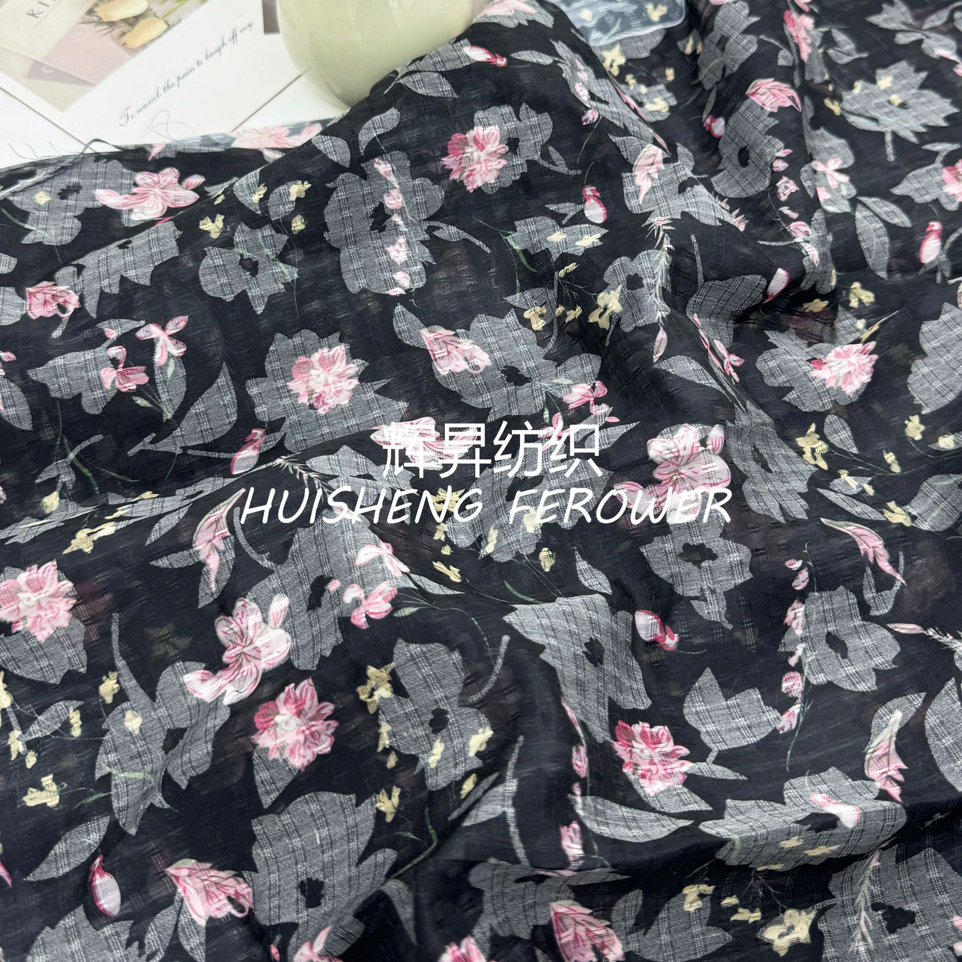 봄과 여름 쉬폰 컷 꽃 원단 신선한 꽃 디지털 인쇄 쉬폰 친환경 인쇄 및 염색 여성 드레스스토어 가기