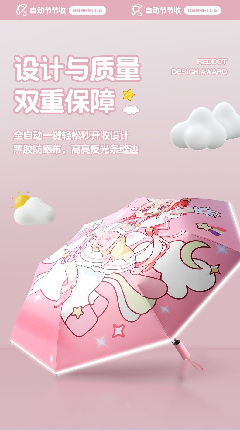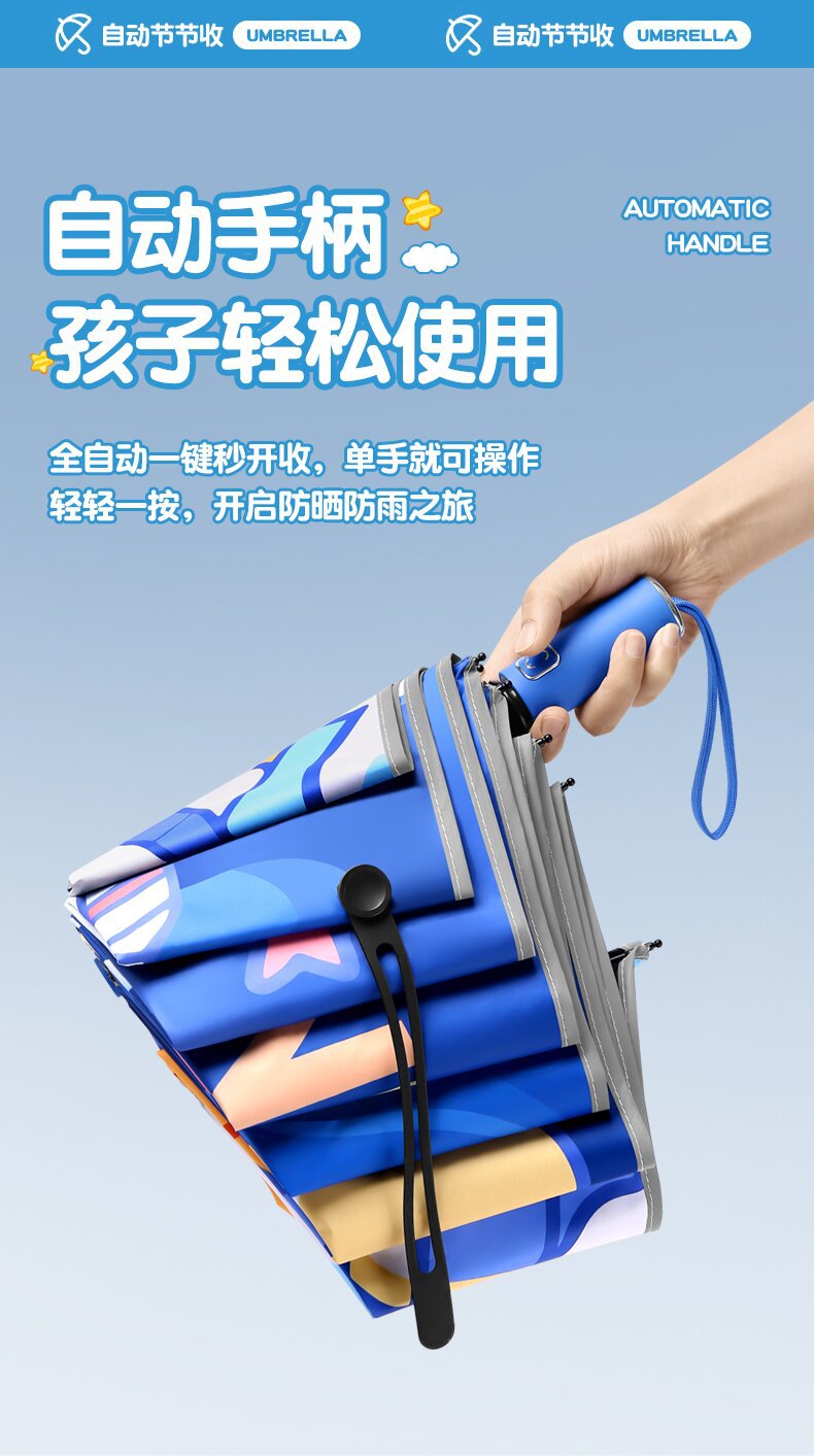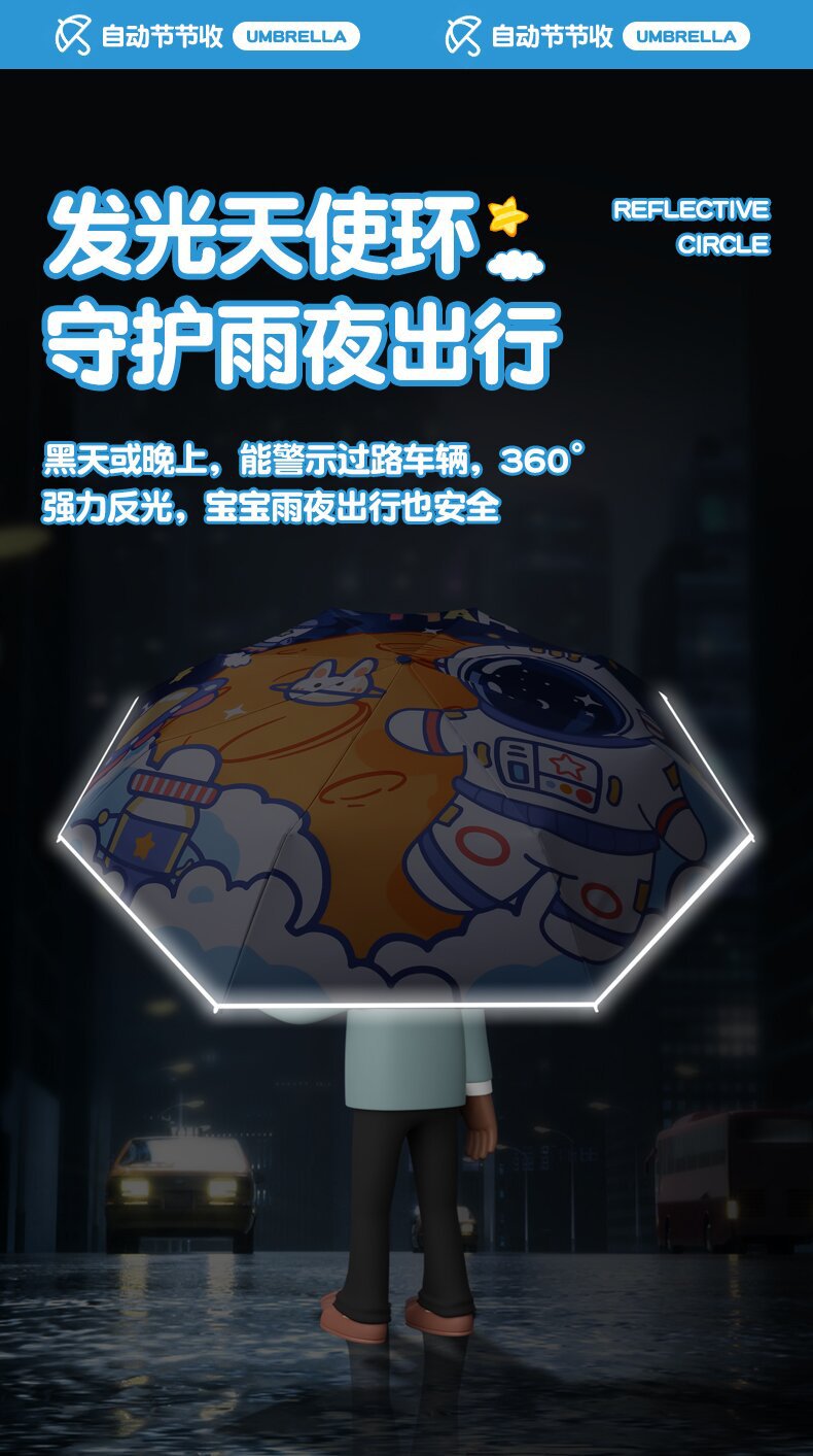 자동 안전 반동 방지 만화 귀여운 초등학교 어린이 우산 맑고 비 이중 목적 반사 스트립 접이식 검은 고무 태양 보호스토어 가기