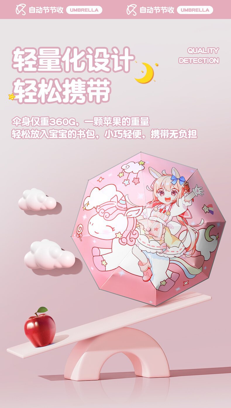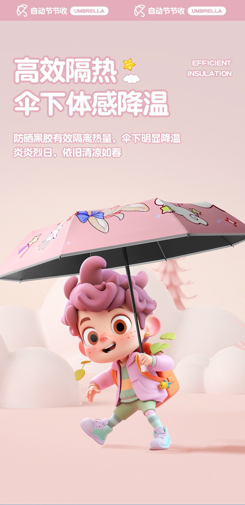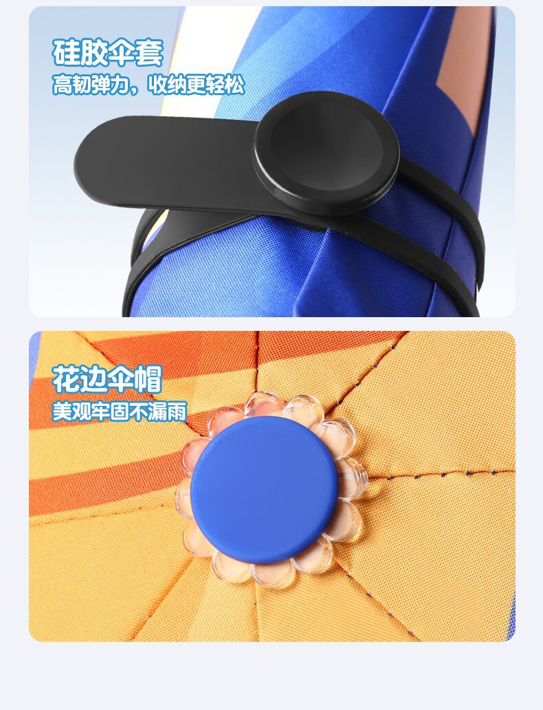 자동 안전 반동 방지 만화 귀여운 초등학교 어린이 우산 맑고 비 이중 목적 반사 스트립 접이식 검은 고무 태양 보호스토어 가기