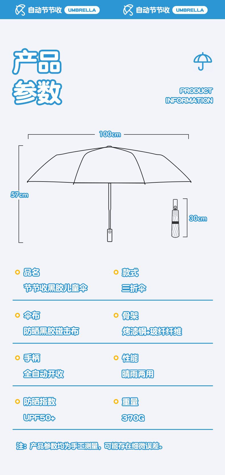 자동 안전 반동 방지 만화 귀여운 초등학교 어린이 우산 맑고 비 이중 목적 반사 스트립 접이식 검은 고무 태양 보호