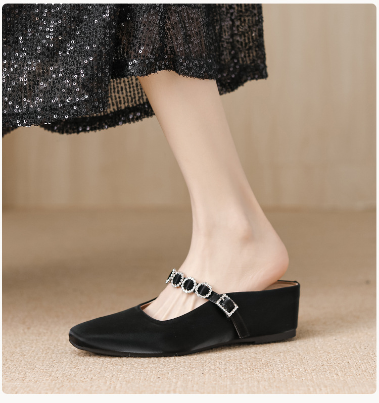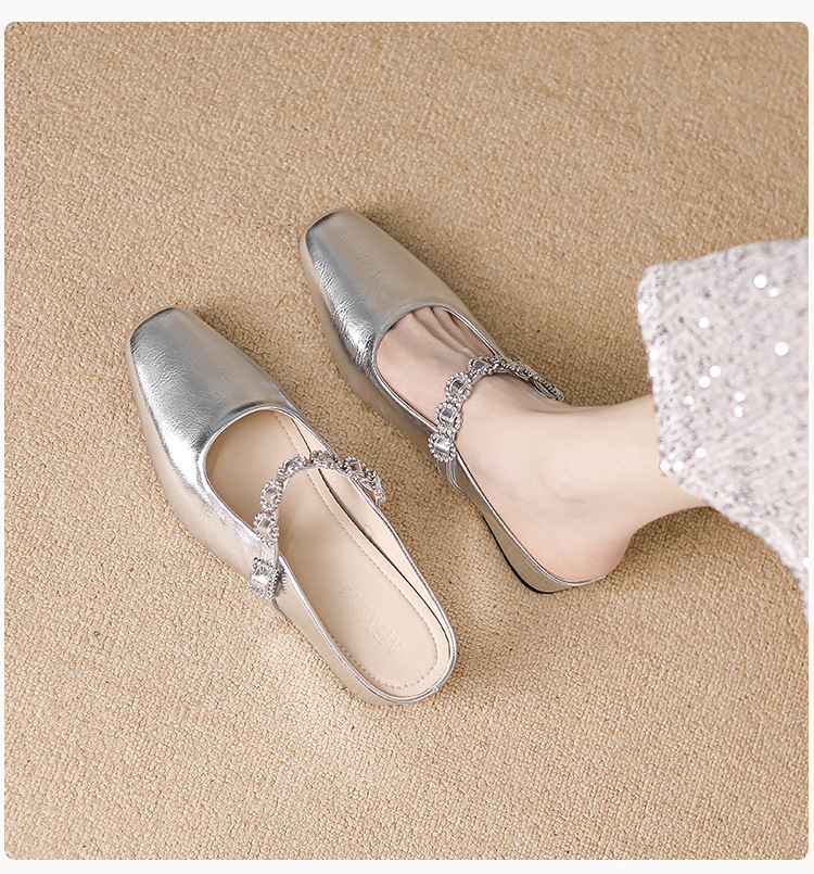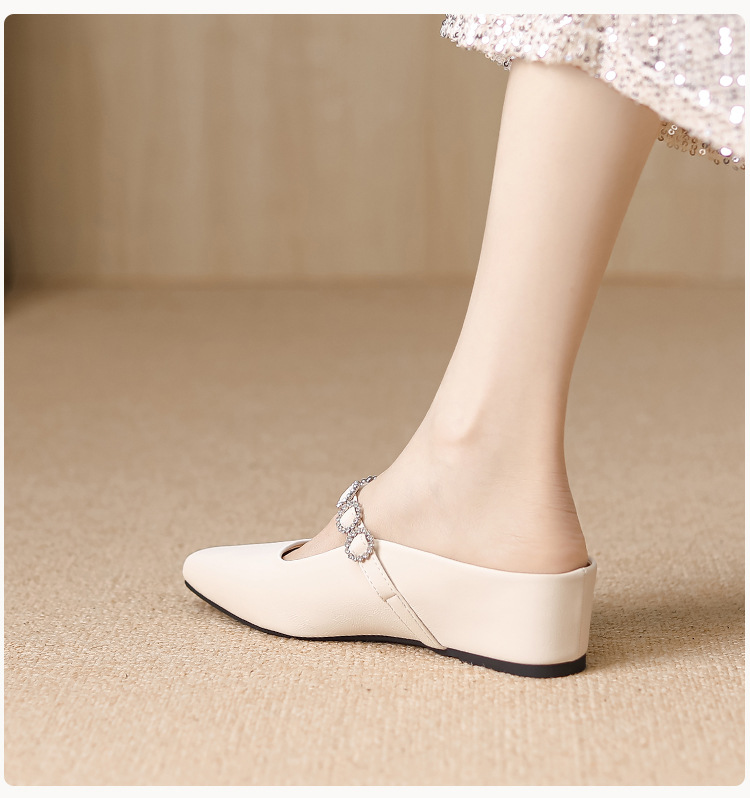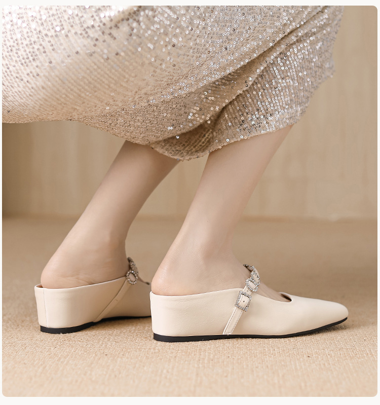 내부 키높이 기능이 있는 여성용 여름용 오픈토 슬리퍼, 2026년 신상 뮬 슈즈, 슬립온 웨지힐 실버 색상 싱글 슈즈스토어 가기