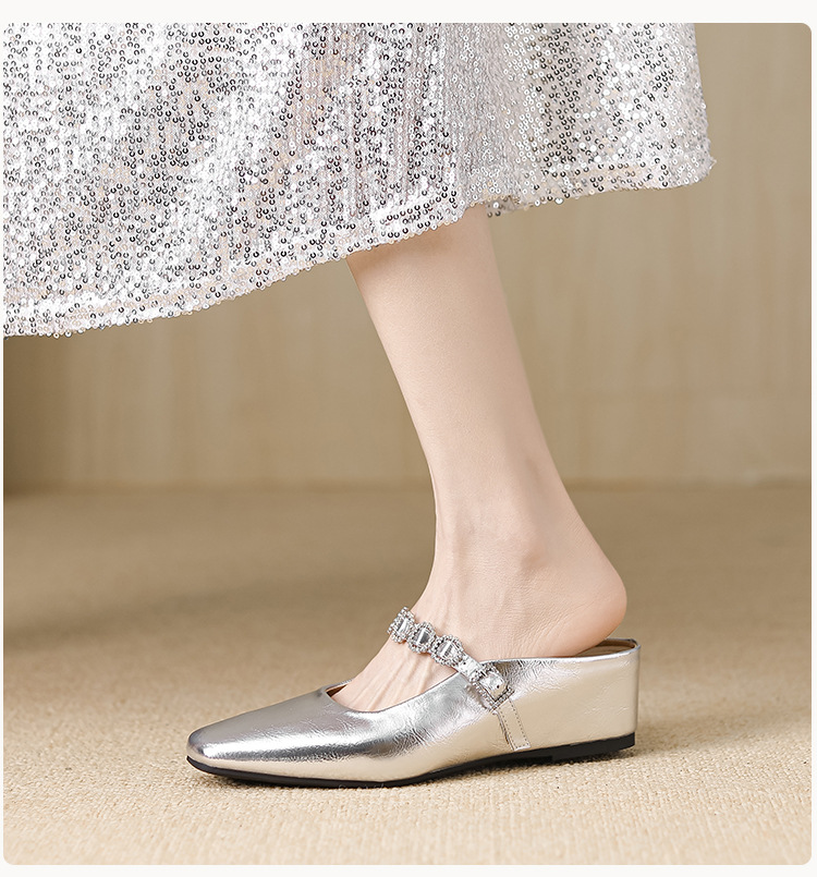 내부 키높이 기능이 있는 여성용 여름용 오픈토 슬리퍼, 2026년 신상 뮬 슈즈, 슬립온 웨지힐 실버 색상 싱글 슈즈