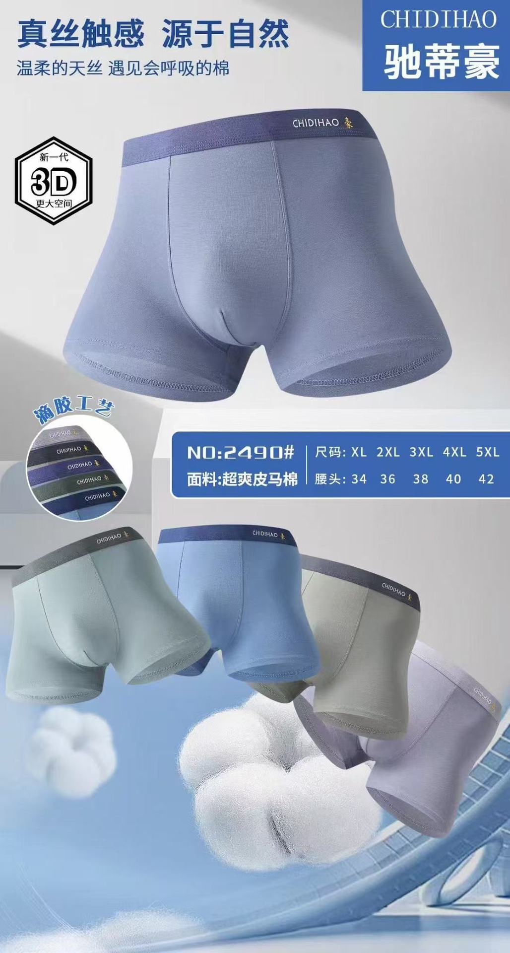 Chidihao 2490 남성용 복서 팬티 슈퍼 쿨 피마 코튼 솔리드 컬러 패션 코튼 복서 팬티 편안하고 통기성이 좋습니다.스토어 가기