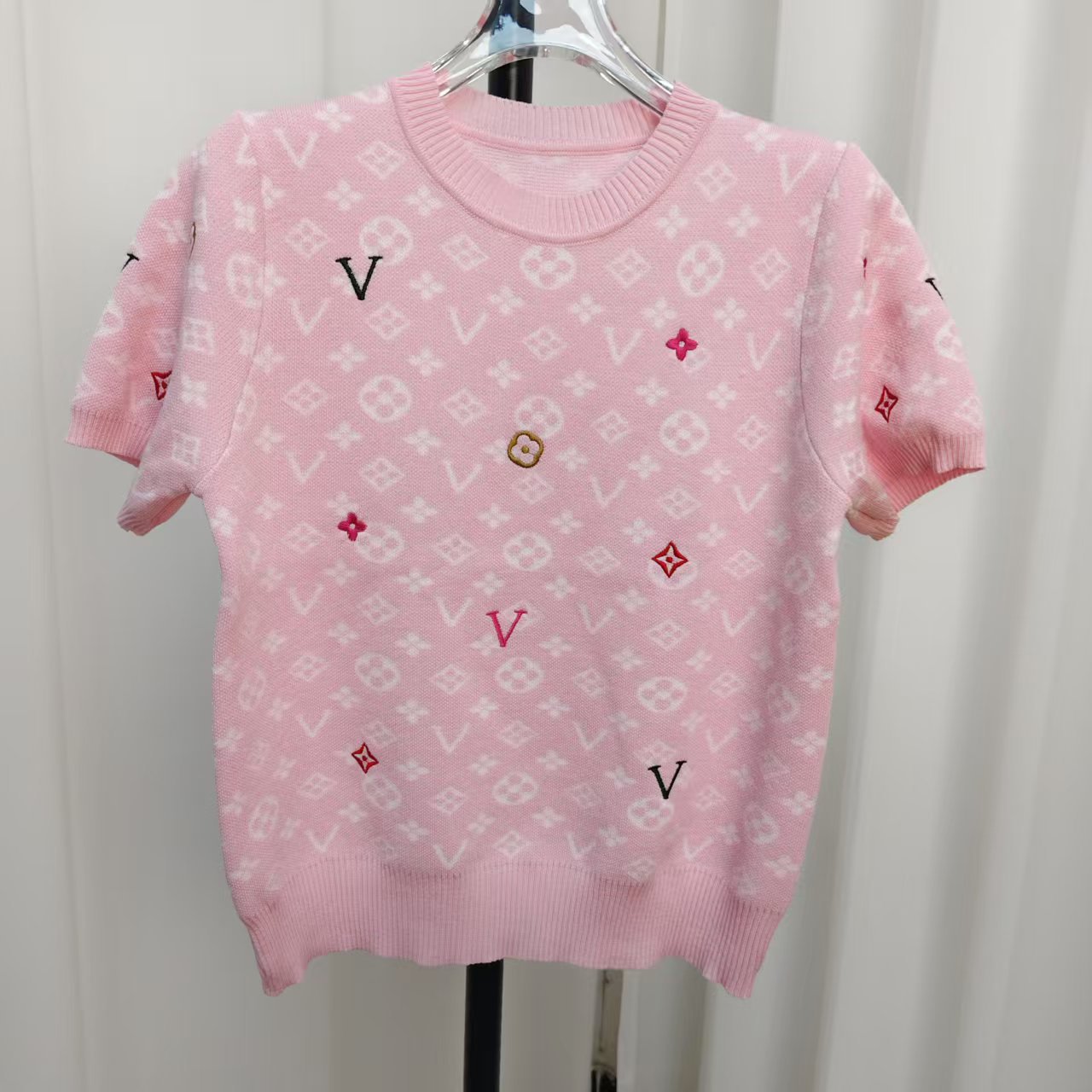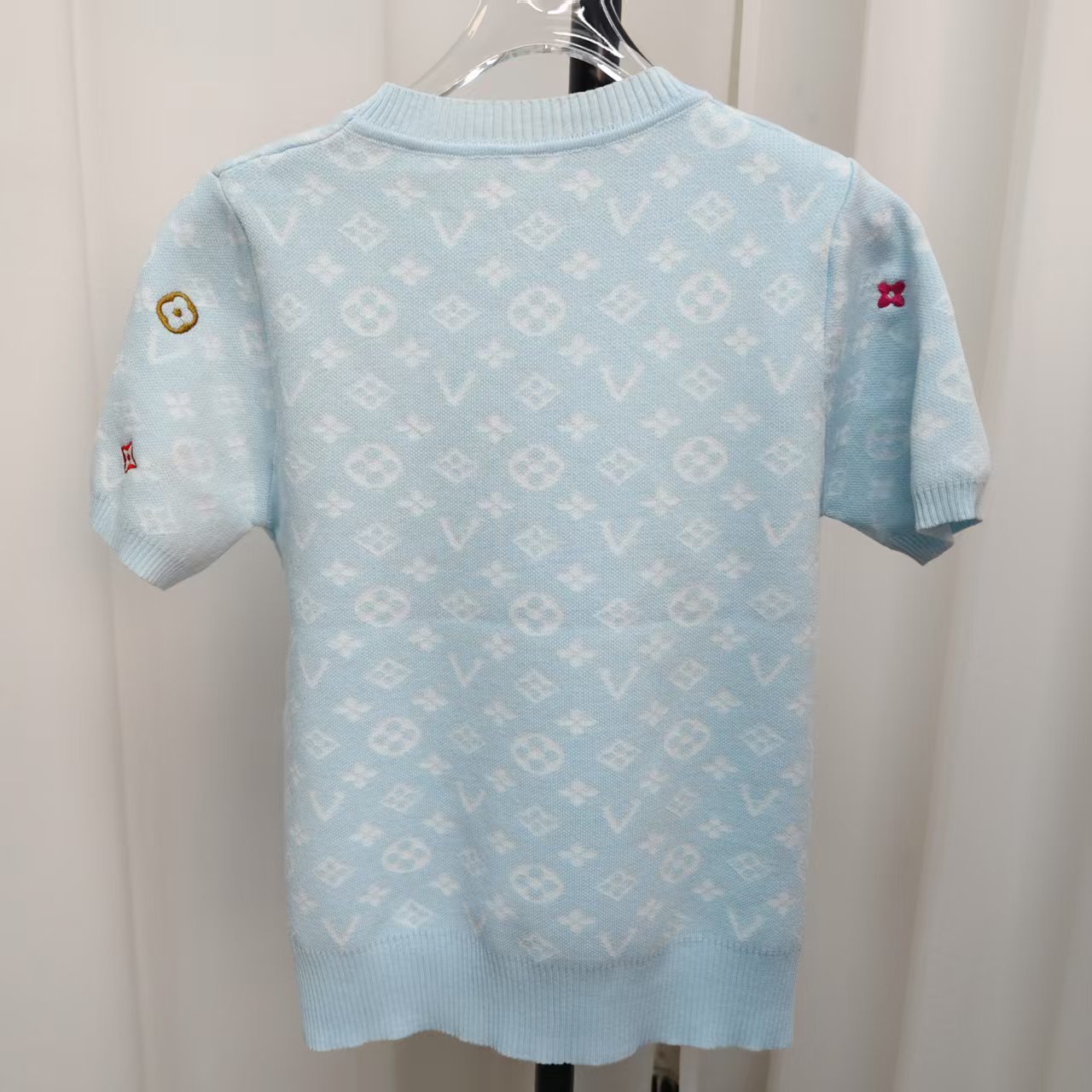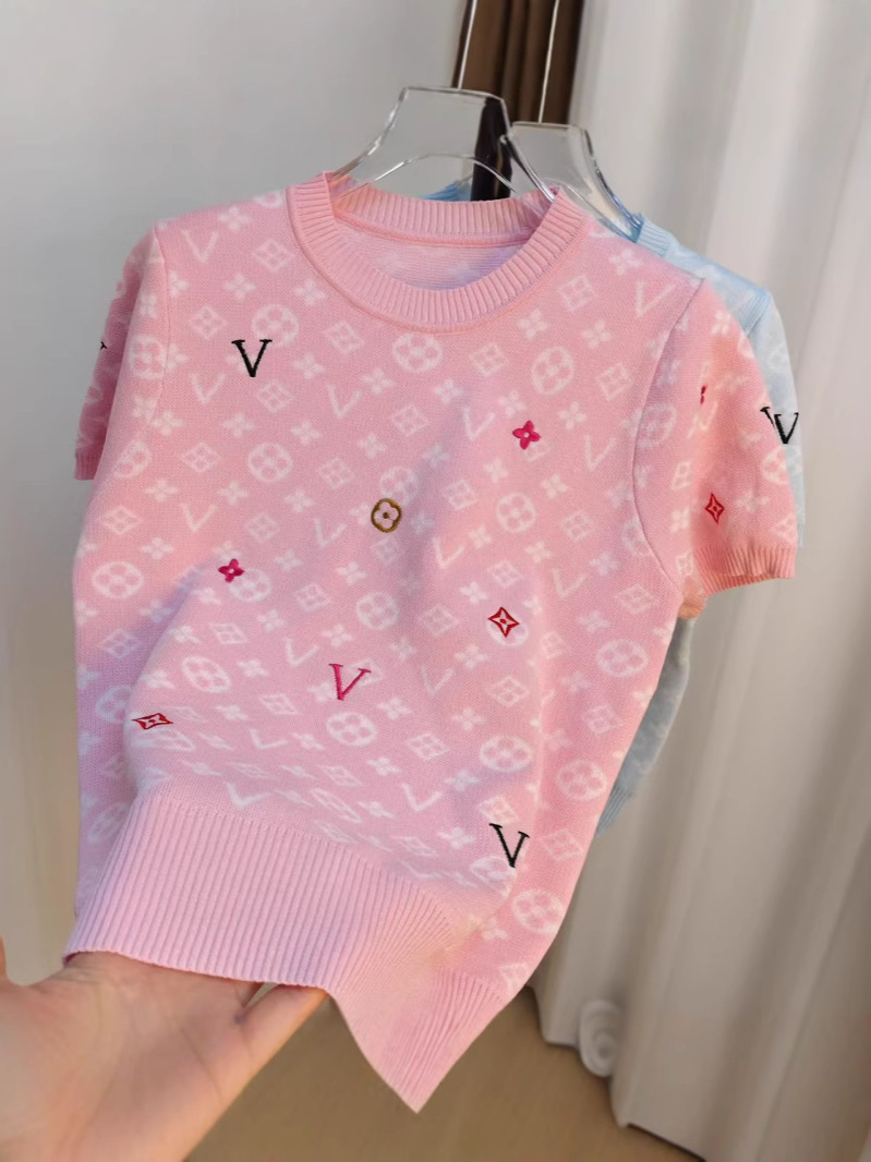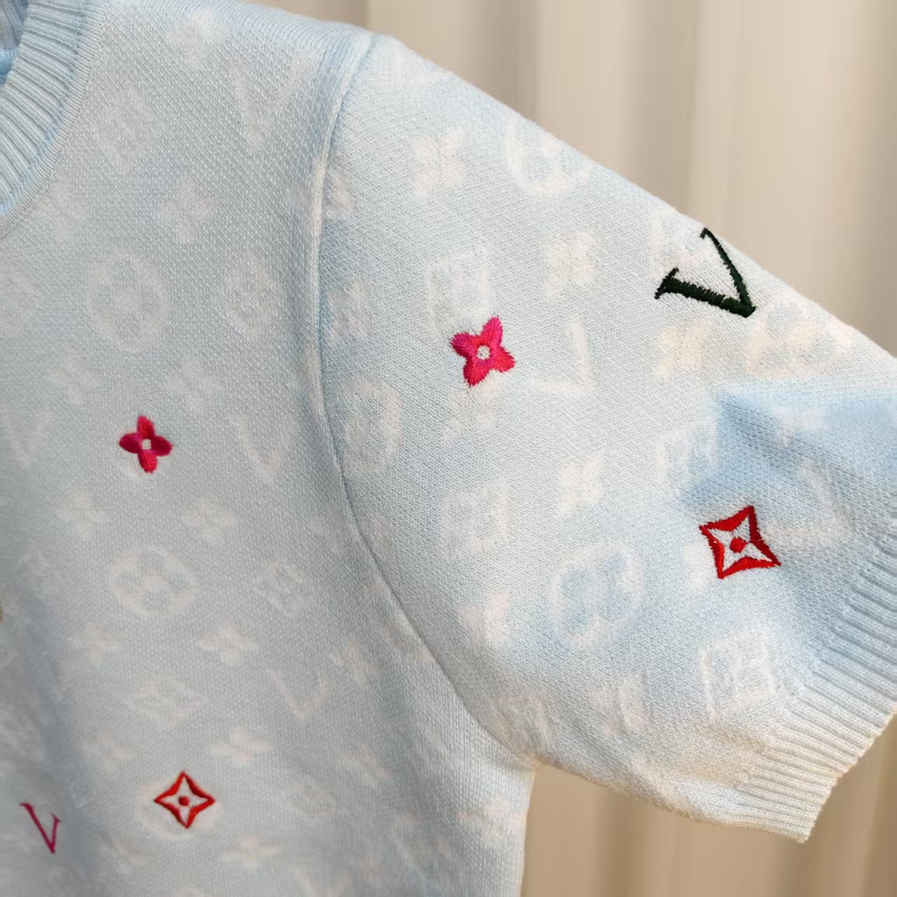 라운드넥 반팔 엠보싱 컬러풀 자수 풀오버 올드플라워 다크 패턴 니트 여성 상의 2025 신상스토어 가기