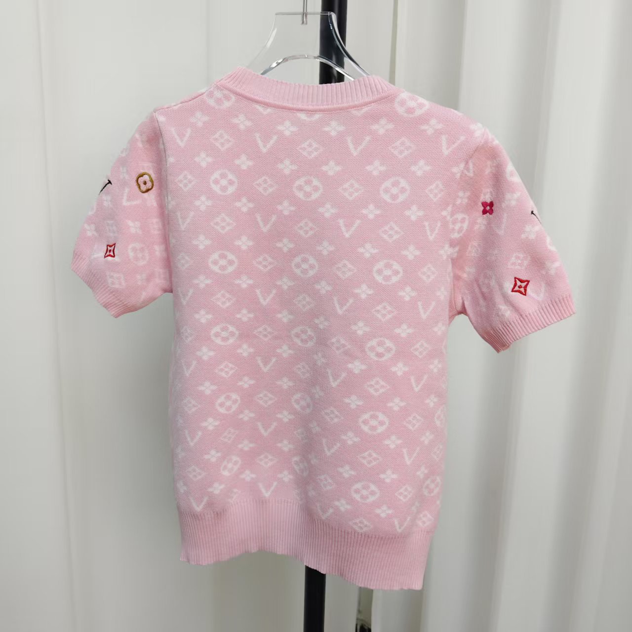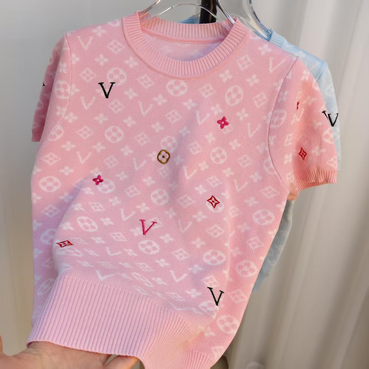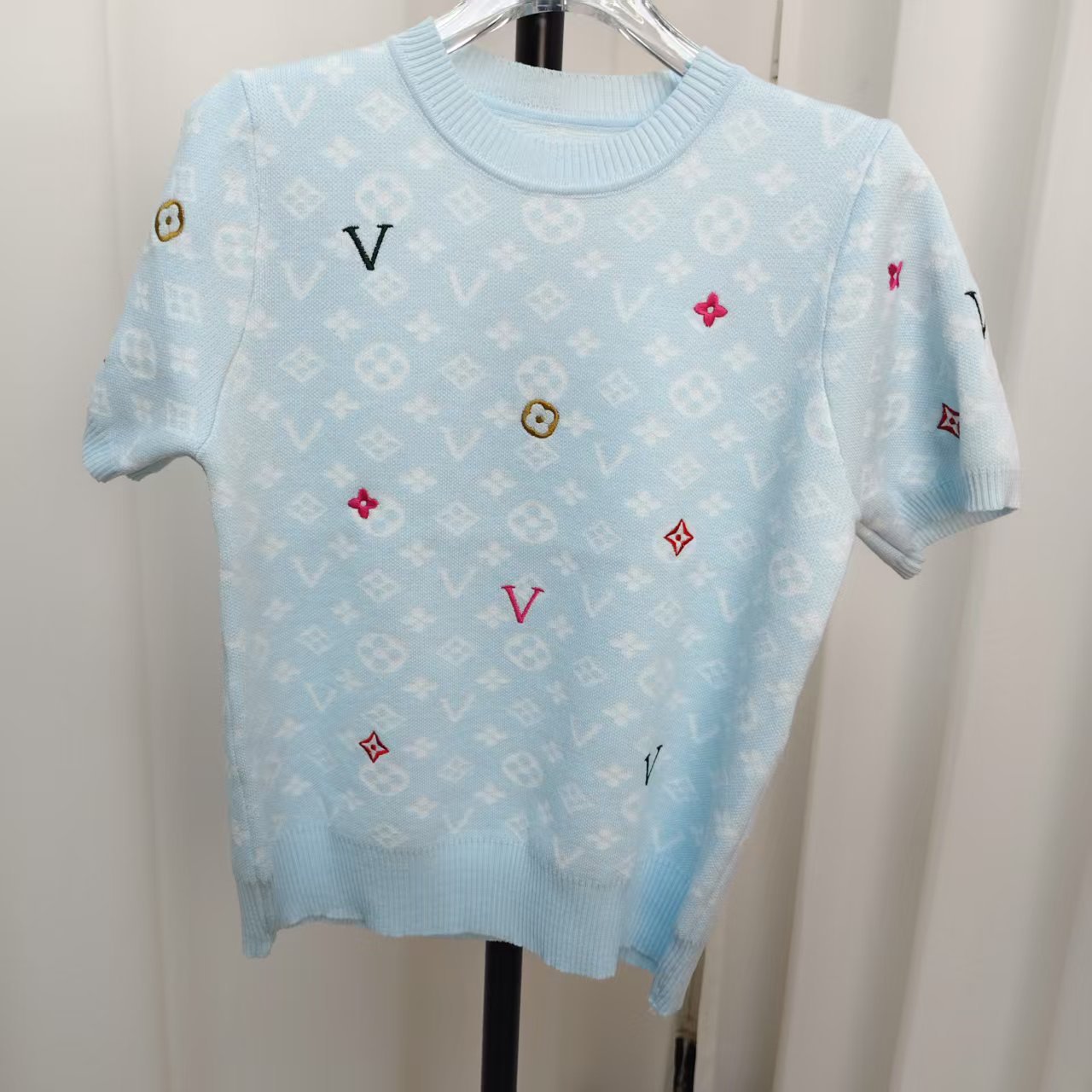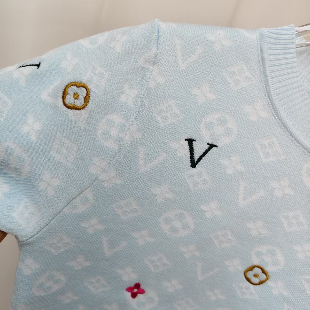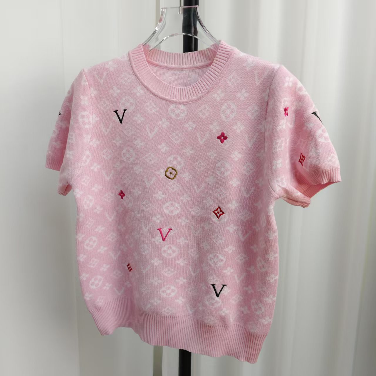 라운드넥 반팔 엠보싱 컬러풀 자수 풀오버 올드플라워 다크 패턴 니트 여성 상의 2025 신상스토어 가기