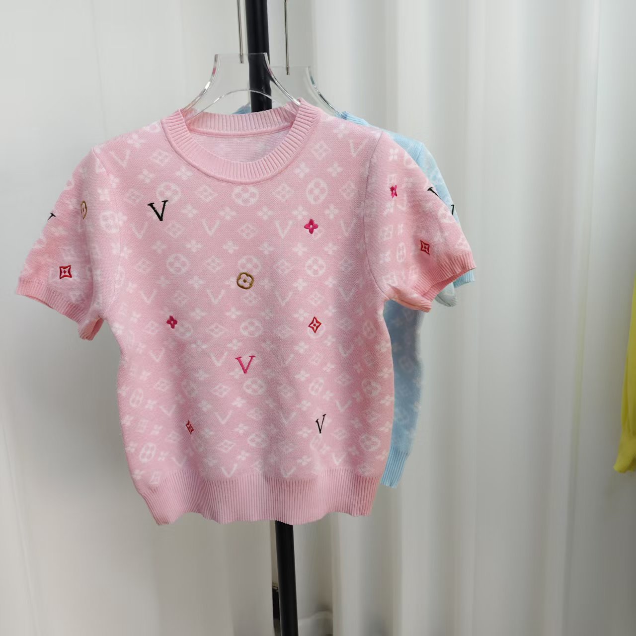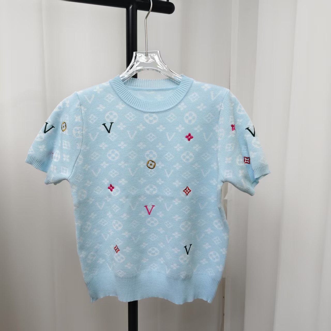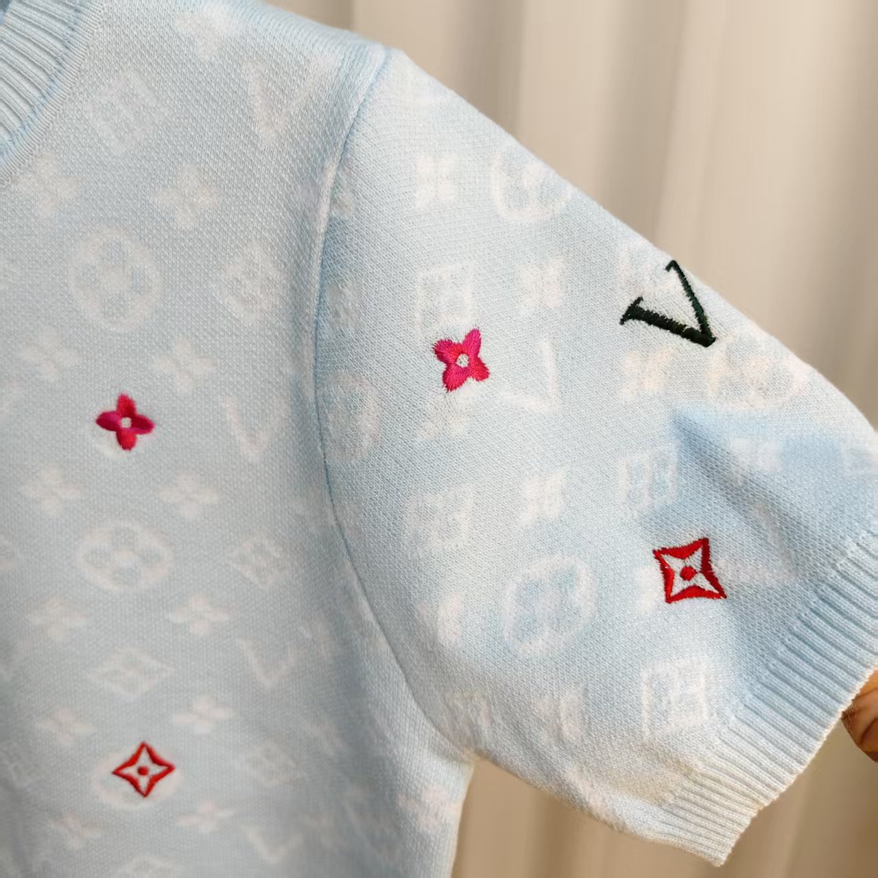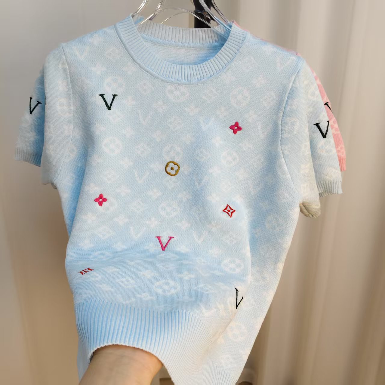 라운드넥 반팔 엠보싱 컬러풀 자수 풀오버 올드플라워 다크 패턴 니트 여성 상의 2025 신상스토어 가기