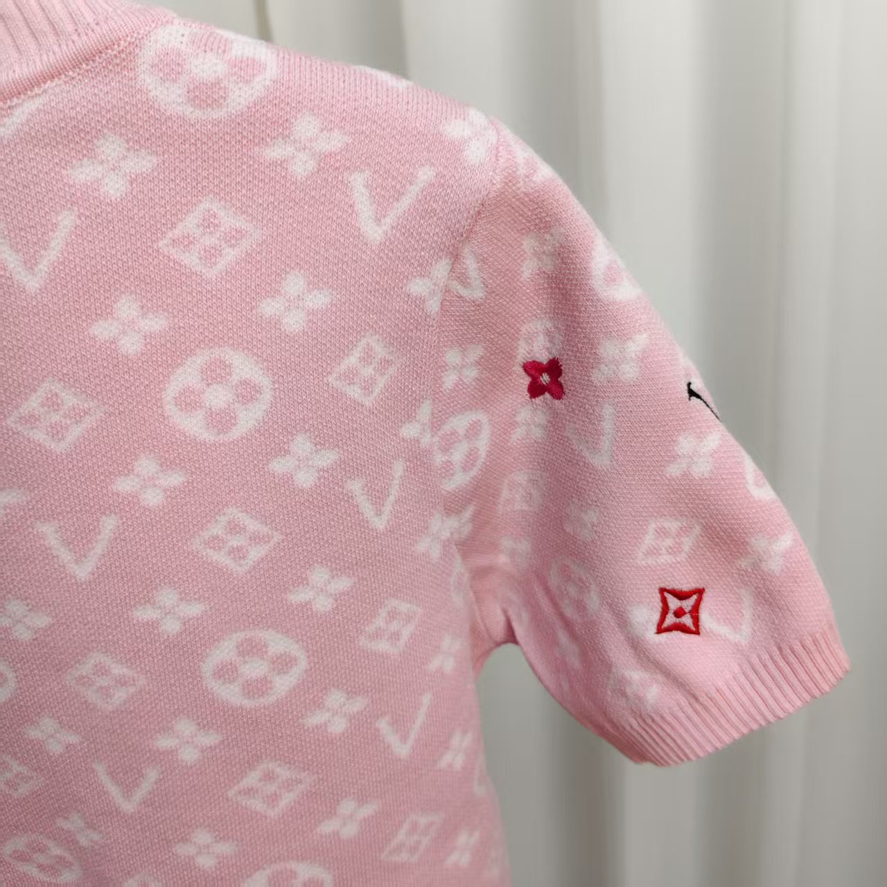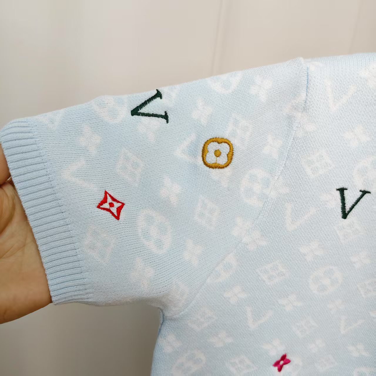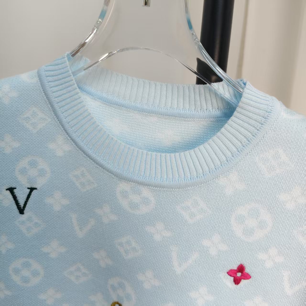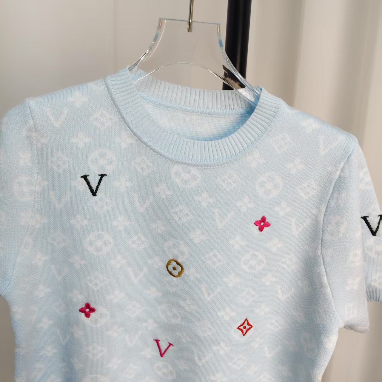 라운드넥 반팔 엠보싱 컬러풀 자수 풀오버 올드플라워 다크 패턴 니트 여성 상의 2025 신상스토어 가기