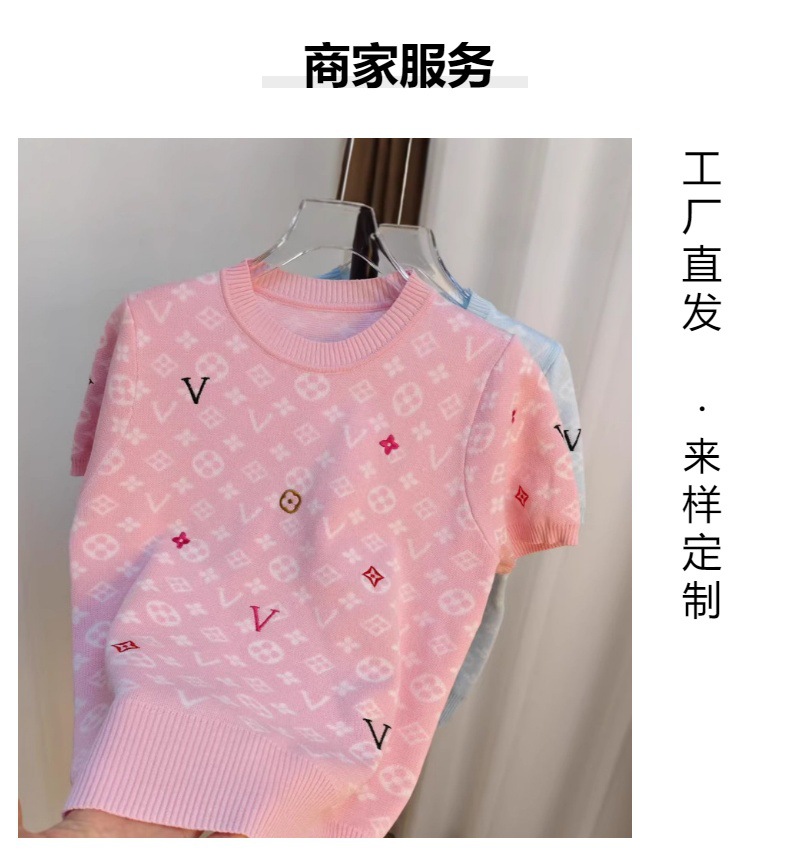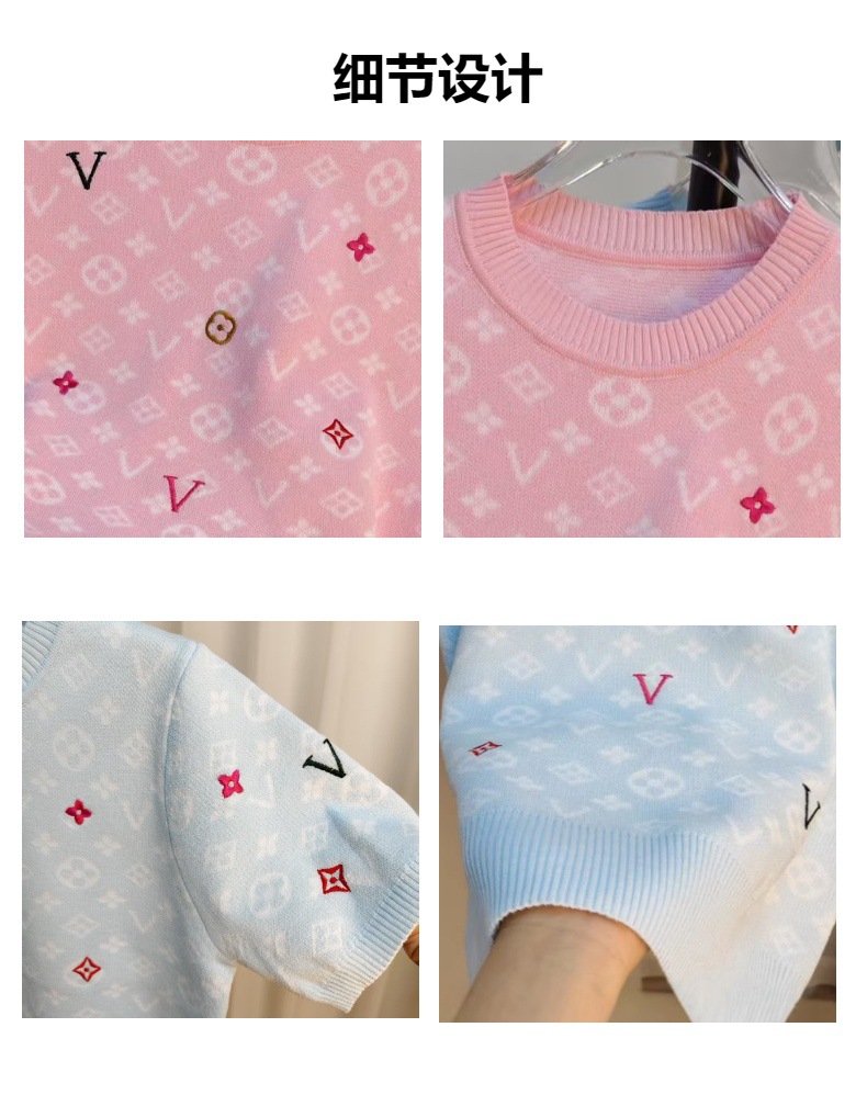 라운드넥 반팔 엠보싱 컬러풀 자수 풀오버 올드플라워 다크 패턴 니트 여성 상의 2025 신상