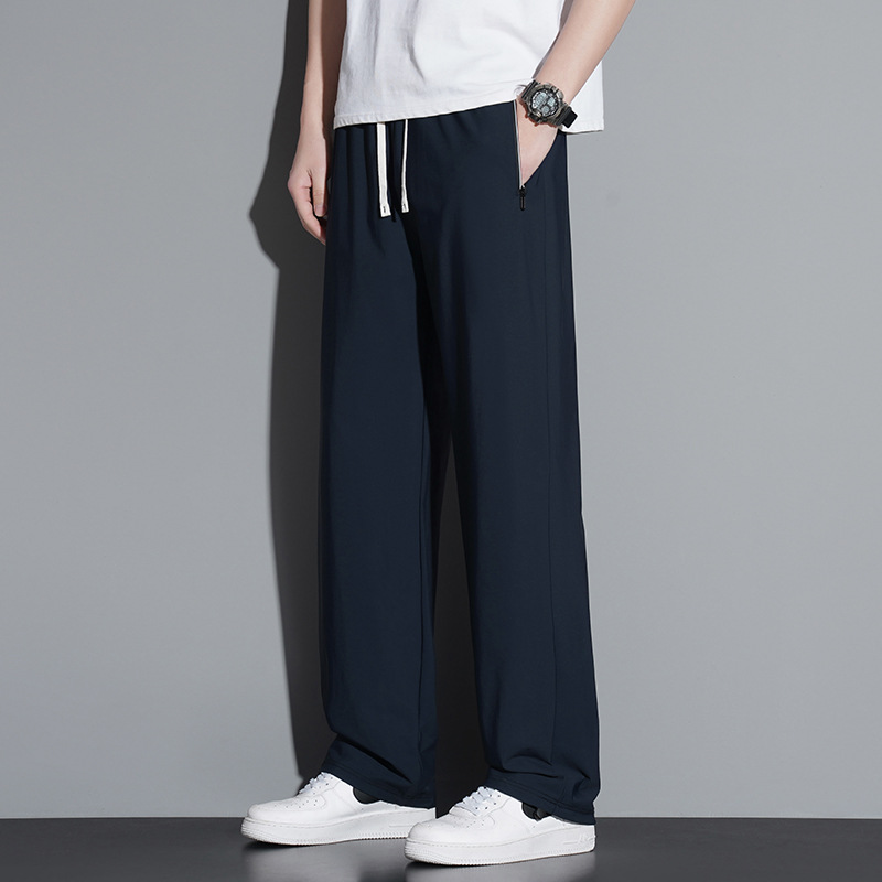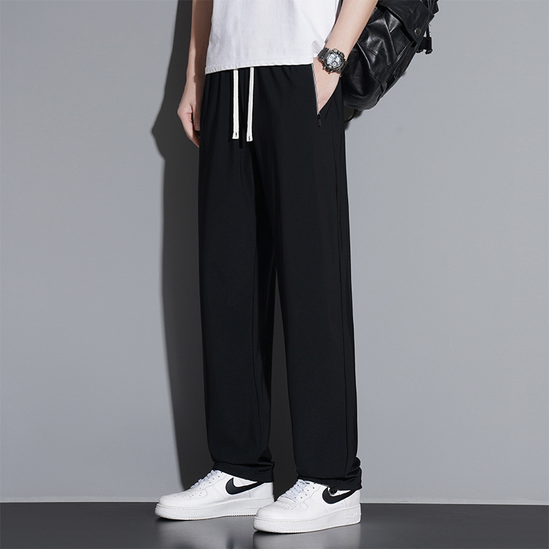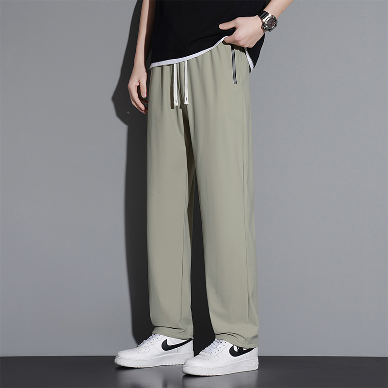 키가 큰 긴 아이스 실크 바지 남자 2025 여름 빠른 건조 스포츠 바지 느슨한 스트레이트 Drapy 캐주얼 바지