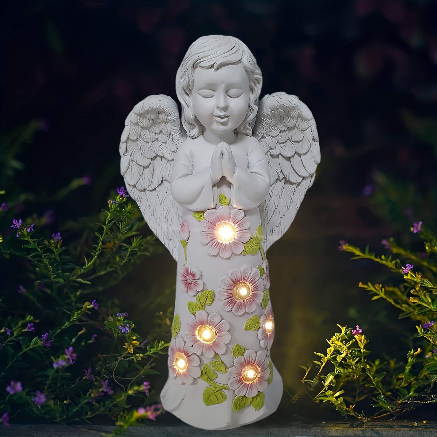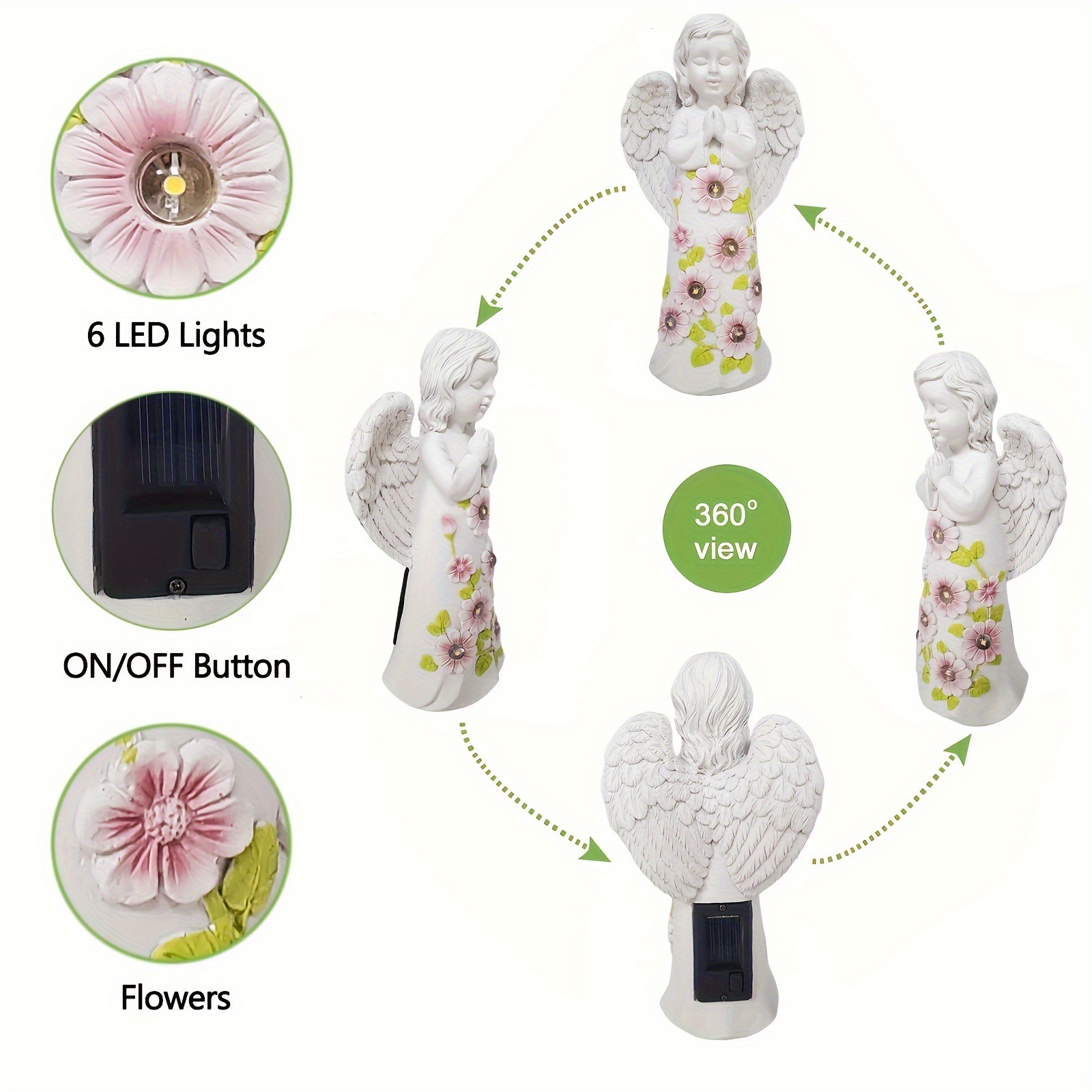 국경 간 유럽 스타일의 천사 소녀 꽃 랜턴 태양 광 발광 정원 가정용 가구 안뜰 장식 그림 조각스토어 가기