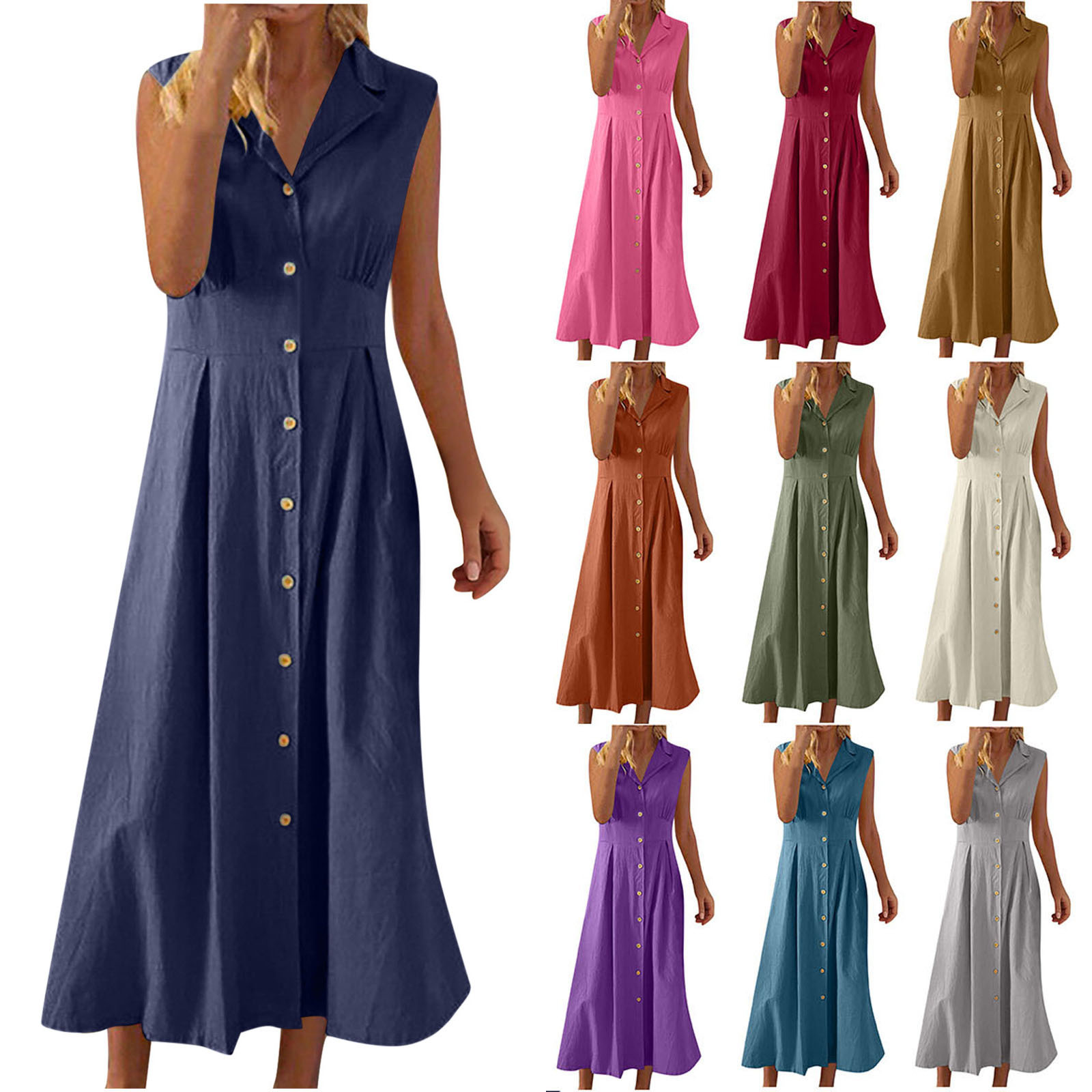 2025 유럽과 미국의 여름 새 스커트 아마존 옷깃 여성용 A 자형 복고풍 코튼 긴 원피스스토어 가기