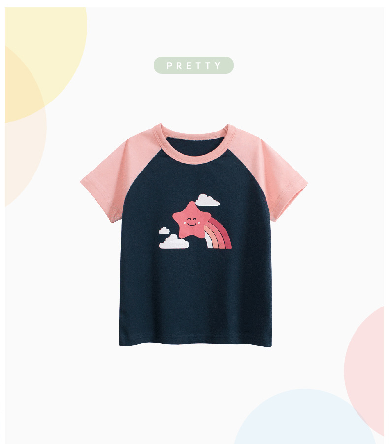 27home 여자 반팔 티셔츠 어린이 반팔 Douyin 공급 2025 여름 새로운 만화 인쇄 아동 의류 1스토어 가기