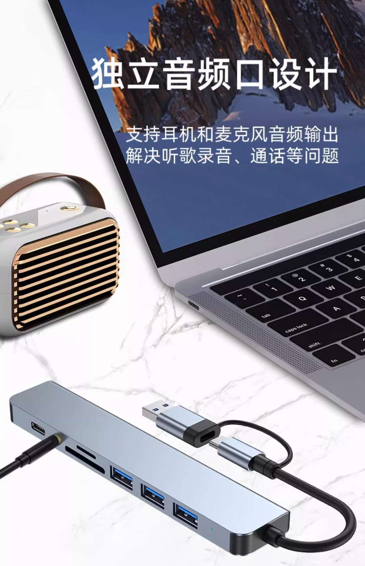 • 7in1-2【USB+typec】USB3.0+USB2.0*6