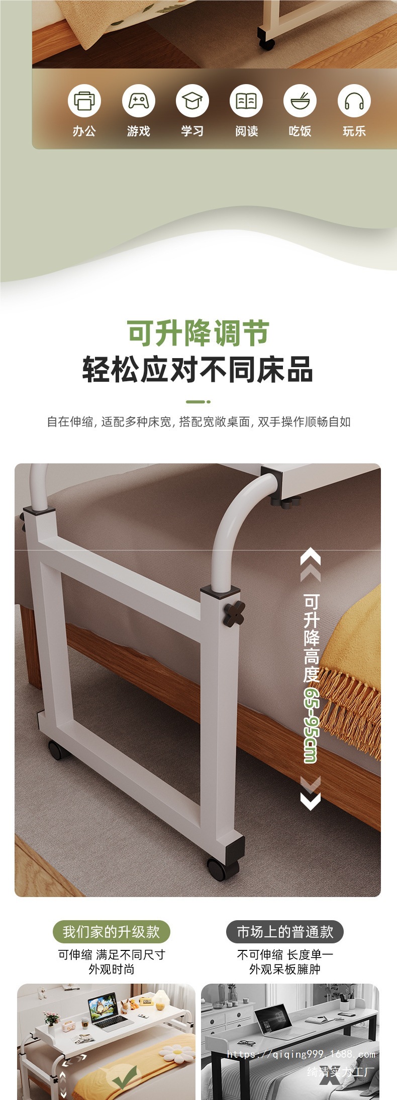 크로스베드 테이블, 이동식 책상, 컴퓨터 테이블, 가정용 침대 테이블, 게으른 리프팅 침실 침대 옆 작은 테이블, 침대 끝 테이블