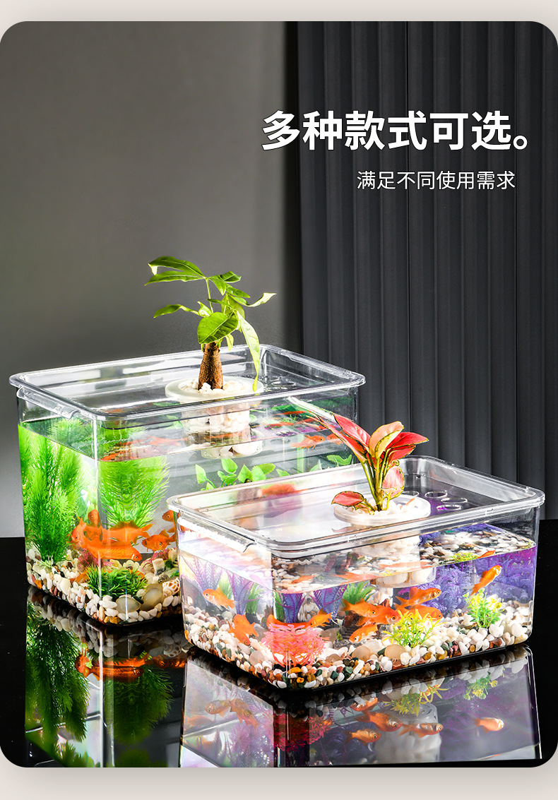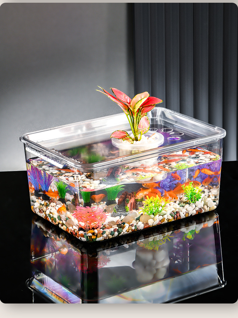 새로운 초대형 투명 플라스틱 어항 가정용 책상 사무실 거실 소형 거북이 어항 조경용 금붕어 어항