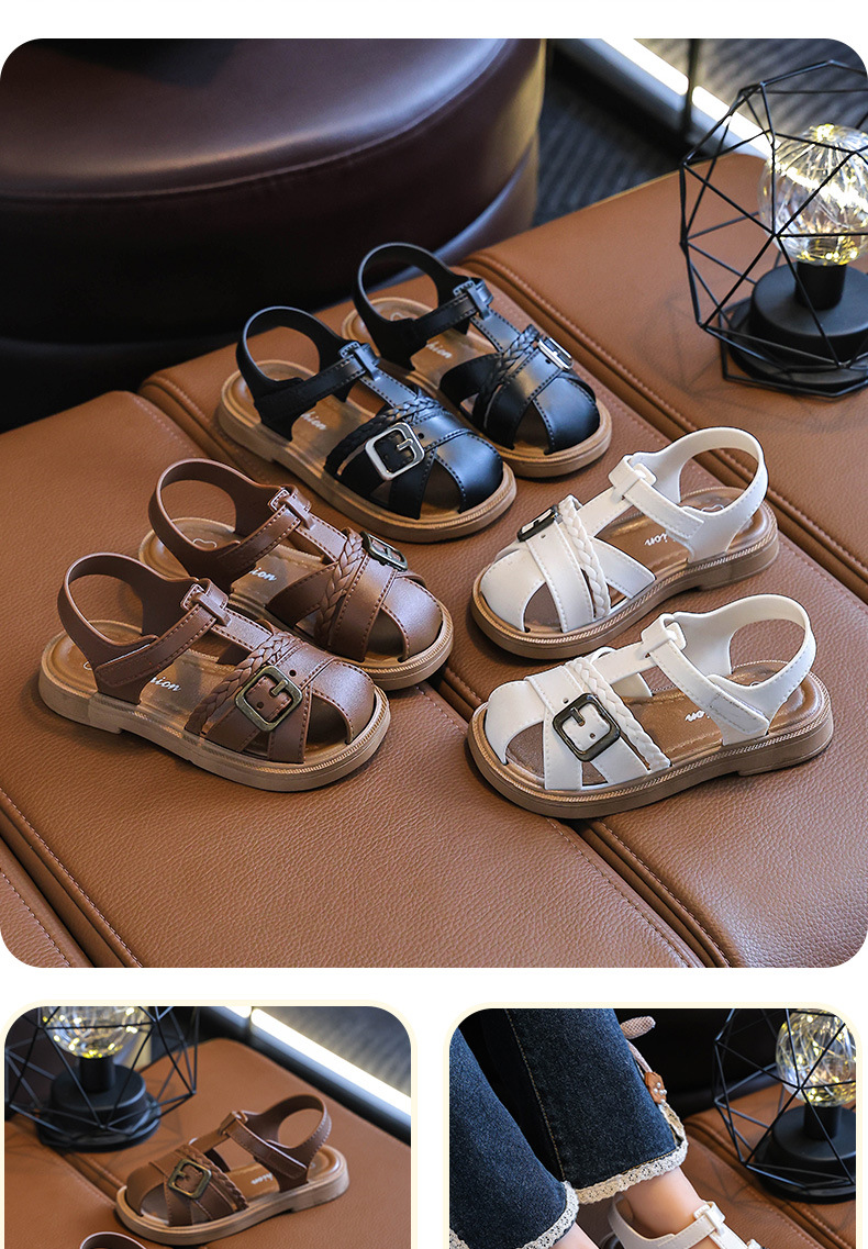 어린이 공주 샌들 2025 새로운 여름 미끄럼 방지 소프트 솔 걸스 대형 어린이 벨크로 어린이 신발 비치 샌들