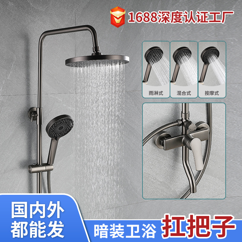 가정용 욕실 및 화장실용 맞춤형 건 그레이 샤워 헤드 세트 전체 구리 가압 샤워 샤워 크로스보더 호텔스토어 가기