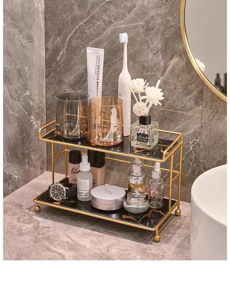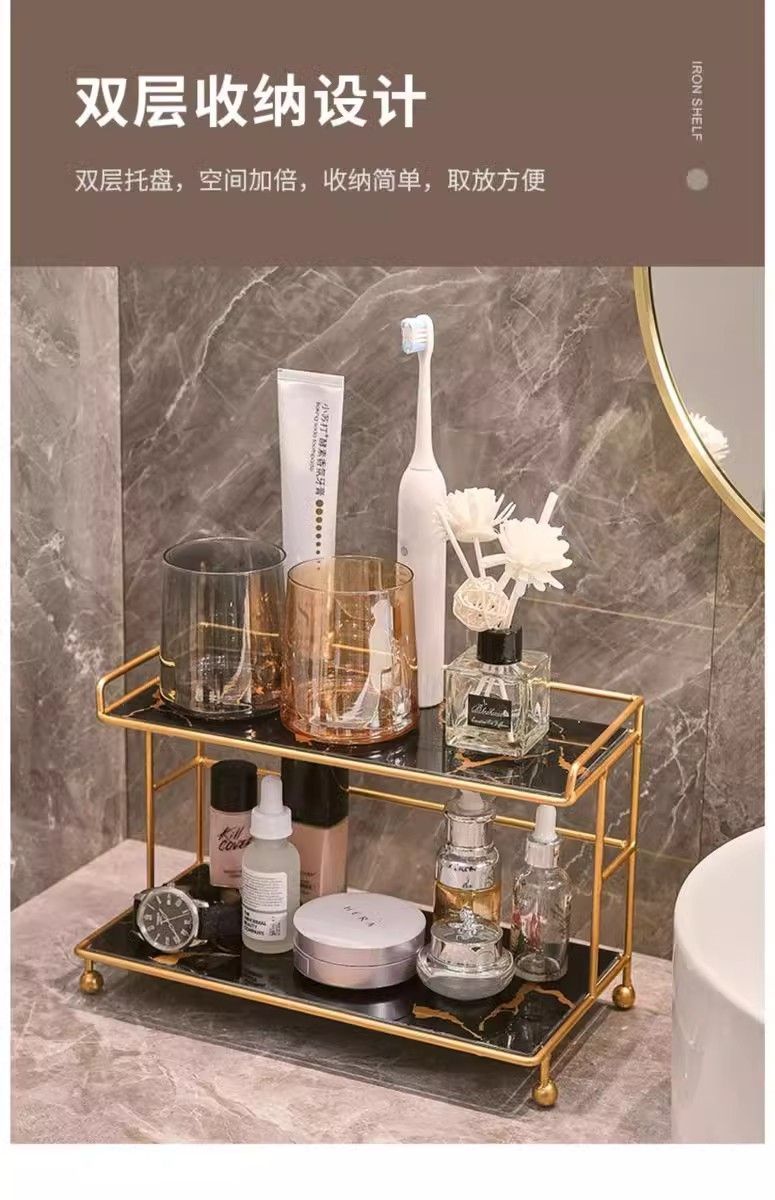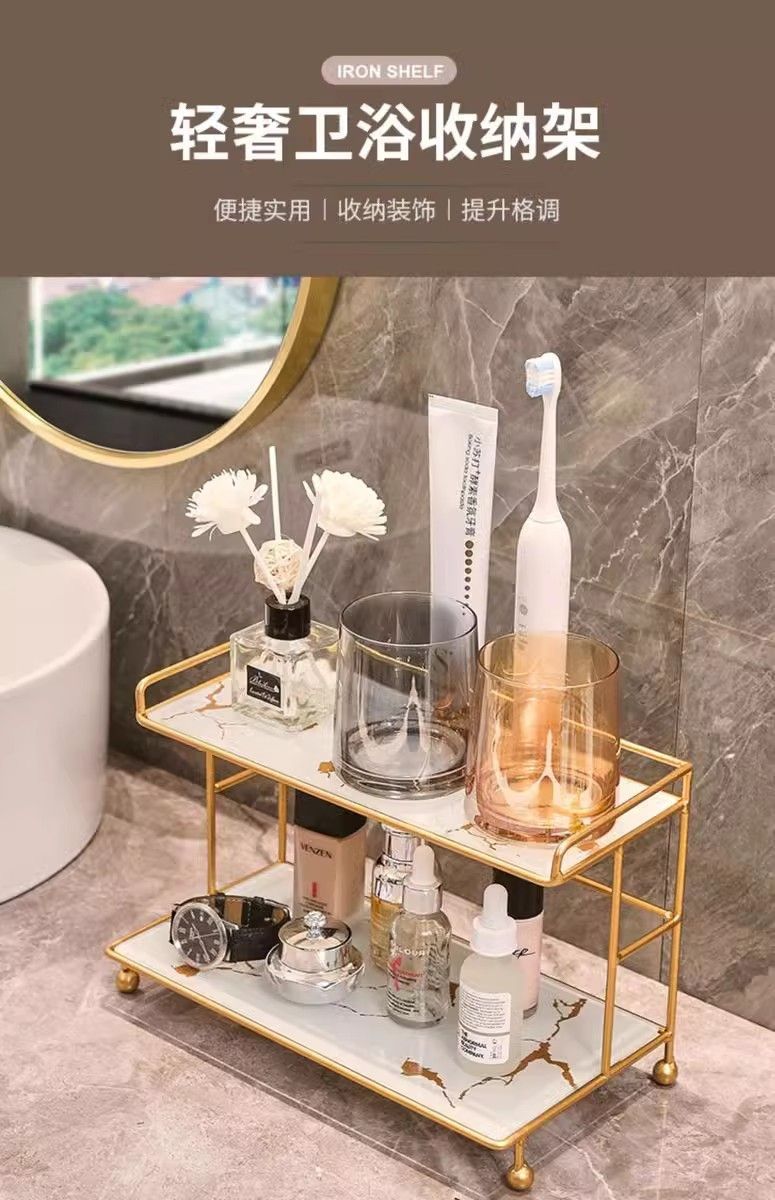 화장품 드레싱 테이블 스토리지 라이트 럭셔리 스토리지 랙 데스크탑 화장실 욕실 철 다층 대용량 스토리지 랙
