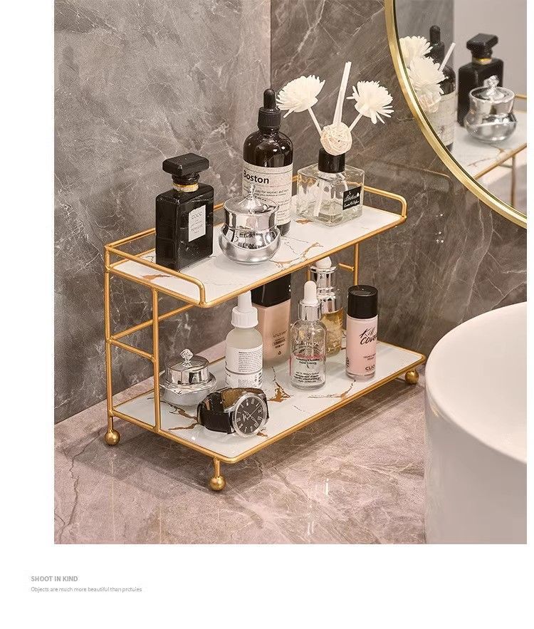 화장품 드레싱 테이블 스토리지 라이트 럭셔리 스토리지 랙 데스크탑 화장실 욕실 철 다층 대용량 스토리지 랙스토어 가기