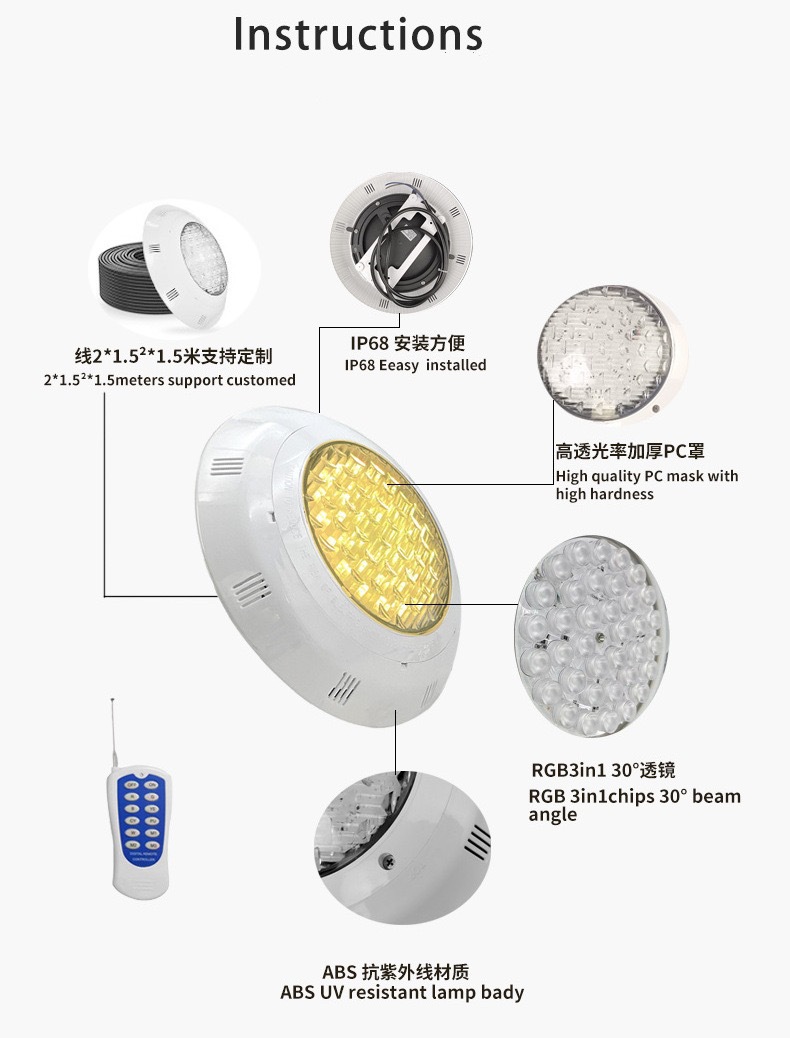 국경 간 수영장 벽등 LED 수영장 조명 24V 조경 수중 다채로운 어항 조명 리모컨식 수영장 수중 조명