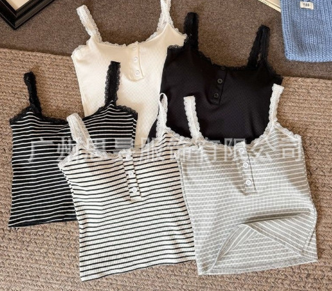 가슴 패드가 있는 여성용 레이스 버튼 캐미솔, 올인원 컵, 가슴 커버, 아름다운 등, 밑단, 민소매 탑스토어 가기