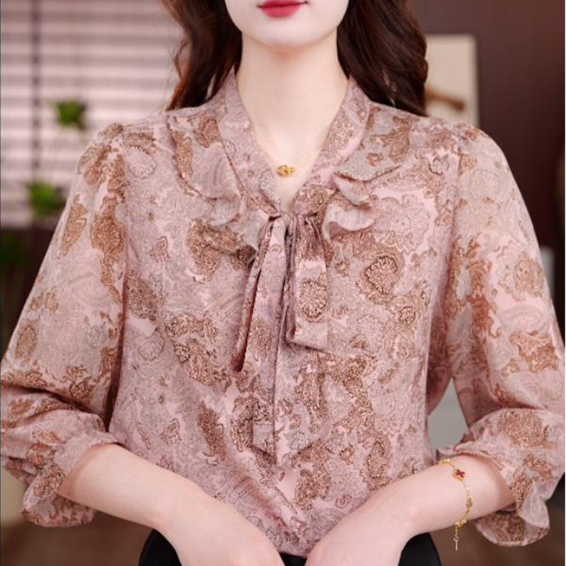 한국 스타일 프린트 활 얇은 쉬폰 셔츠 2025 새로운 서양 스타일 작은 셔츠 달콤한 우아한 세븐 슬리브 탑