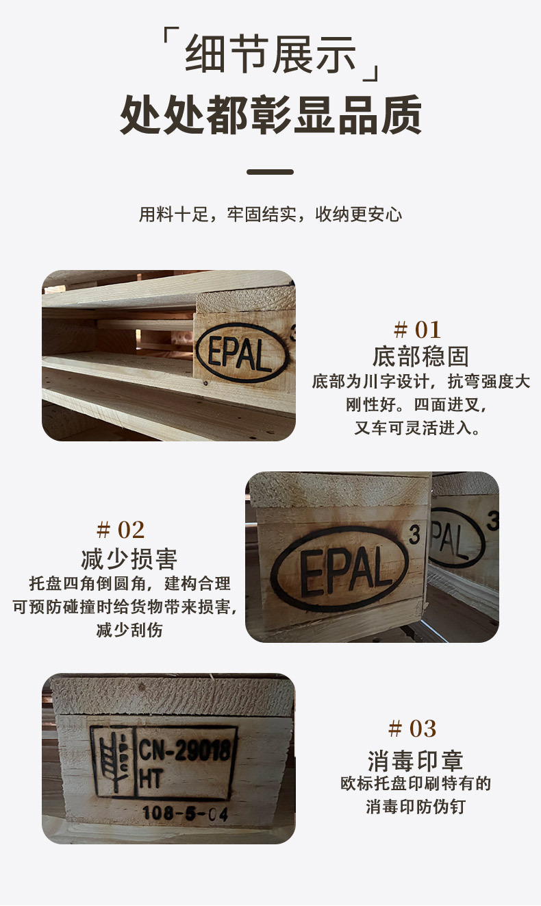 장쑤성, 절강성 및 상하이의 새로운 유럽 표준 No. 3 증기 훈제 목재 팔레트 EPAL 지게차 운송 플랫폼 패드 IPPC 단단한 나무 팔레트