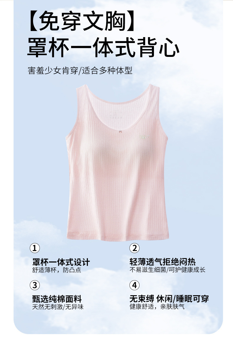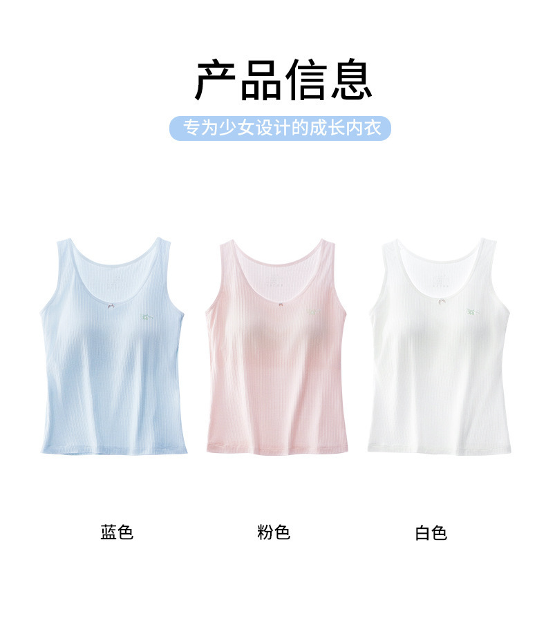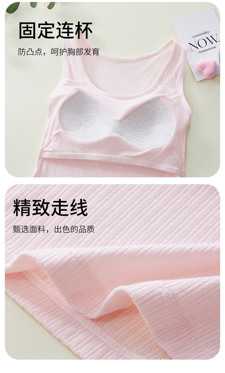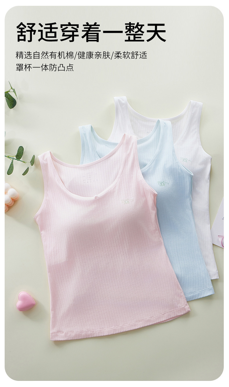 여아조끼, 롱슬링, 발달기 속옷, 여아, 중학생, 순면, 14세 고정컵브라