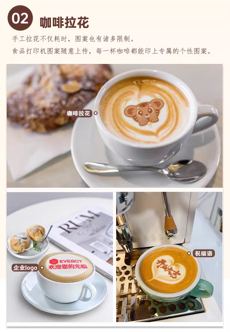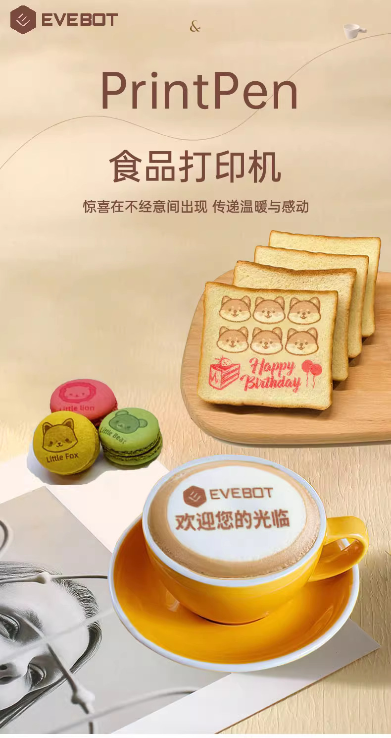 EVEBOT 십억 와트 핸드 헬드 푸드 프린터 커피 구르트 디너 플레이트 축복하는 빵 비스킷 DIY 패턴스토어 가기