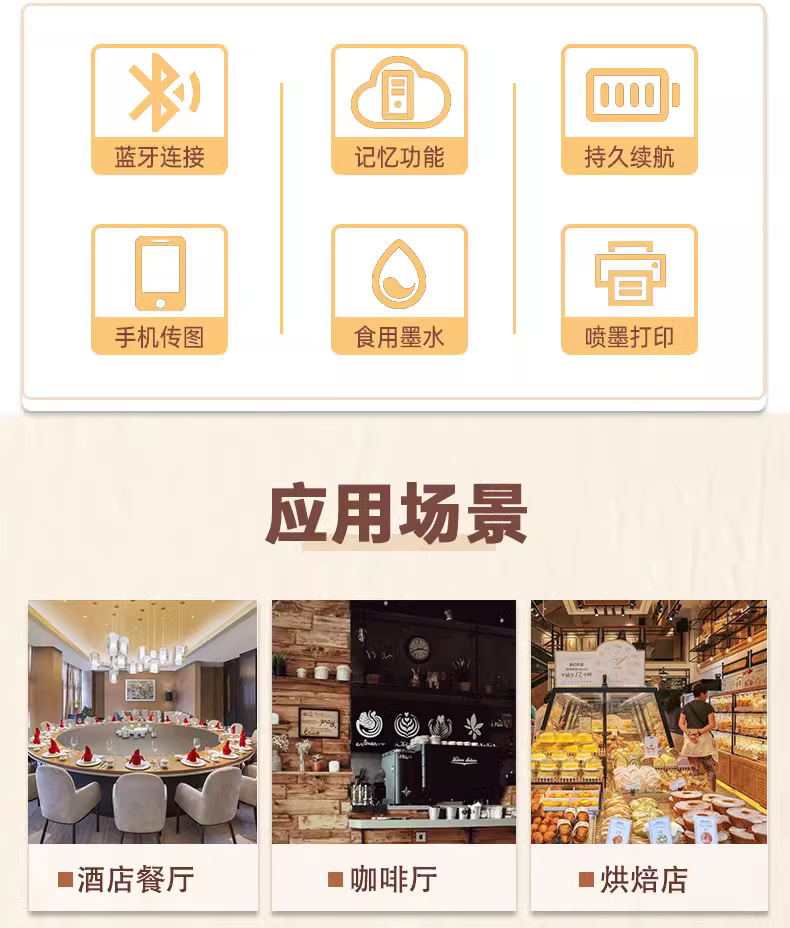 EVEBOT 십억 와트 핸드 헬드 푸드 프린터 커피 구르트 디너 플레이트 축복하는 빵 비스킷 DIY 패턴