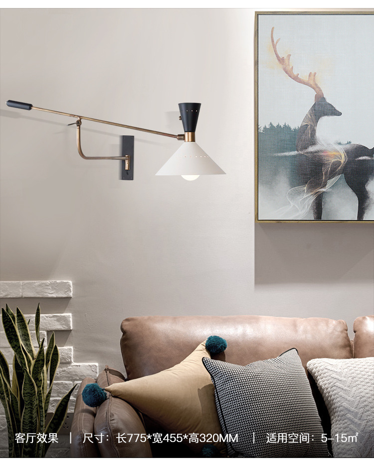 중산 공장 직접 판매 북유럽 현대 미니멀 아트 로커 벽 램프 크리 에이 티브 긴 팔 복고풍 거실 호텔 B & B스토어 가기
