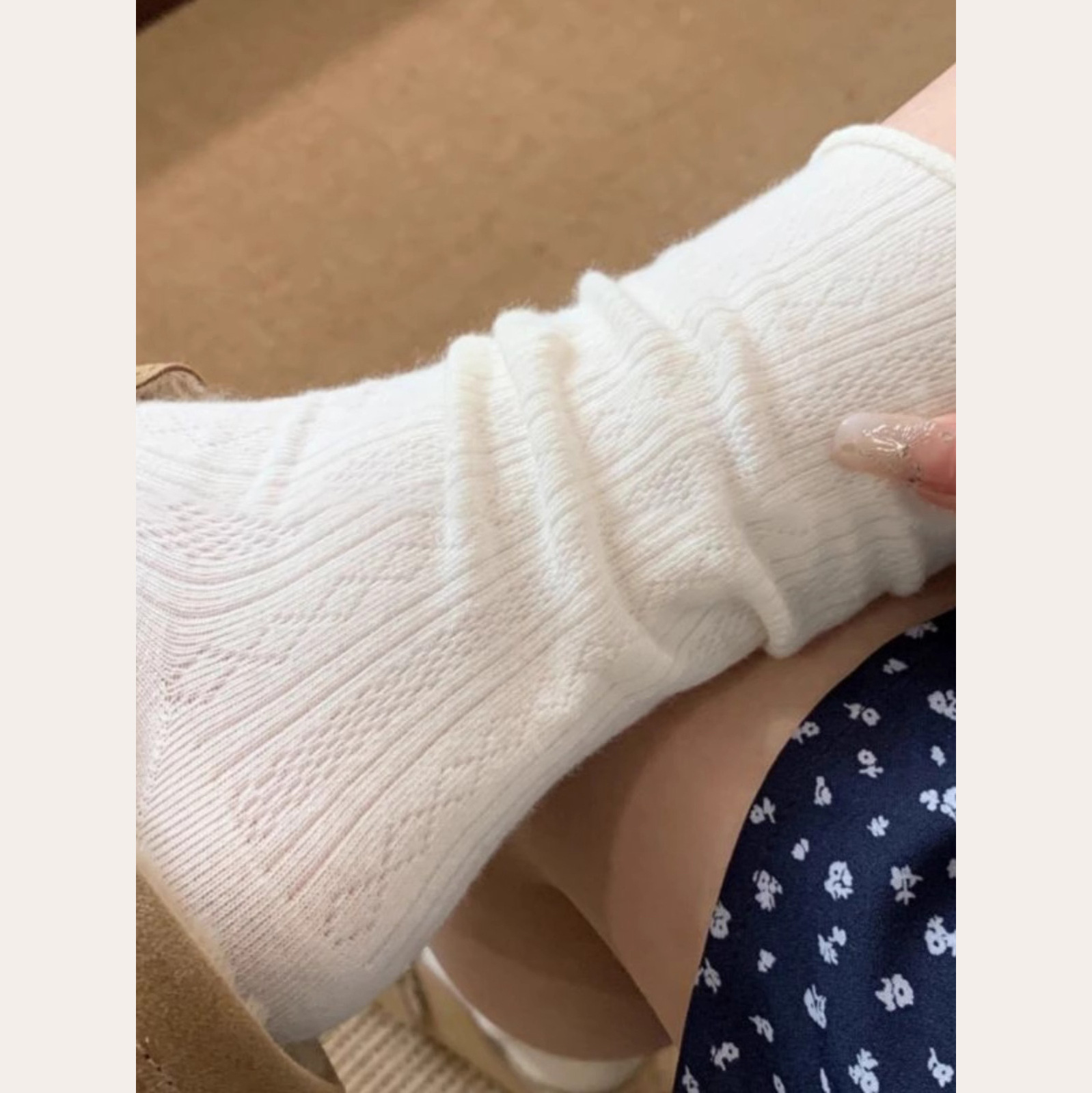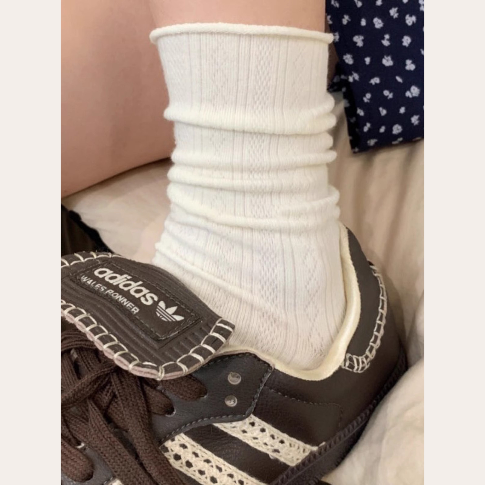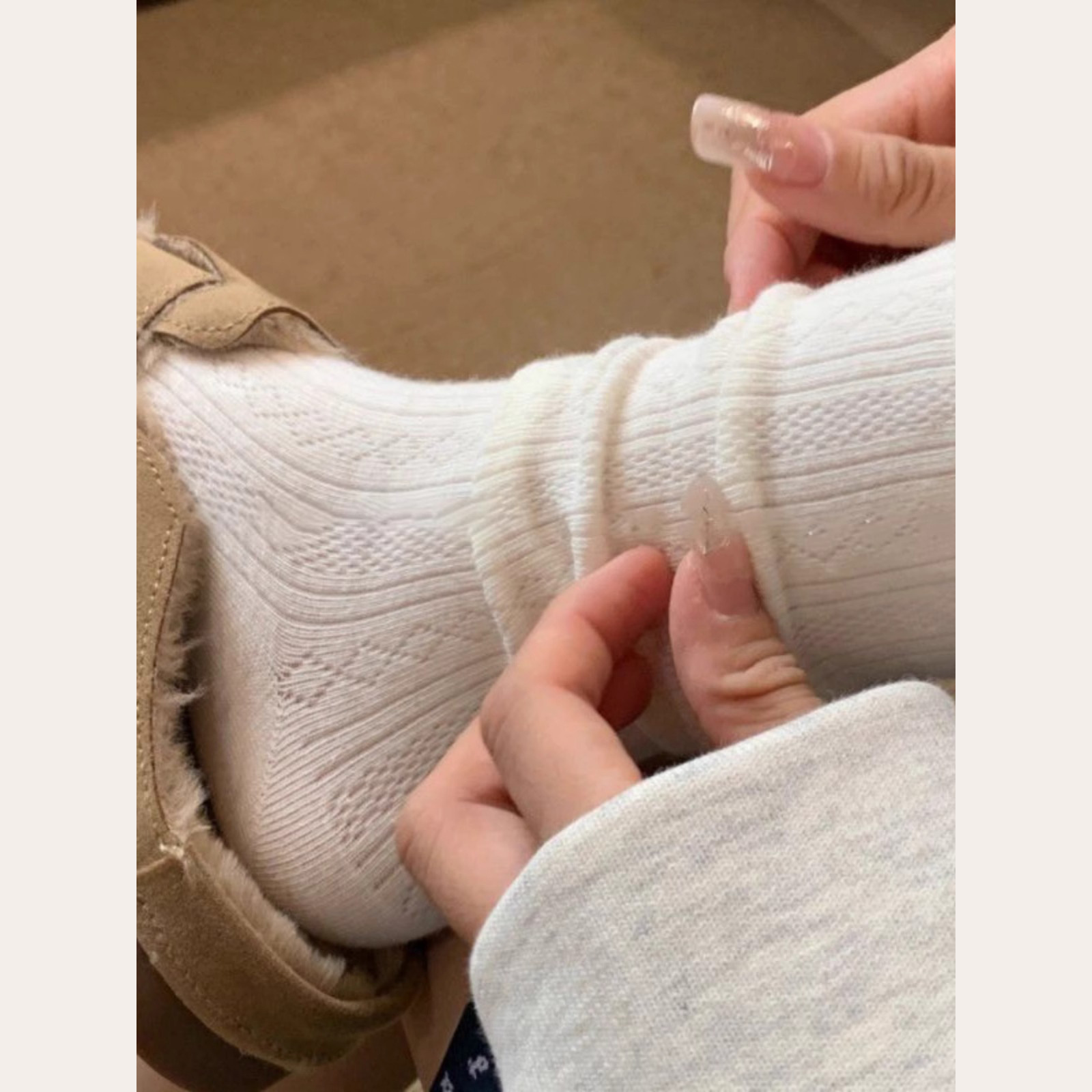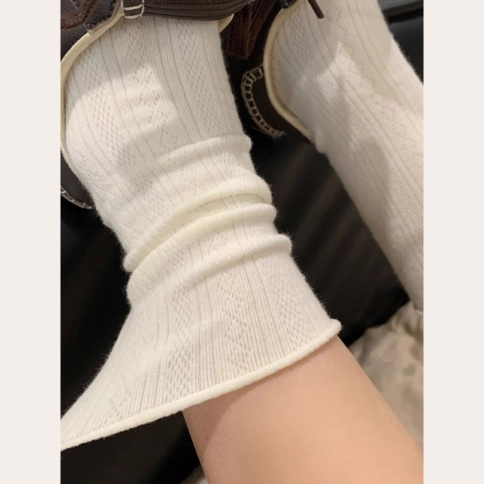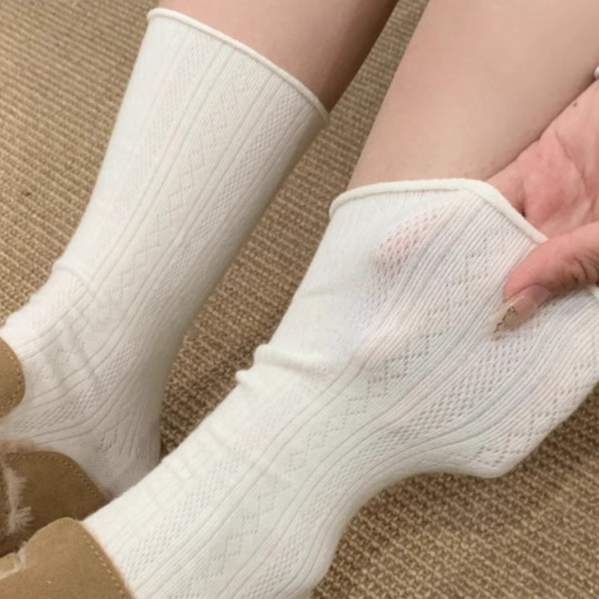 여성용 흑백 양말 봄과 여름 빈티지 크림 스타일 컬링 미드 튜브 스택 양말 솔리드 컬러 간단한 문아이 양말 Ins 트렌디스토어 가기
