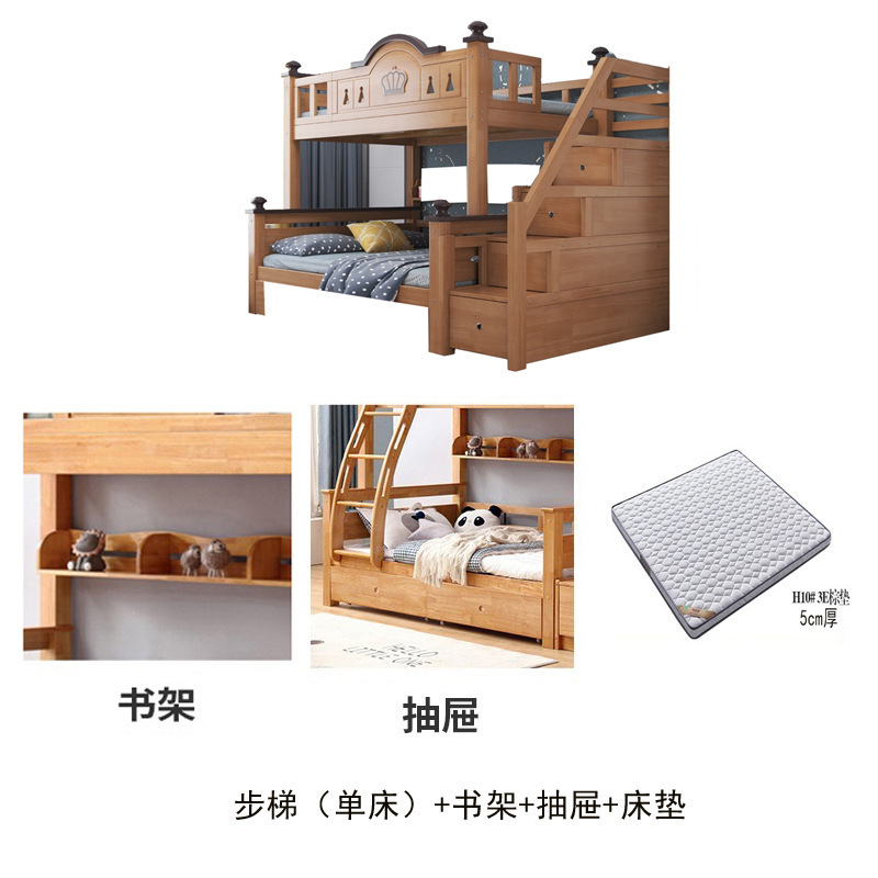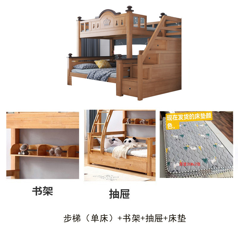 풀 솔리드 우드 벙크 침대 높고 낮은 침대 어머니 침대 통나무 어린이 침대 더블 데크 십대 다기능 작은 아파트 더블 침대