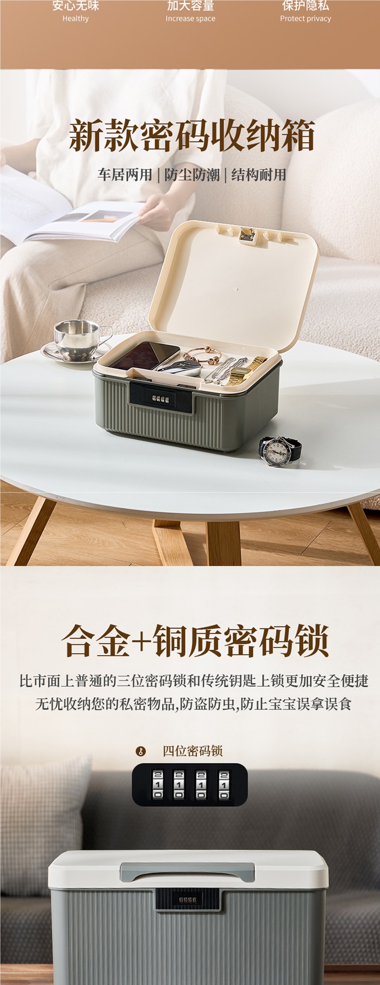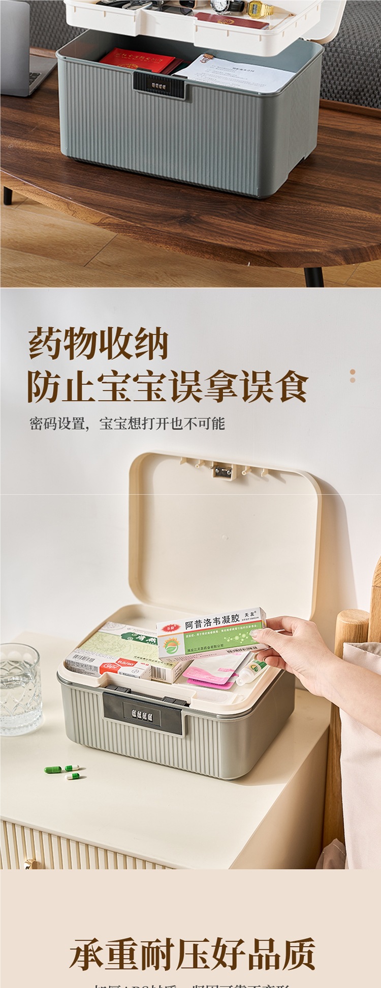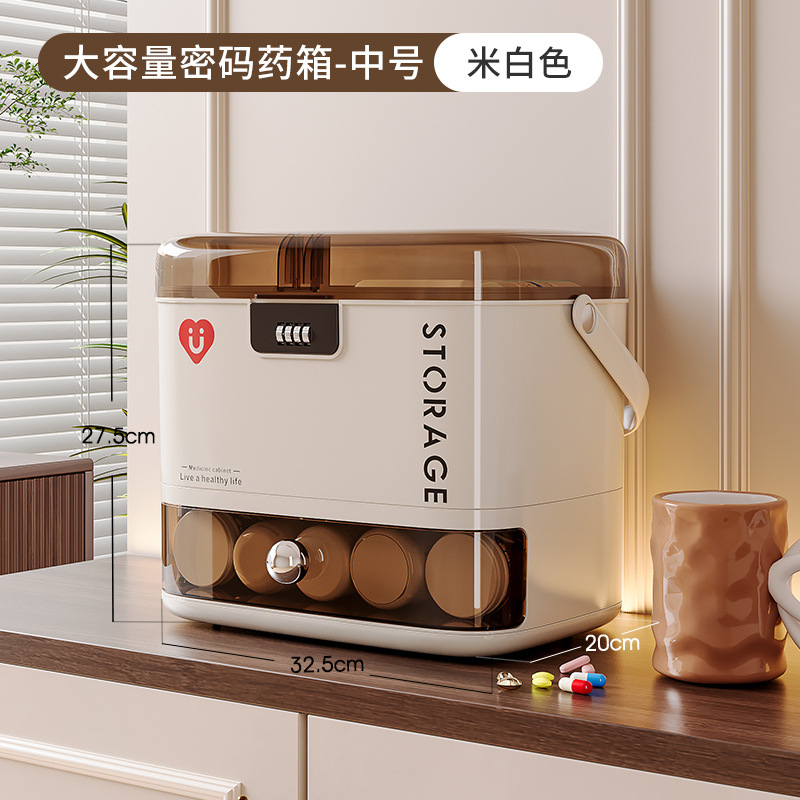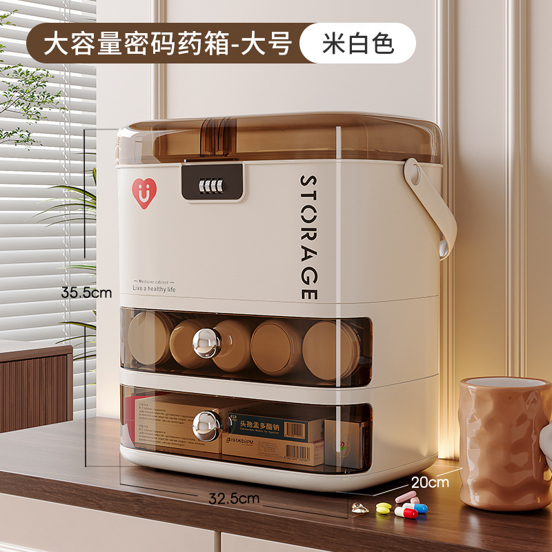 • 대형 약상자 + 2층 서랍#4자리 비밀번호(성적 업그레이드) + 비밀번호가 더 많은 구획 포함