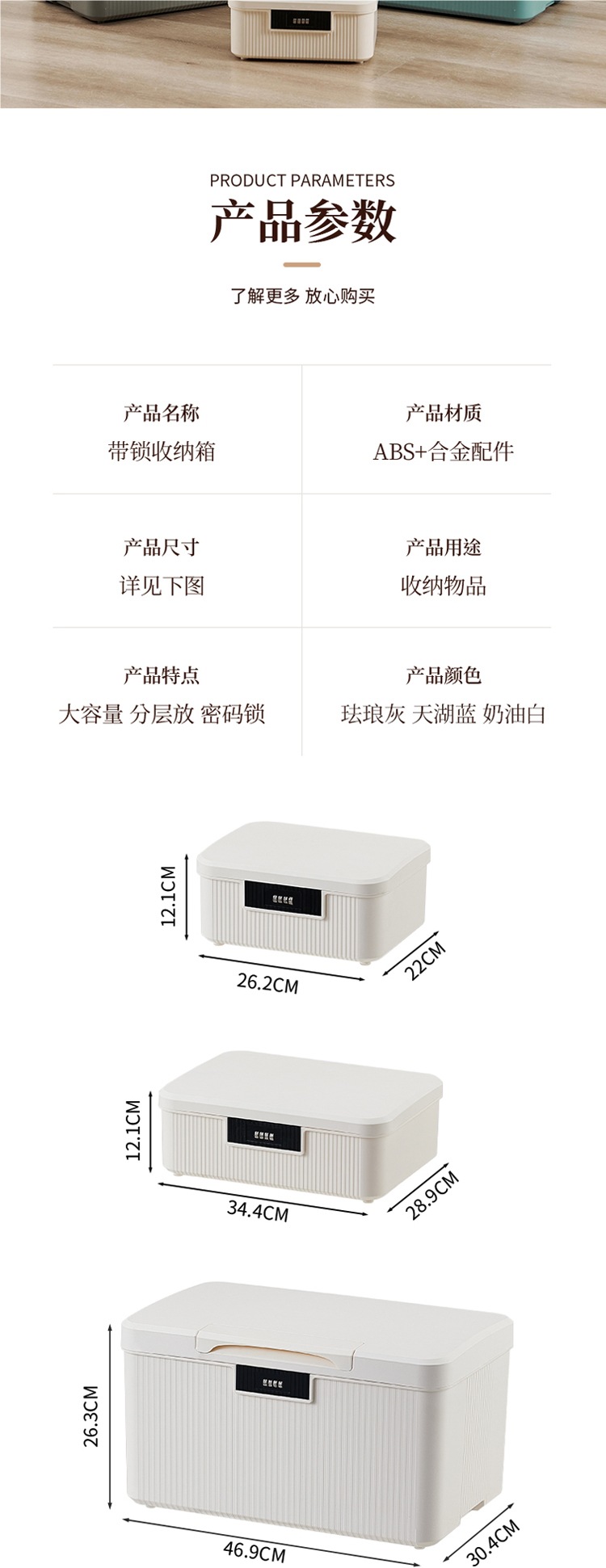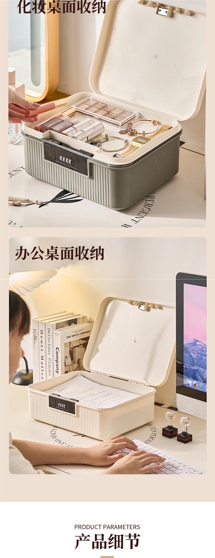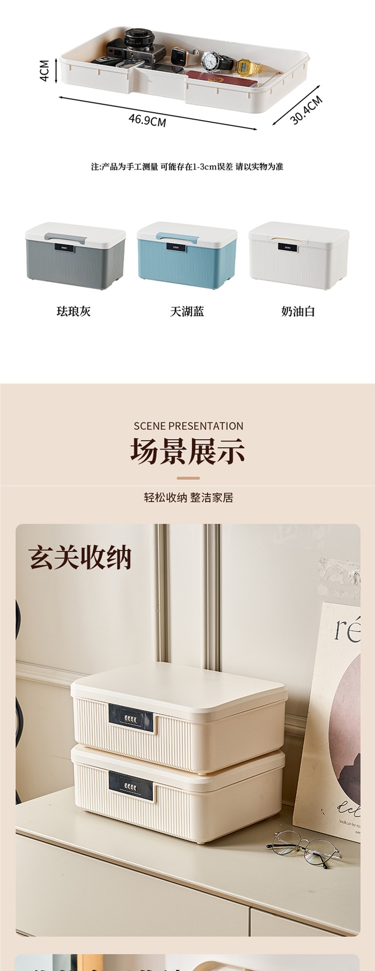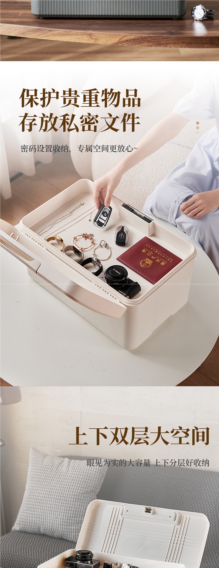 • 손잡이가 있는 대형 크림 화이트 [3자리 코드 + 수납공간]️️️4세대로 업그레이드 [2024년 신형] A4 가능