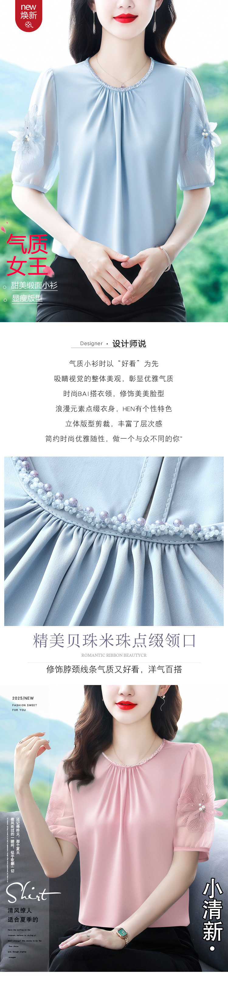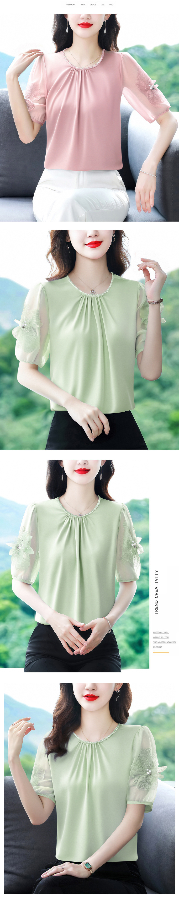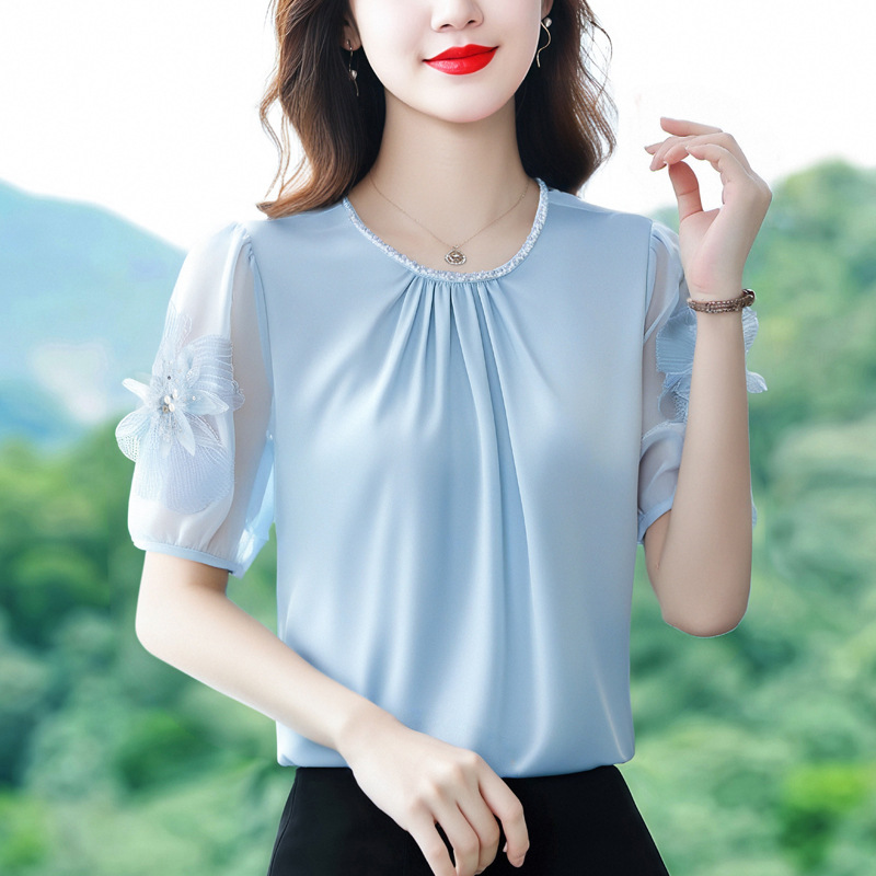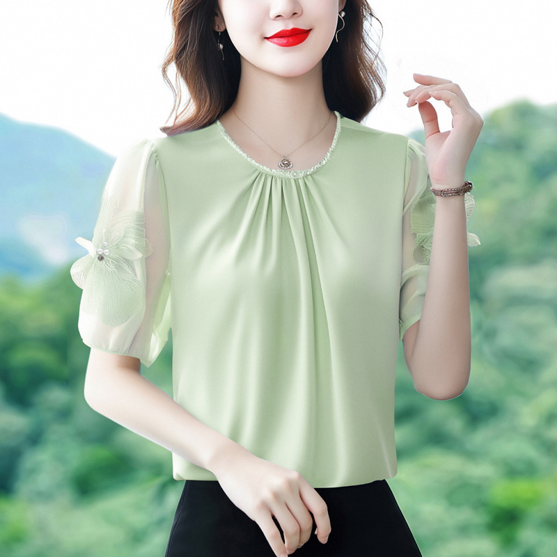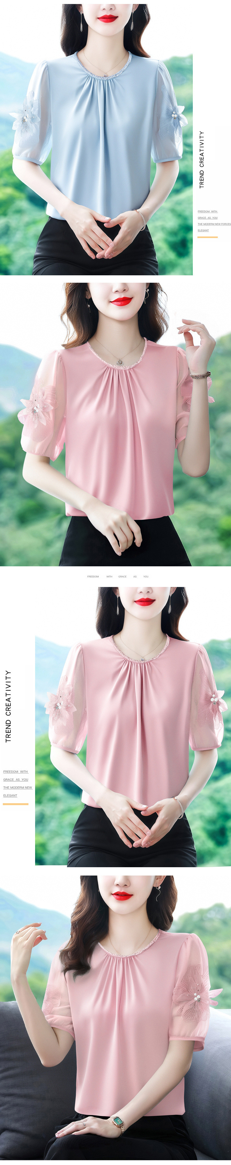 여성용 고급 쉬폰 셔츠, 반팔 여름 루즈 슬리밍 탑, 다용도 엄마 여성용 바닥 셔츠, 패셔너블스토어 가기