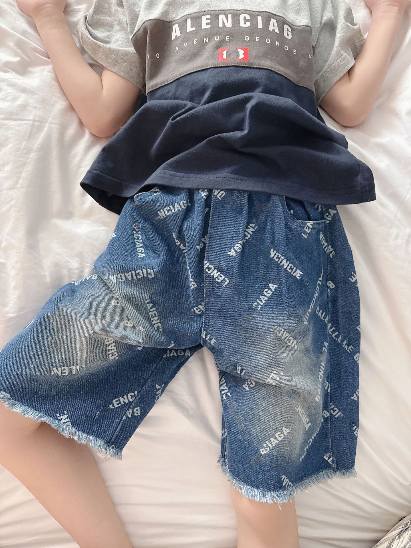 25 새로운 풀 세탁 빈티지 화이트 레터 어린이 데님 반바지스토어 가기