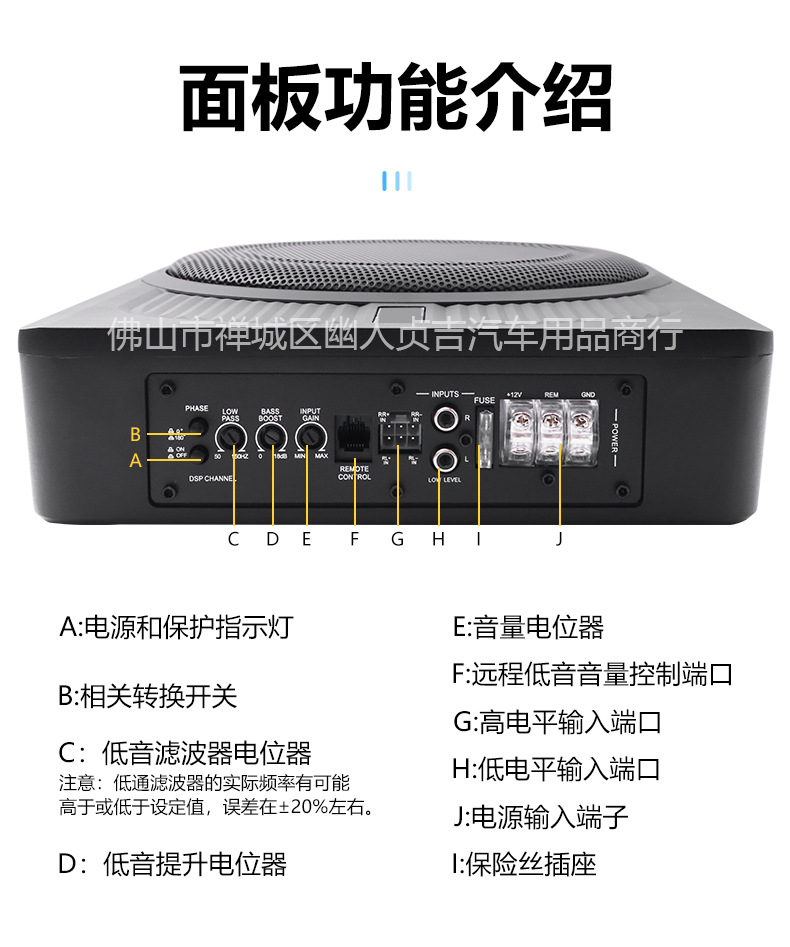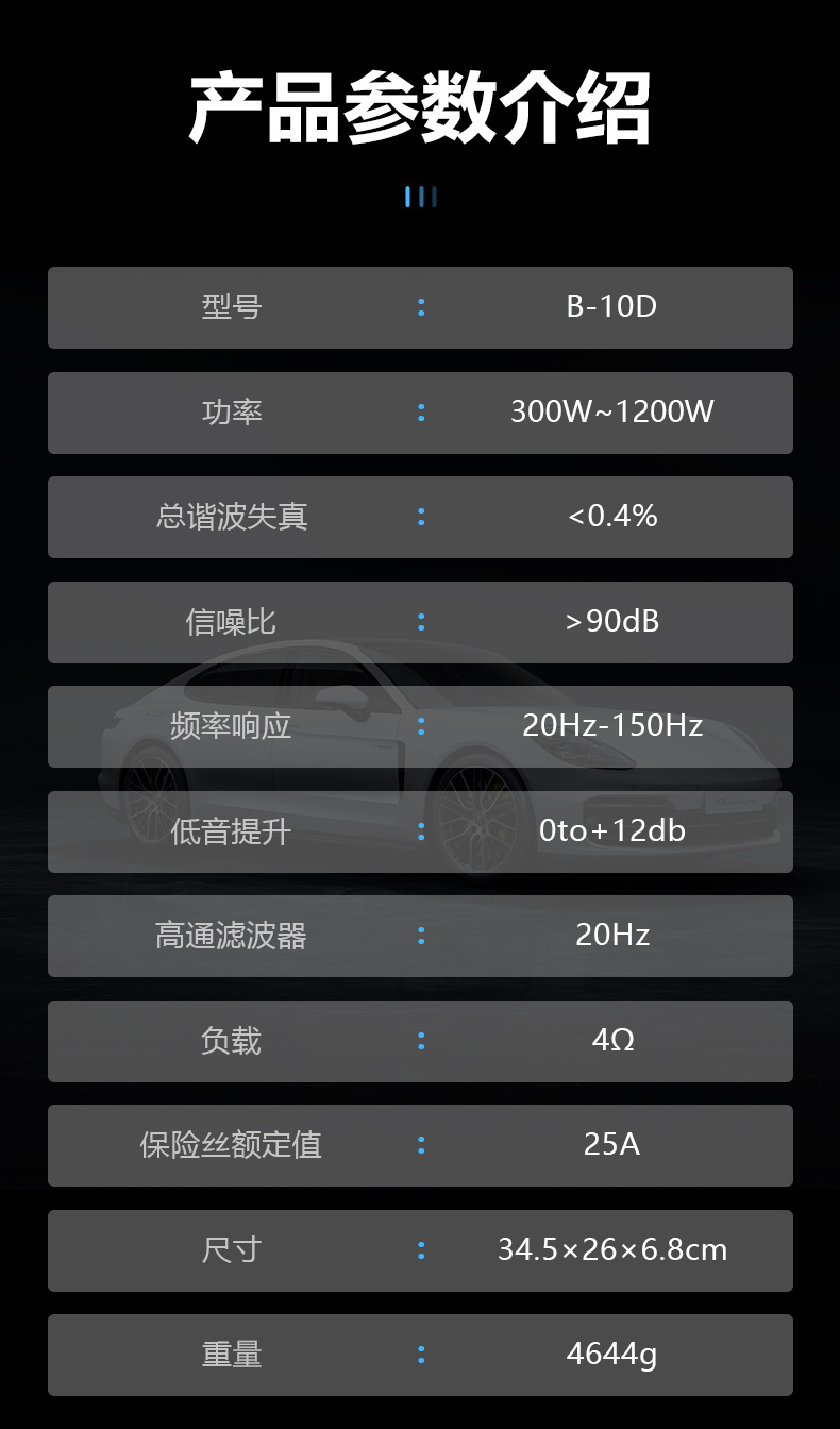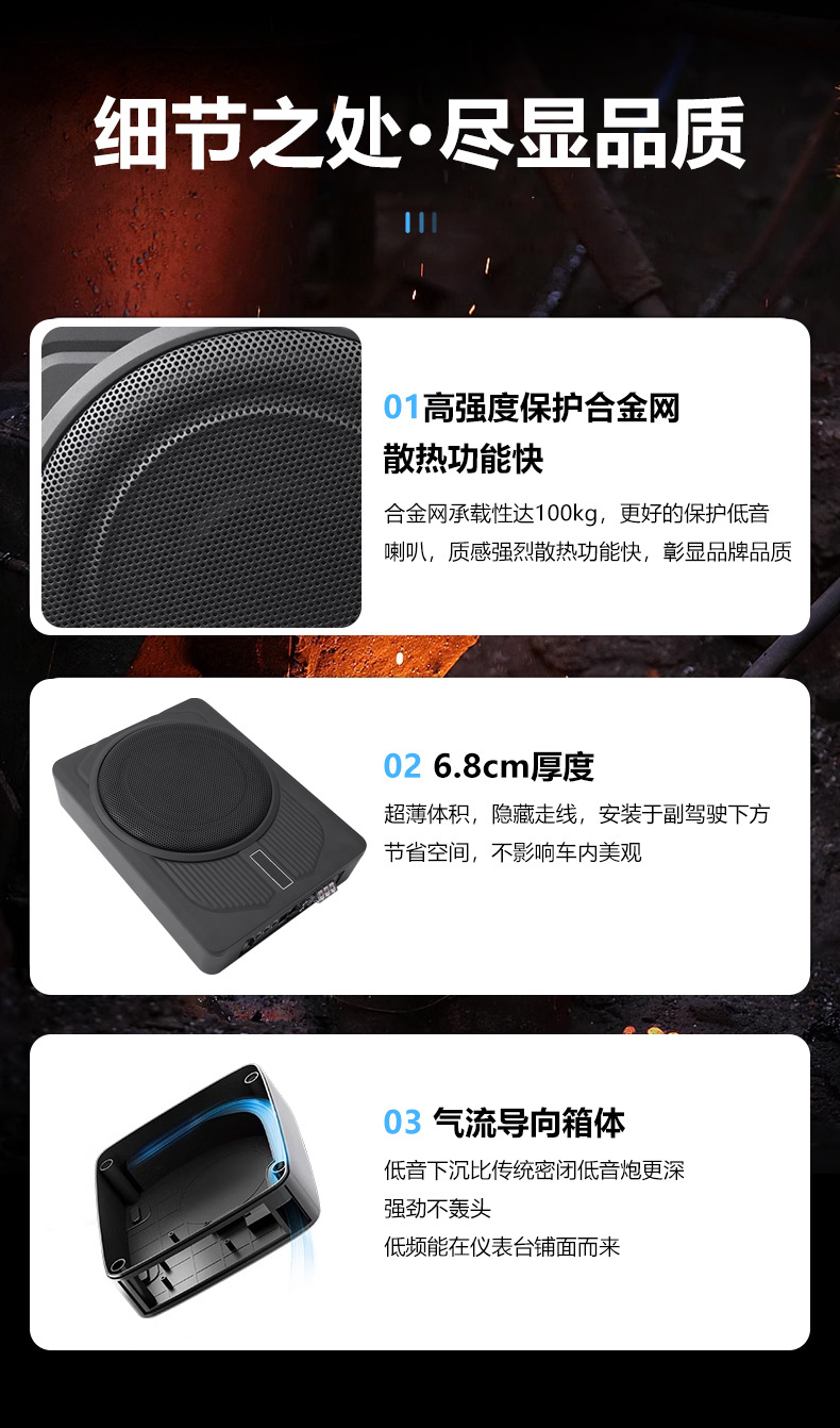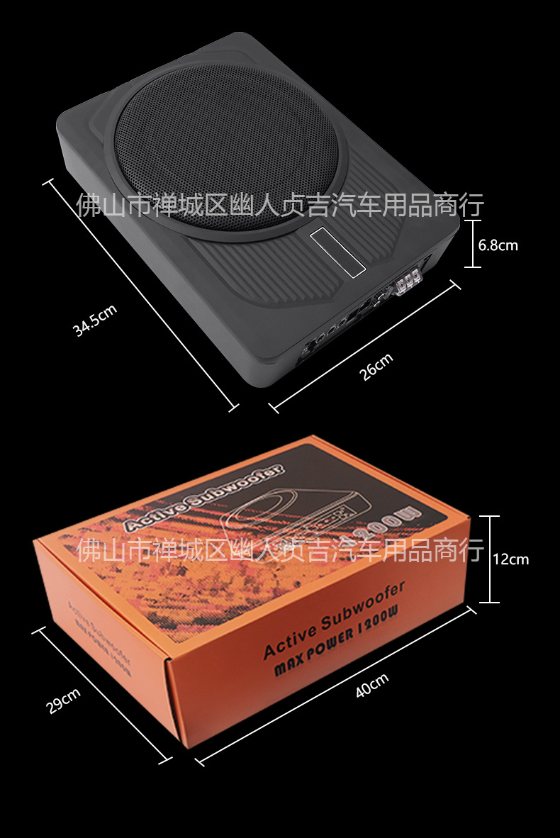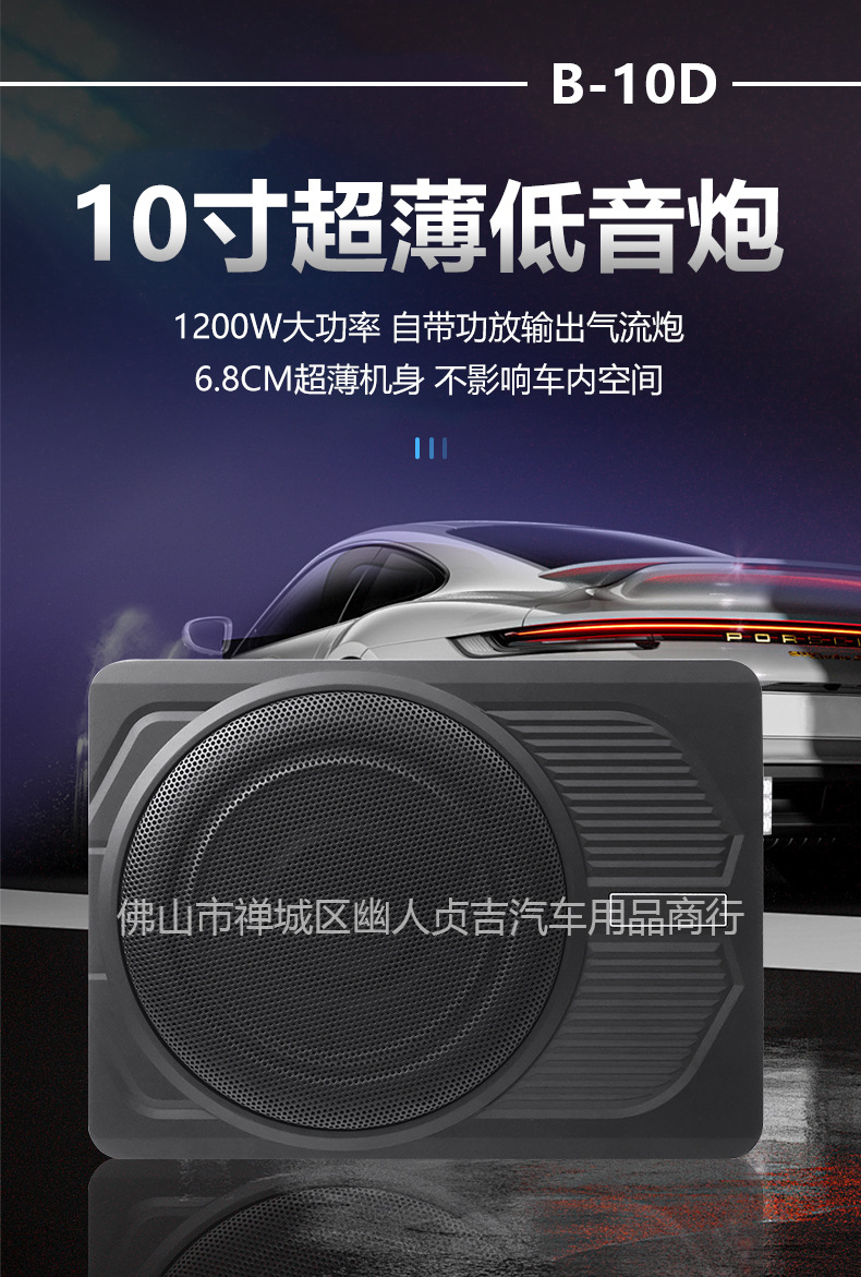 자동차 오디오 수정 소형 강철 총 12V 고출력 1200W 액티브 10inch 초박형 자동차 서브우퍼스토어 가기