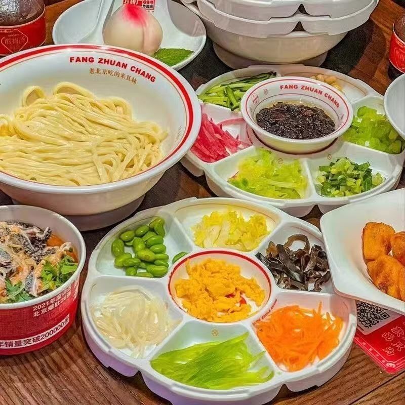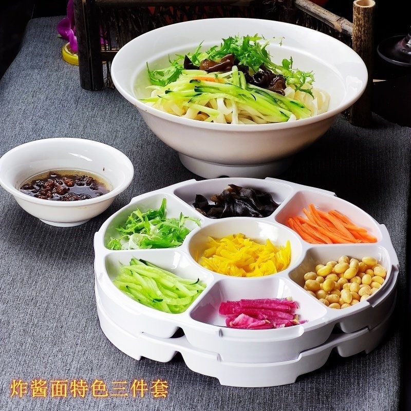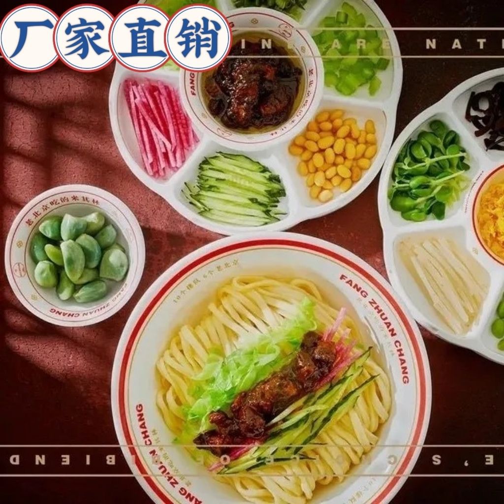 인터넷 연예인 올드 베이징 짜장면 사각 벽돌 공장 같은 스타일의 멜라민 전골 식기 상업용 원형 멀티 그리드 플레이트 재료 플레이트스토어 가기