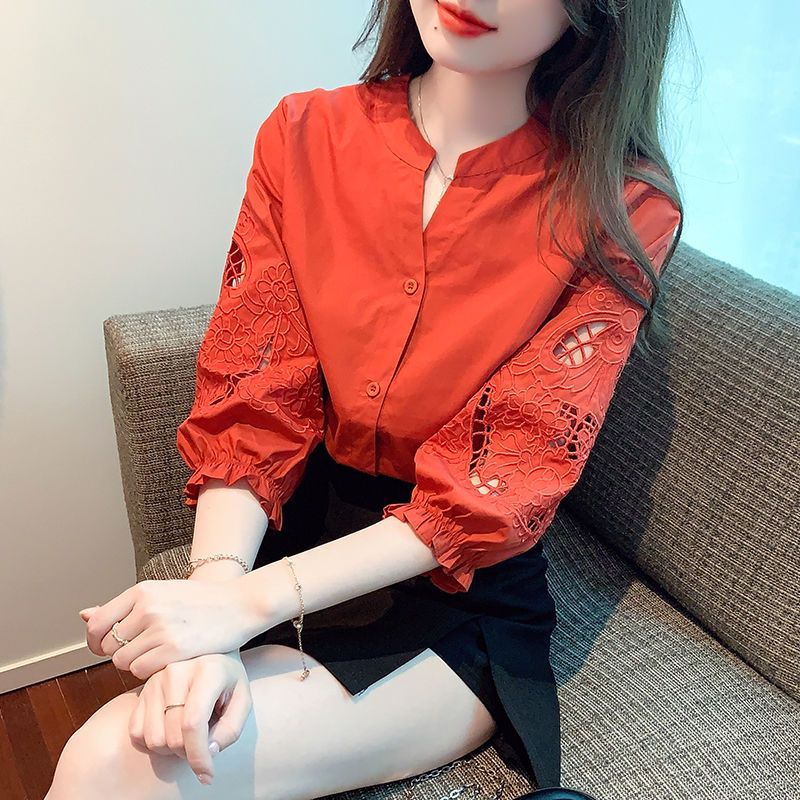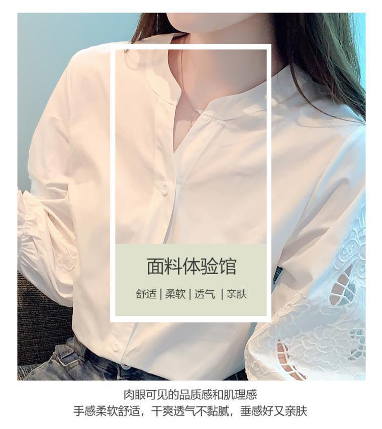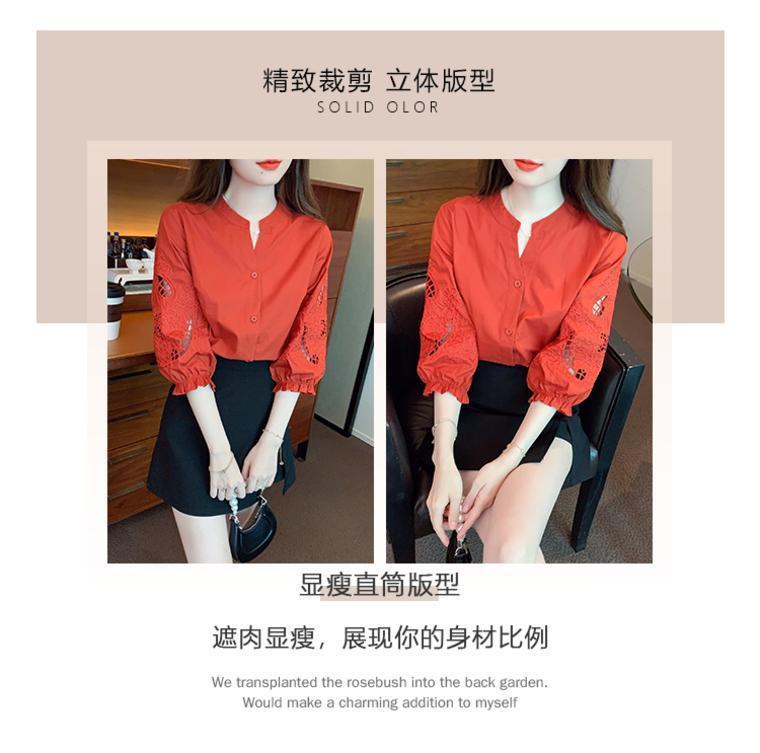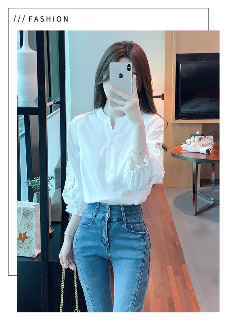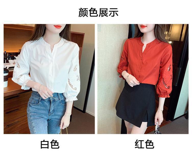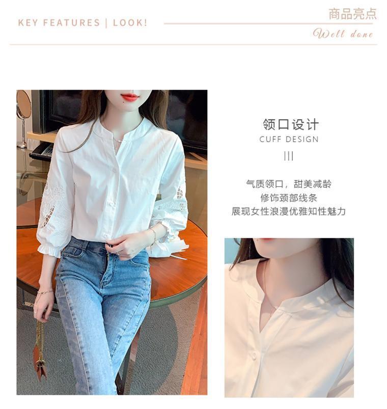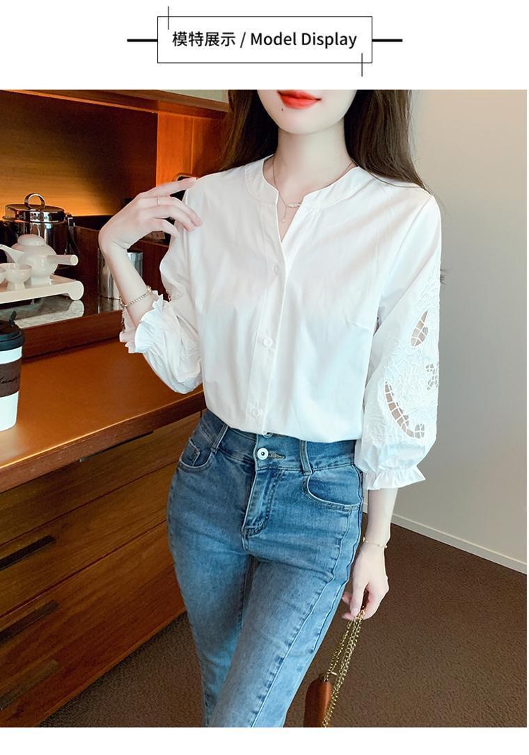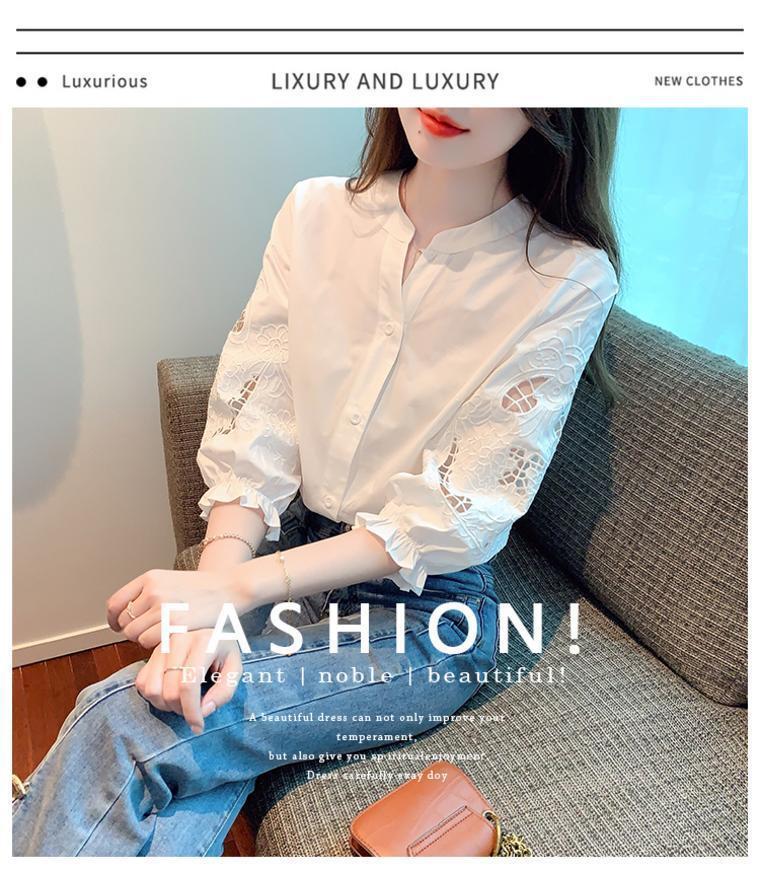 무거운 자수 버블 랜턴 반팔 셔츠 여성 초가을 2025 여름 셔츠 7 소매 화이트 쉬폰 탑스토어 가기