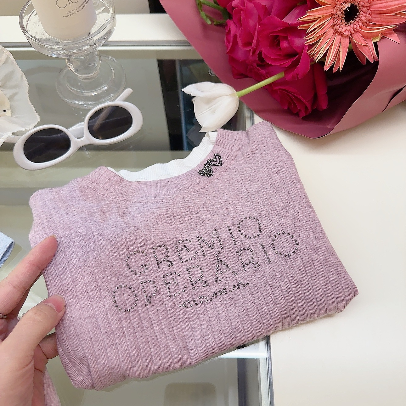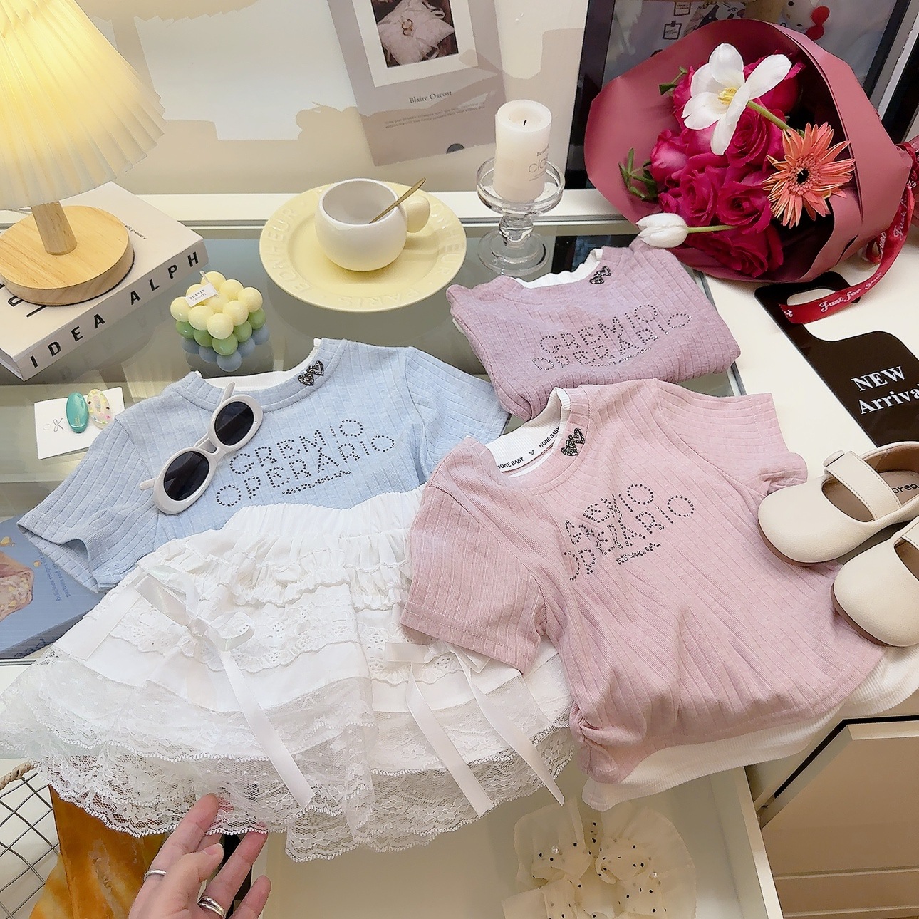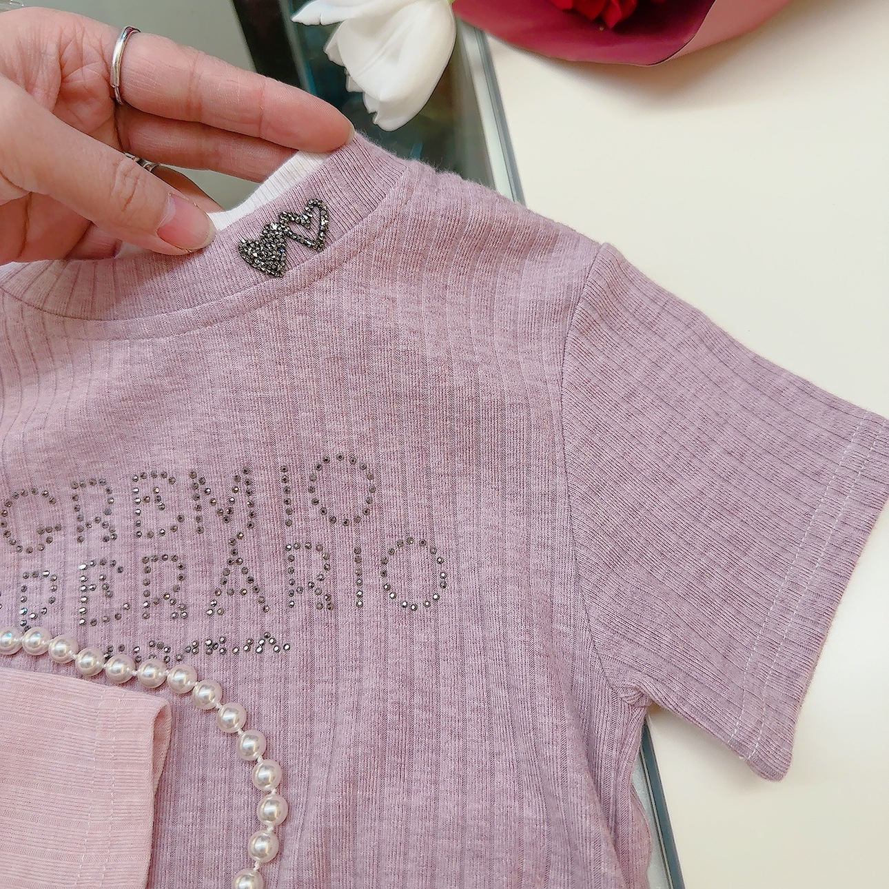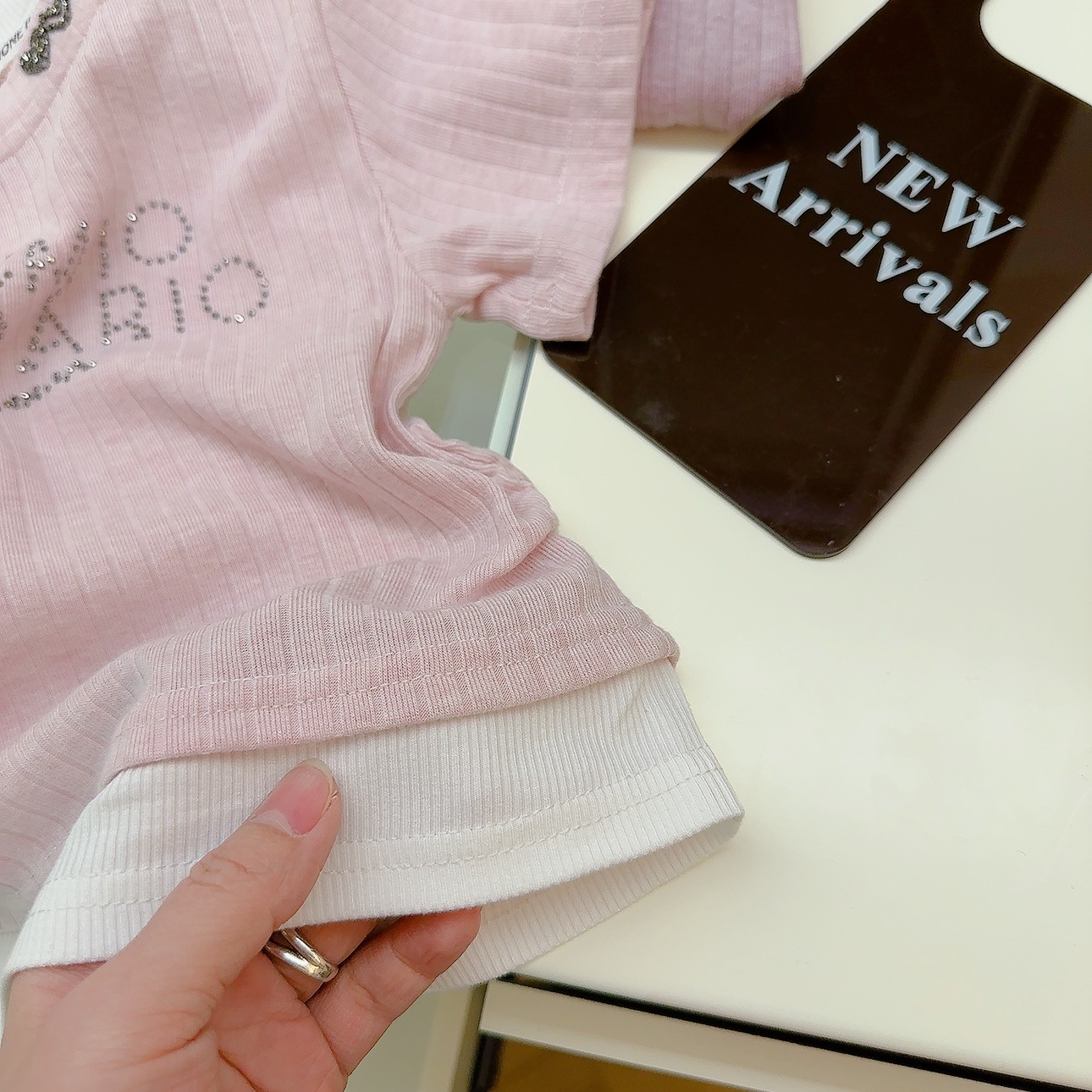 여성 보물 여름 핫 라인스톤이 박힌 가짜 투피스 아기 소녀 올 매치 뉴 도파민 스킨 친화적 인 소프트 크리스피 티셔츠스토어 가기