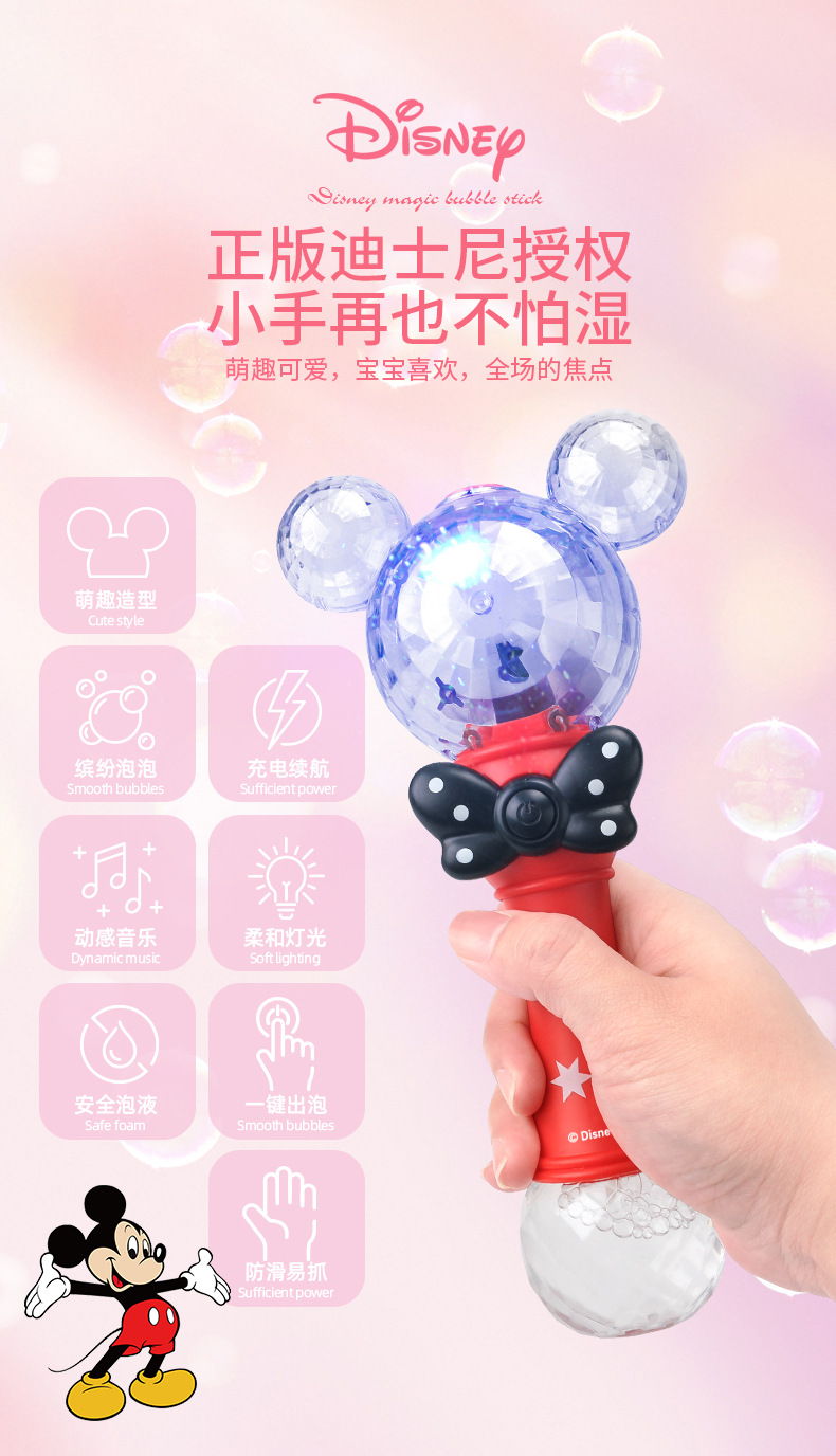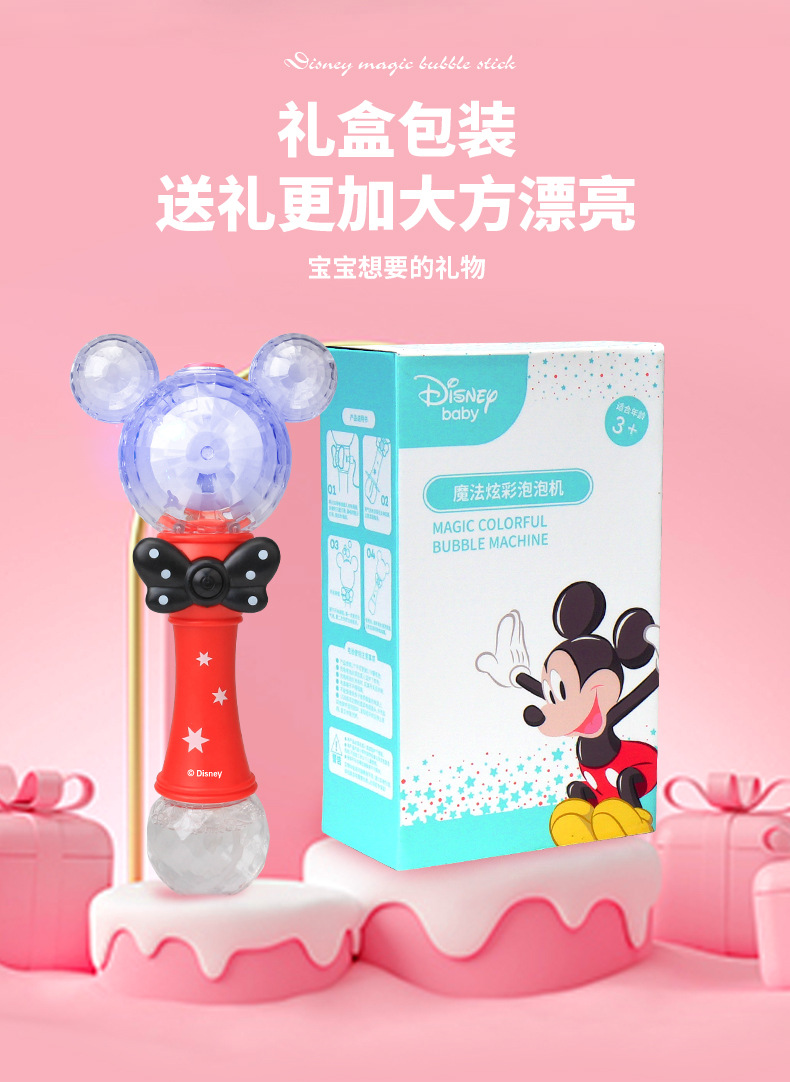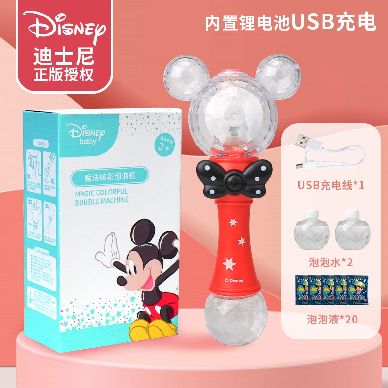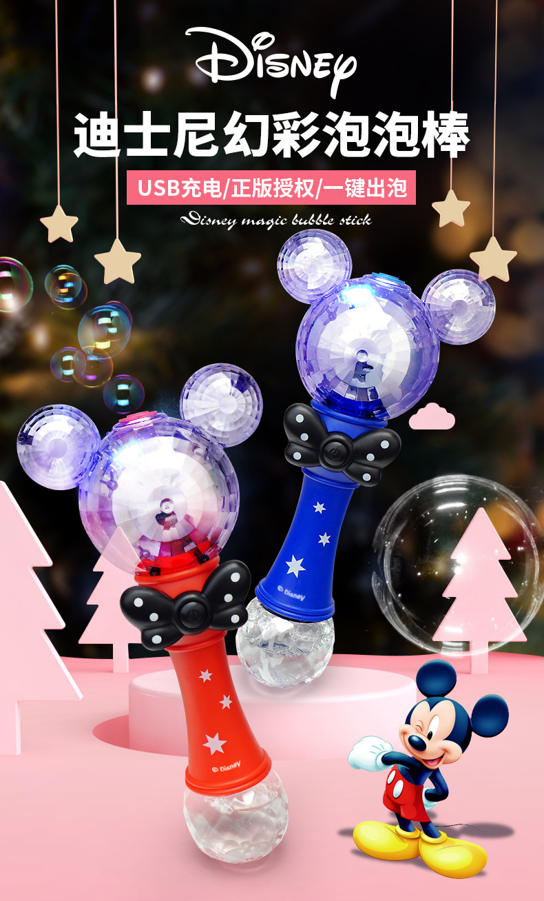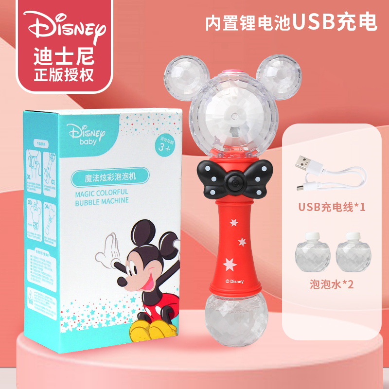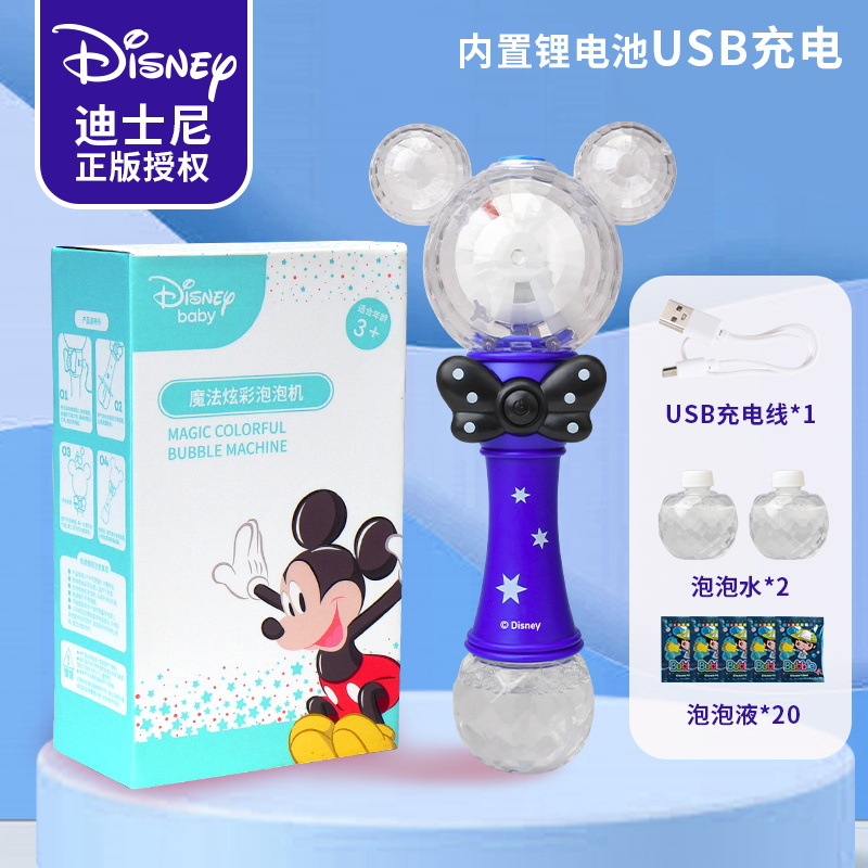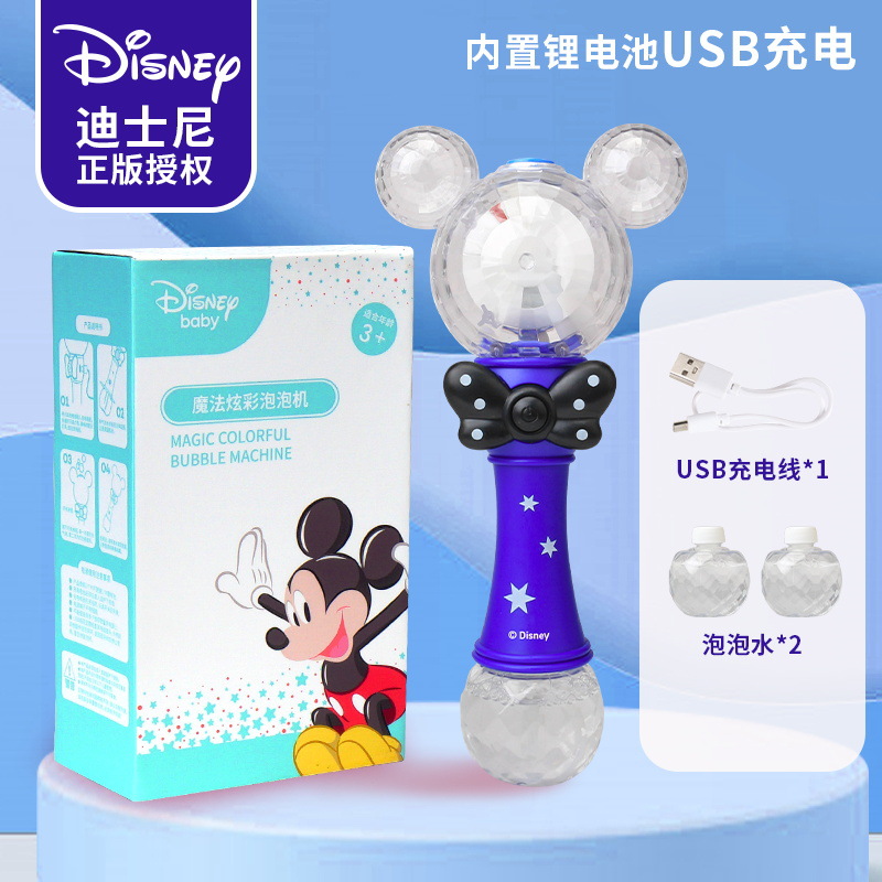 정품 디즈니 버블 머신 완전 자동 원 클릭 버블 USB 충전 휴대용 버블 완드 어린이 장난감 도매