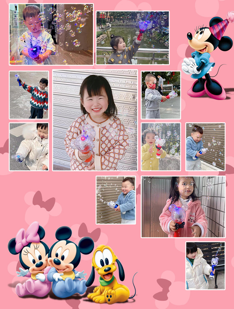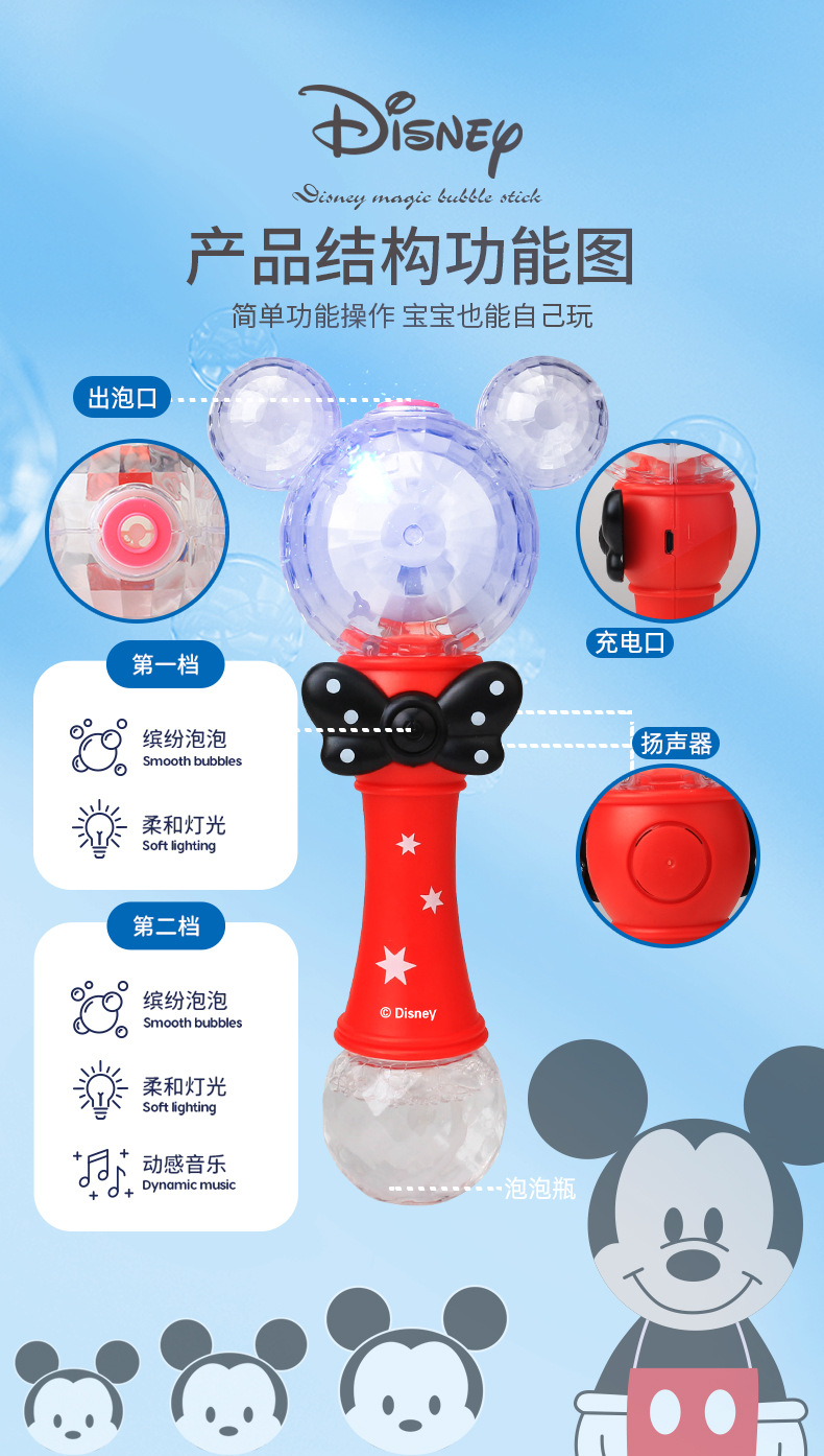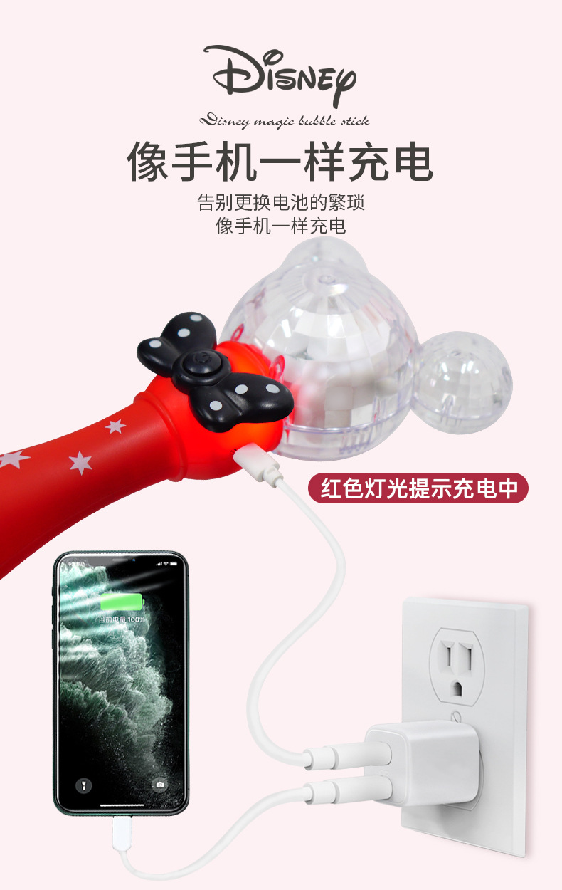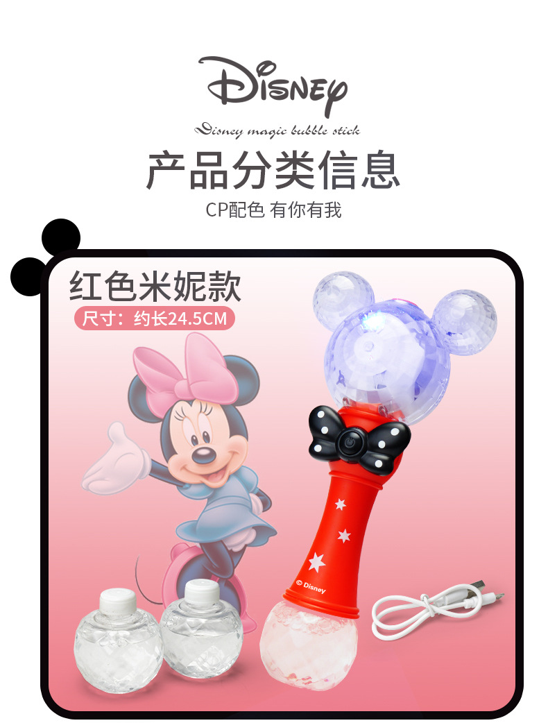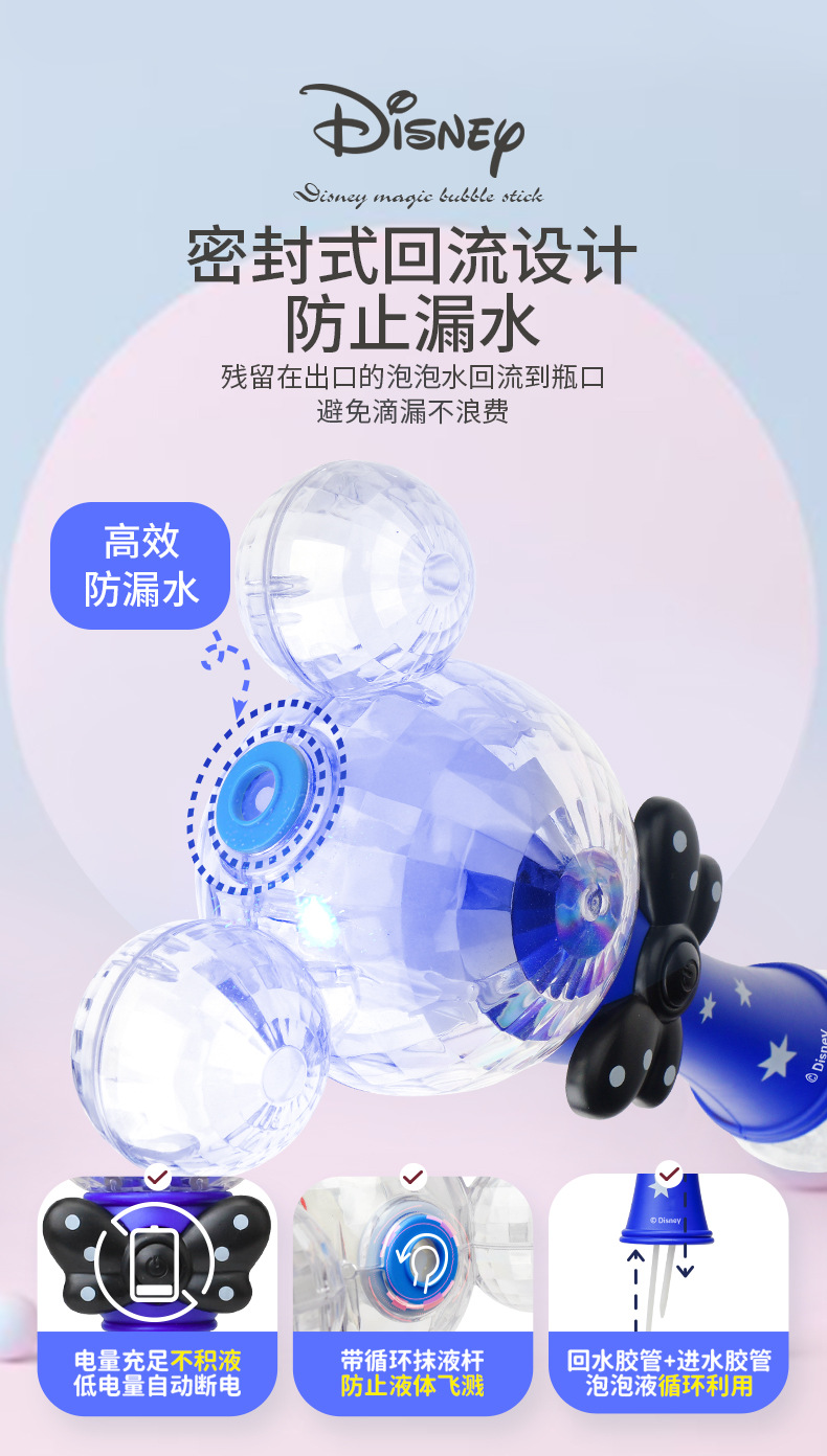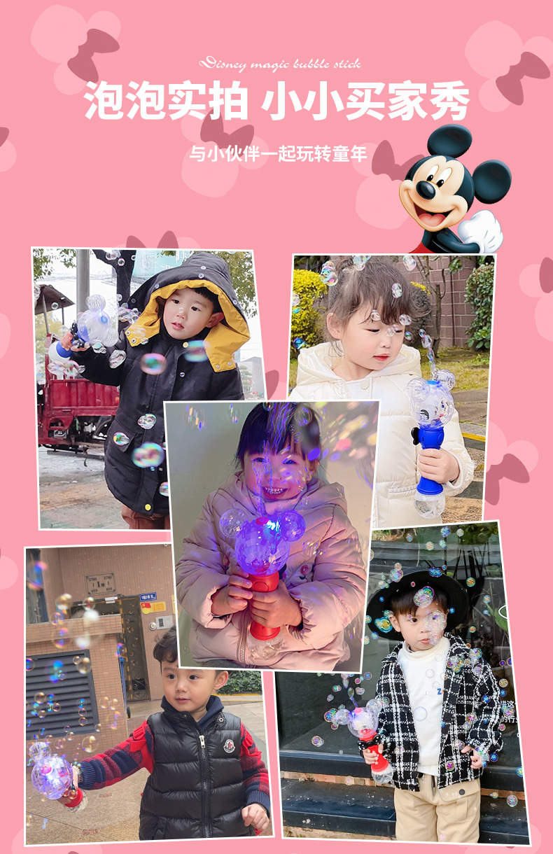 정품 디즈니 버블 머신 완전 자동 원 클릭 버블 USB 충전 휴대용 버블 완드 어린이 장난감 도매