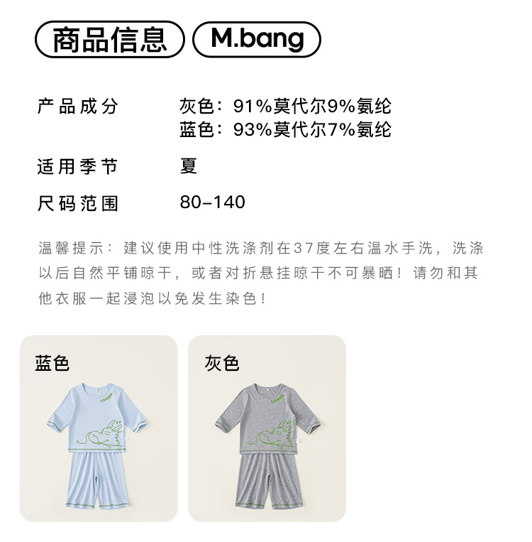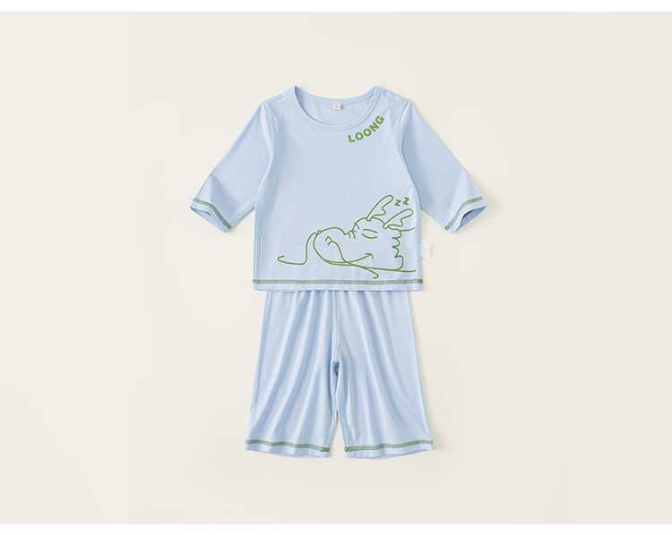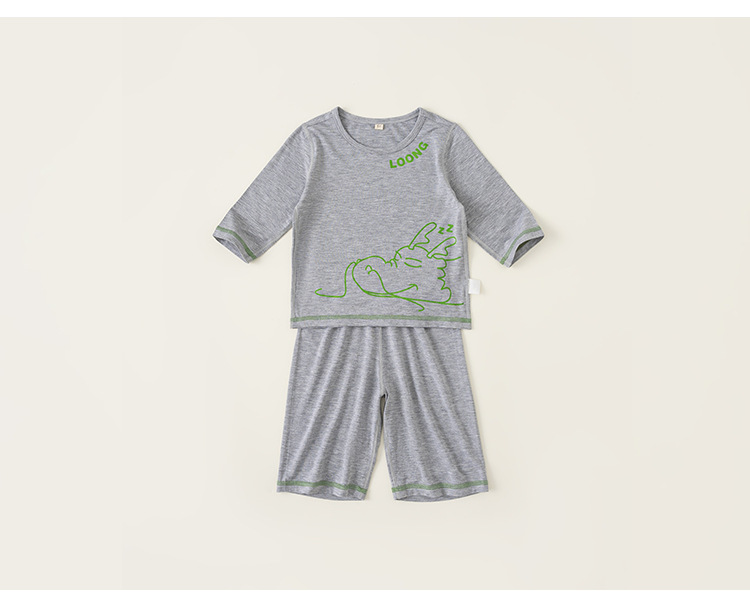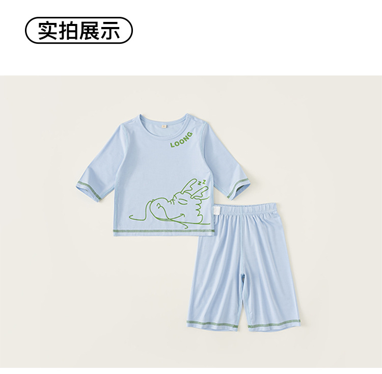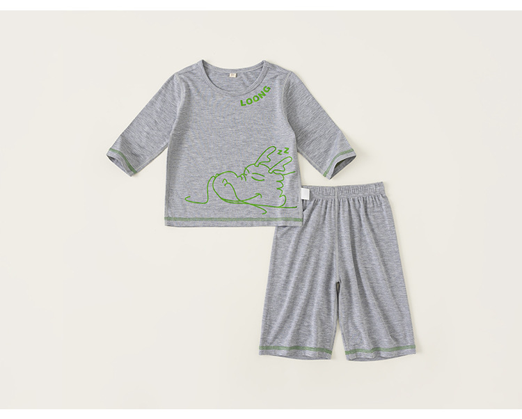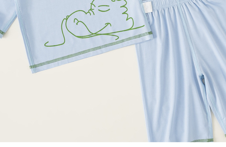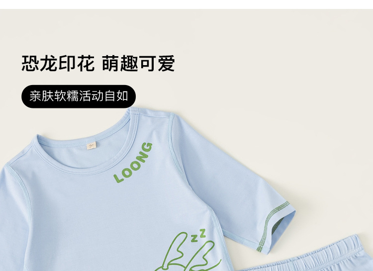 Youbao 아동 의류 여름 새 소년 정장 만화 공룡 프린트 탑 솔리드 컬러 바지 홈웨어 투피스 세트