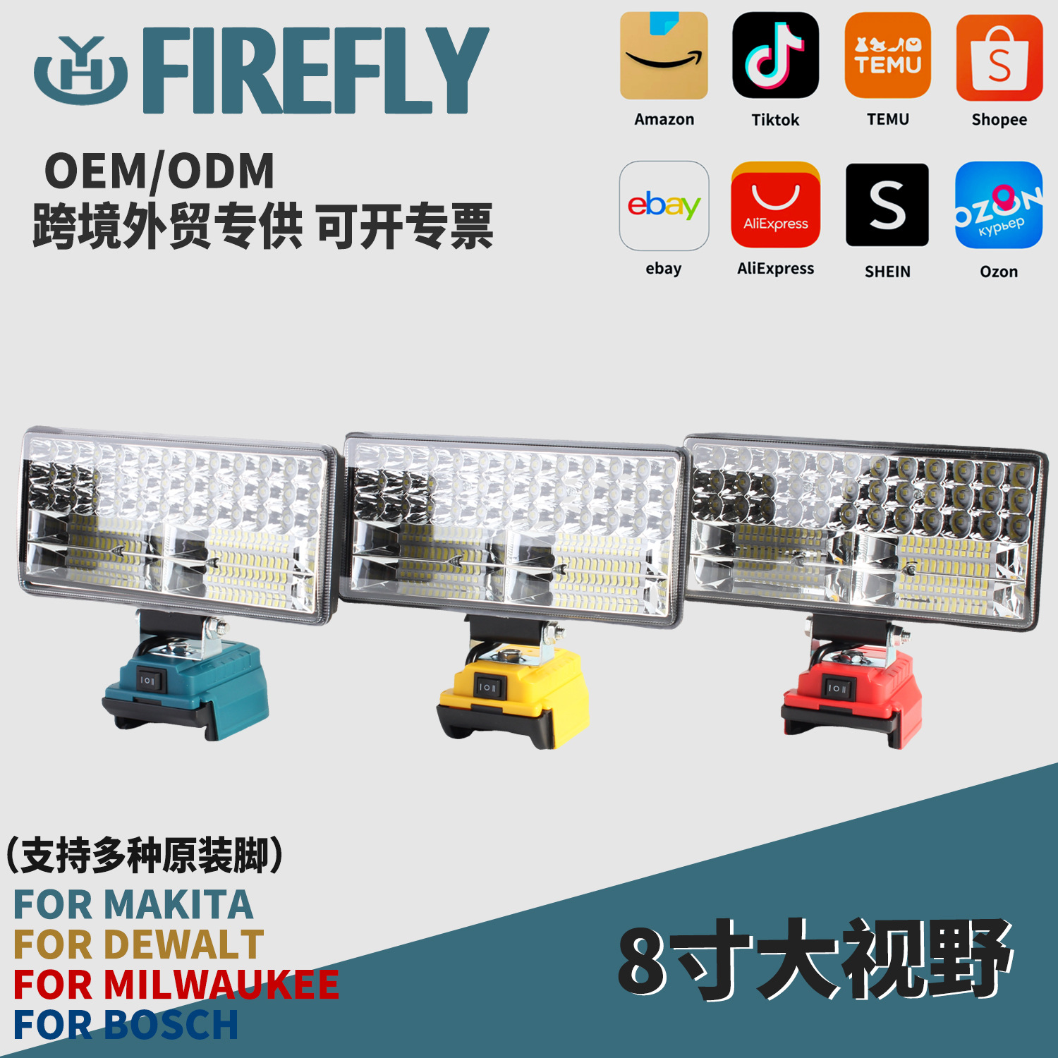 Dewei 유지 보수 램프 충전 공구에 적합한 국경 폭발 5 인치 작업 야외 램프 20V 리튬 배터리 조명 캠핑 램프